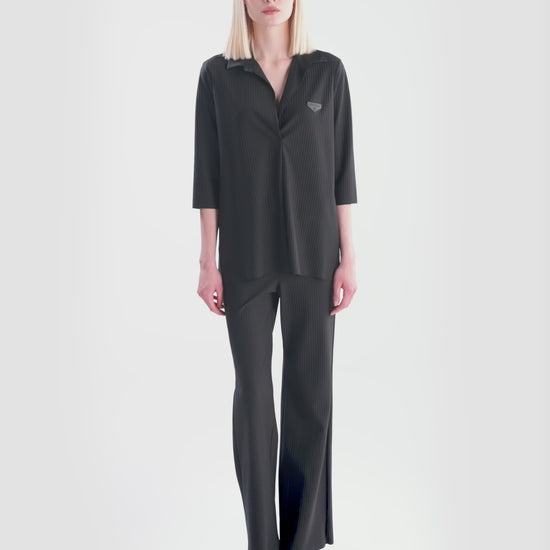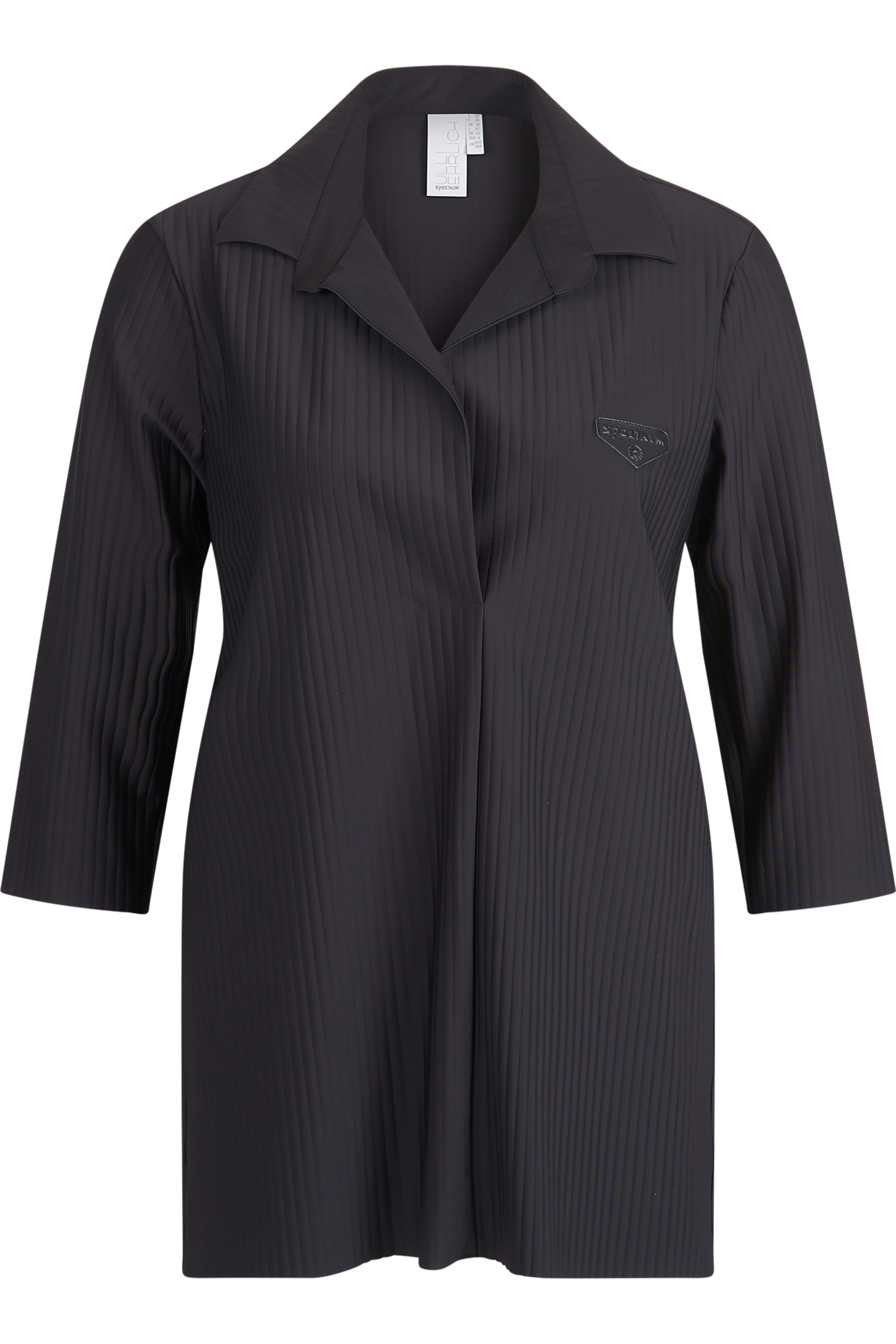 This fashionable and sporty slip-on blouse with shirt collar convinces with its unique look made of technical embossed jersey in pleated look.
