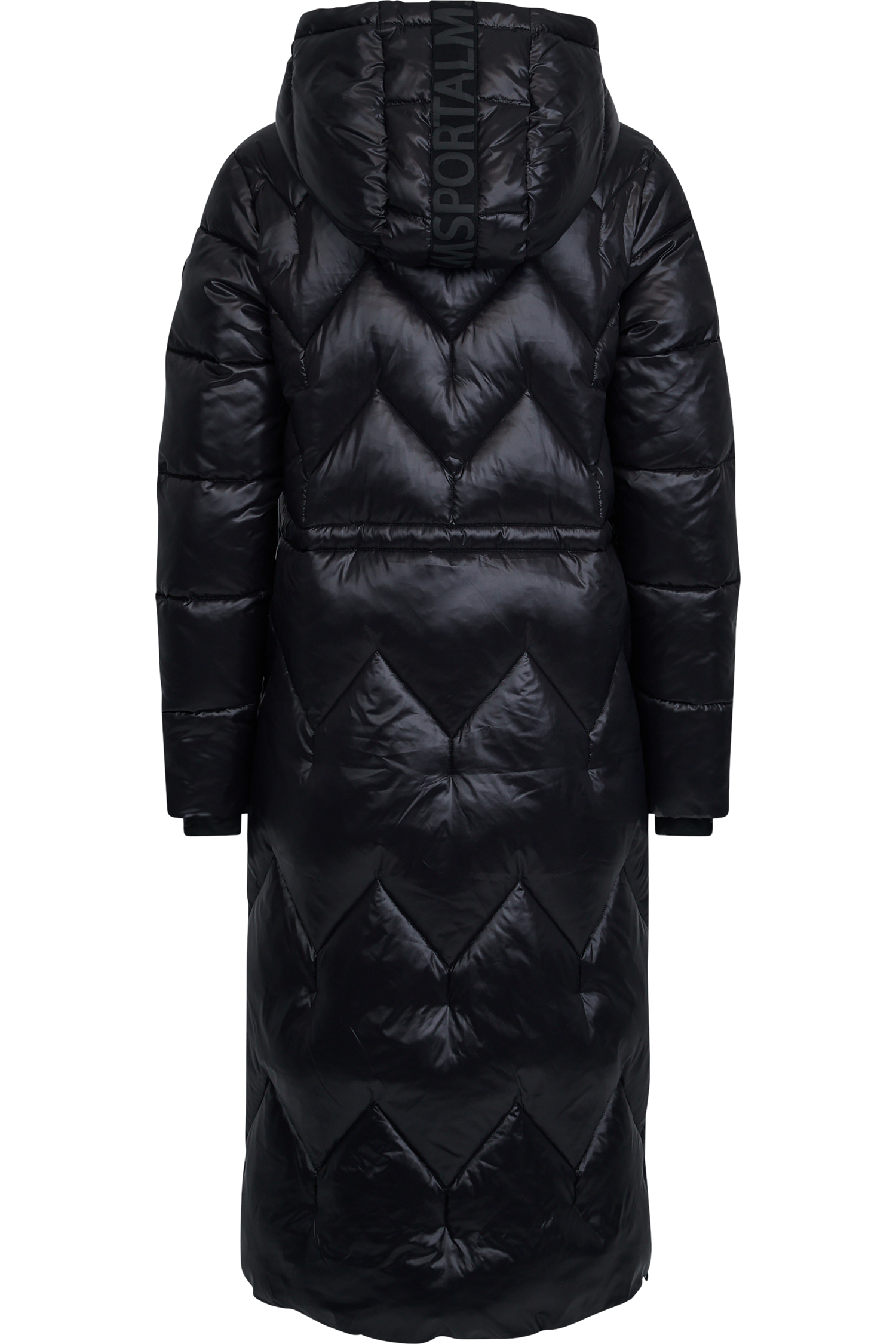 The padded coat with hood presents itself in shimmering nylon quality with extravagant quilting, which gives it a noble touch.