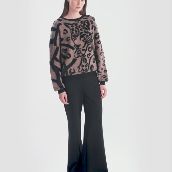 Our product is made from a high-quality blend of viscose, nylon and elastane. The graphically styled two-tone leo jacquard in a high-low technique gives the product a striking look.