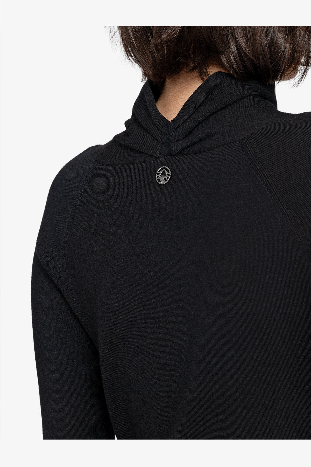 The sophisticated wrapped look in the top gives the dress an appealing touch, while the metal logo plaque at the back provides a striking accent.