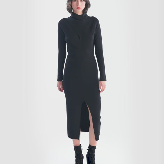 This slim-fit midi dress made from a high-quality viscose and elastane blend boasts a soft feel and an elegant fine rib knit.