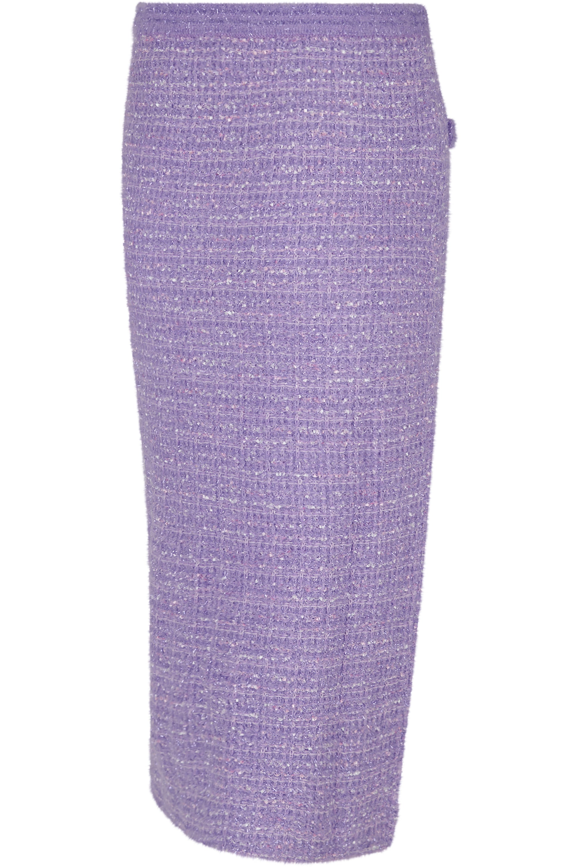 This extravagant knitted skirt in a midi length impresses with a trendy tweed look and a slim silhouette. Very feminine and stylish, it is a highlight for fashion-conscious women.