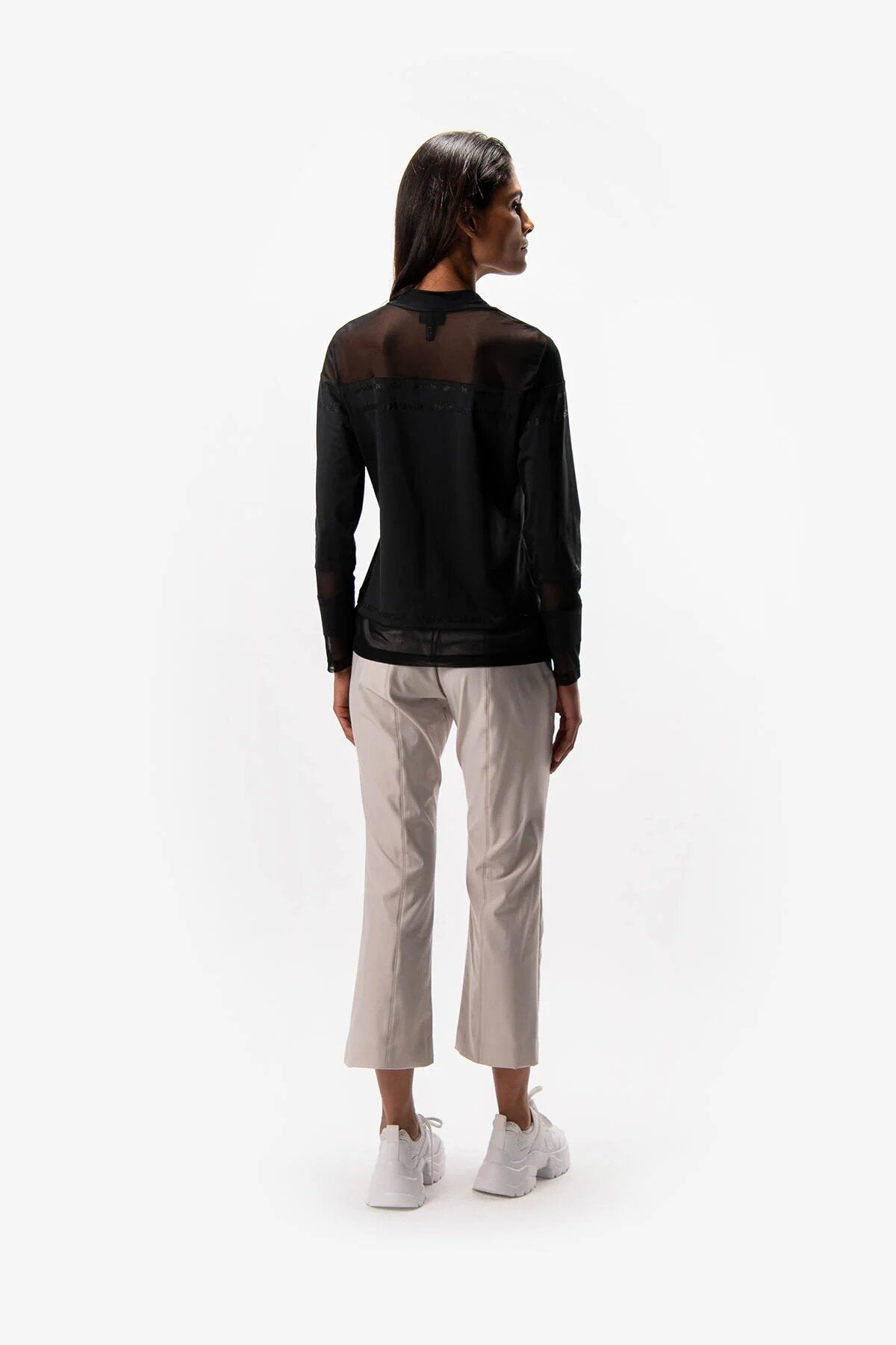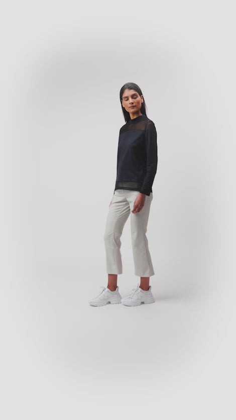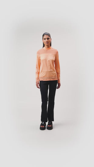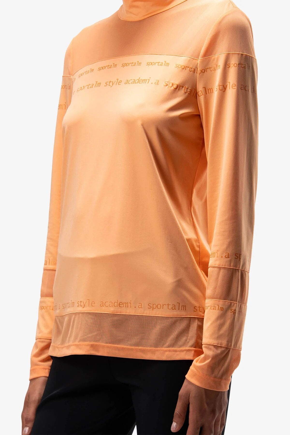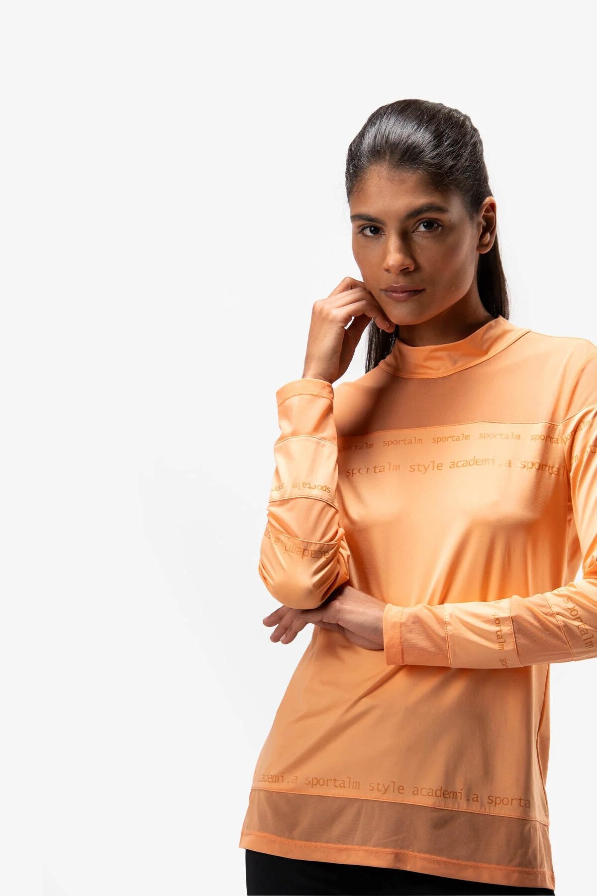 This body-hugging, long-sleeve shirt with a stand-up collar is a comfortable and stylish piece, thanks to the high-quality jersey and sheer mesh fabric blend.