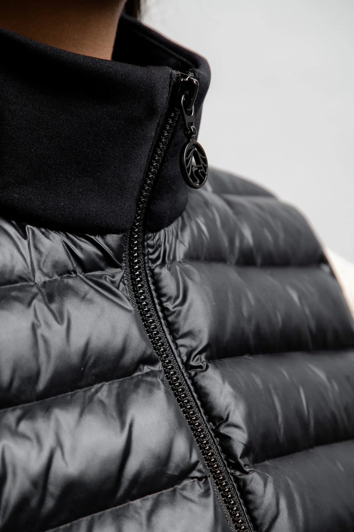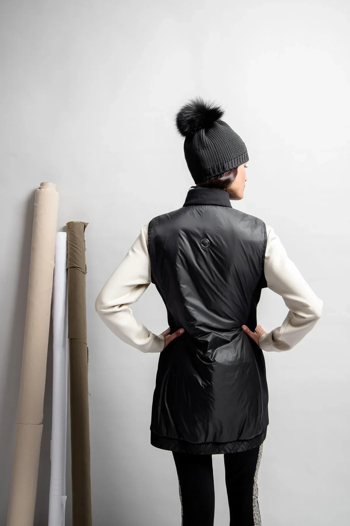 In the front part, concealed zip pockets are incorporated into the dividing seams.