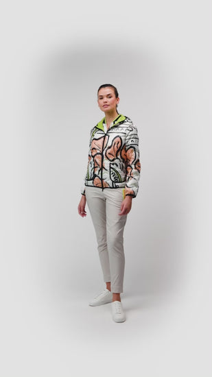 The elastic-edged hood, sleeves, and hem, along with the reversible front zipper, offer both style and functionality.