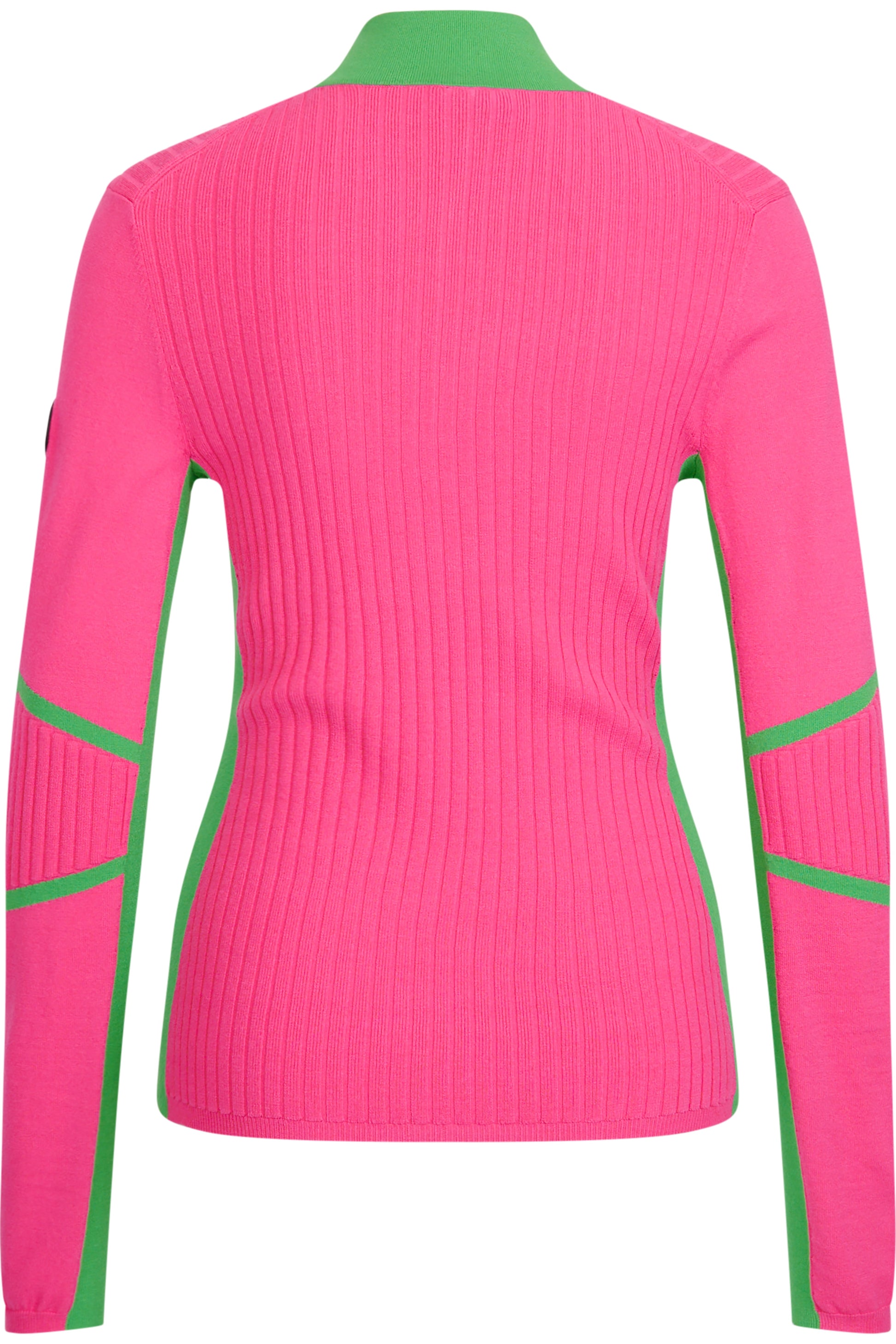 Contrasting stripes at the side seams and lower sleeve seams add a sporty touch, while contrasting colour stripes at the elbow add dynamism. The contrasting rib collar features a fine nylon zipper, while on the left side of the collar a Sportalm intarsia creates a subtle brand statement.