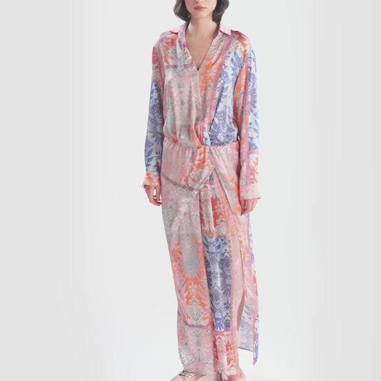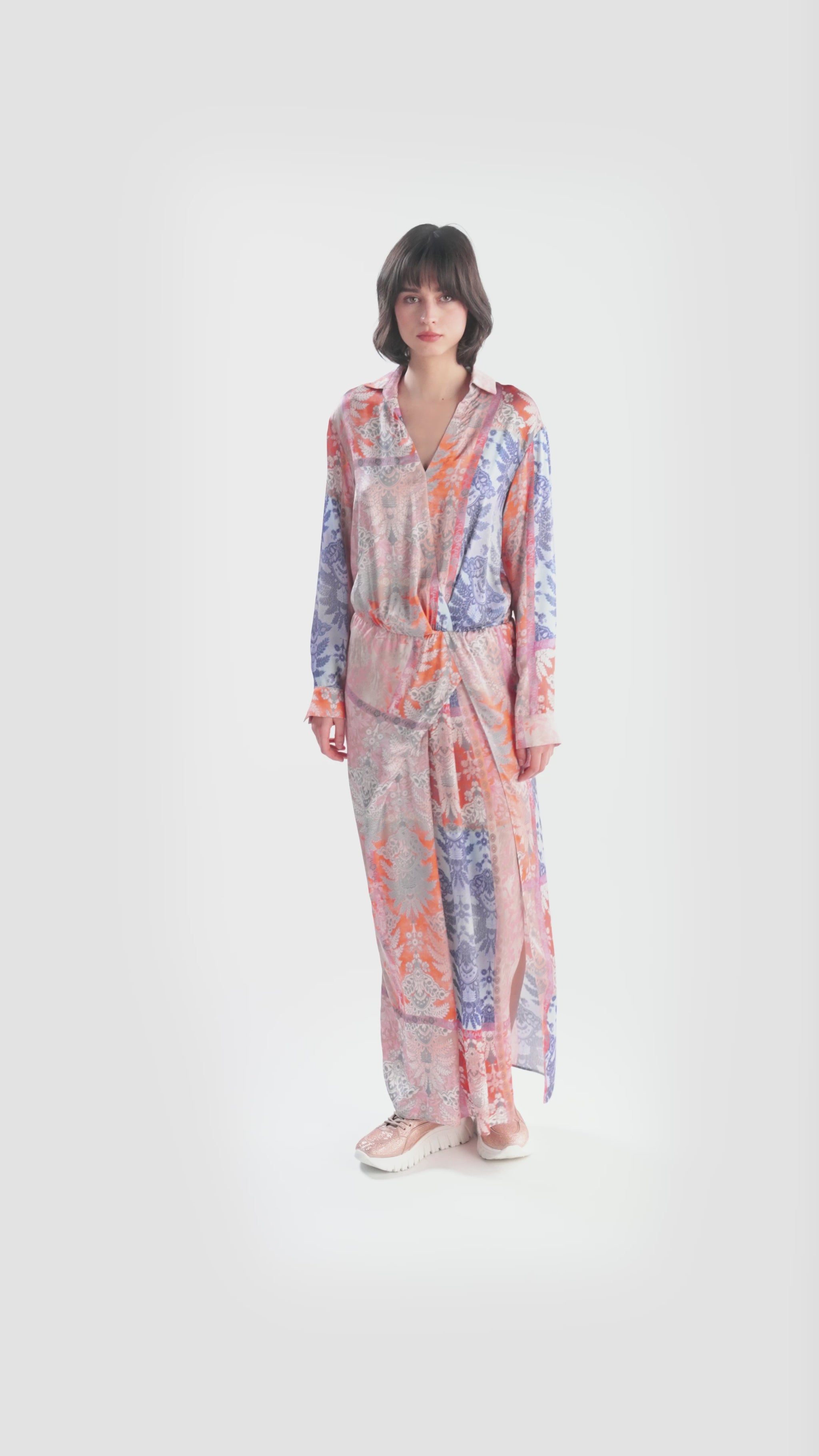 The dress can be cinched at the waist with an elasticated waistband. The long sleeves with a cuff and slit give the dress an additional feminine touch, which is skilfully emphasised by the all-over print.
