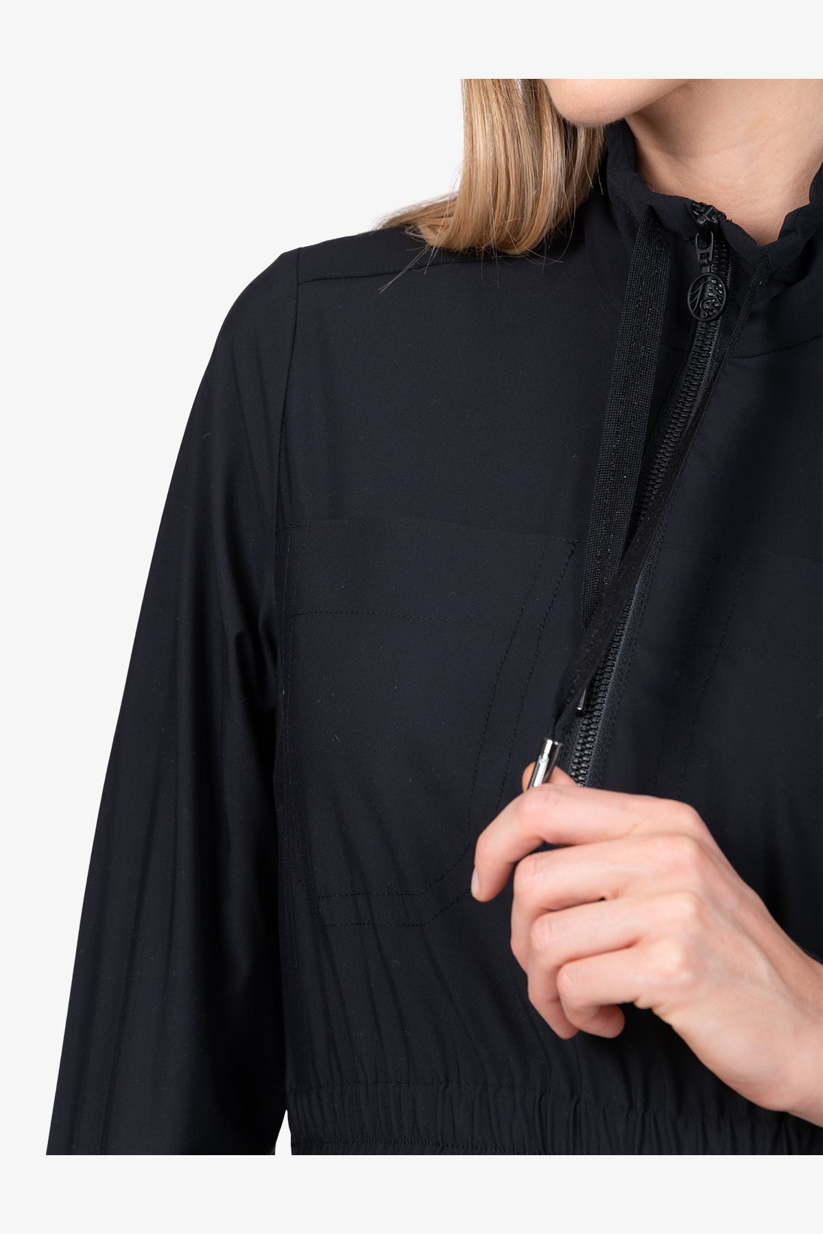 Pockets: quilted pockets in the top, seam pockets in the skirt