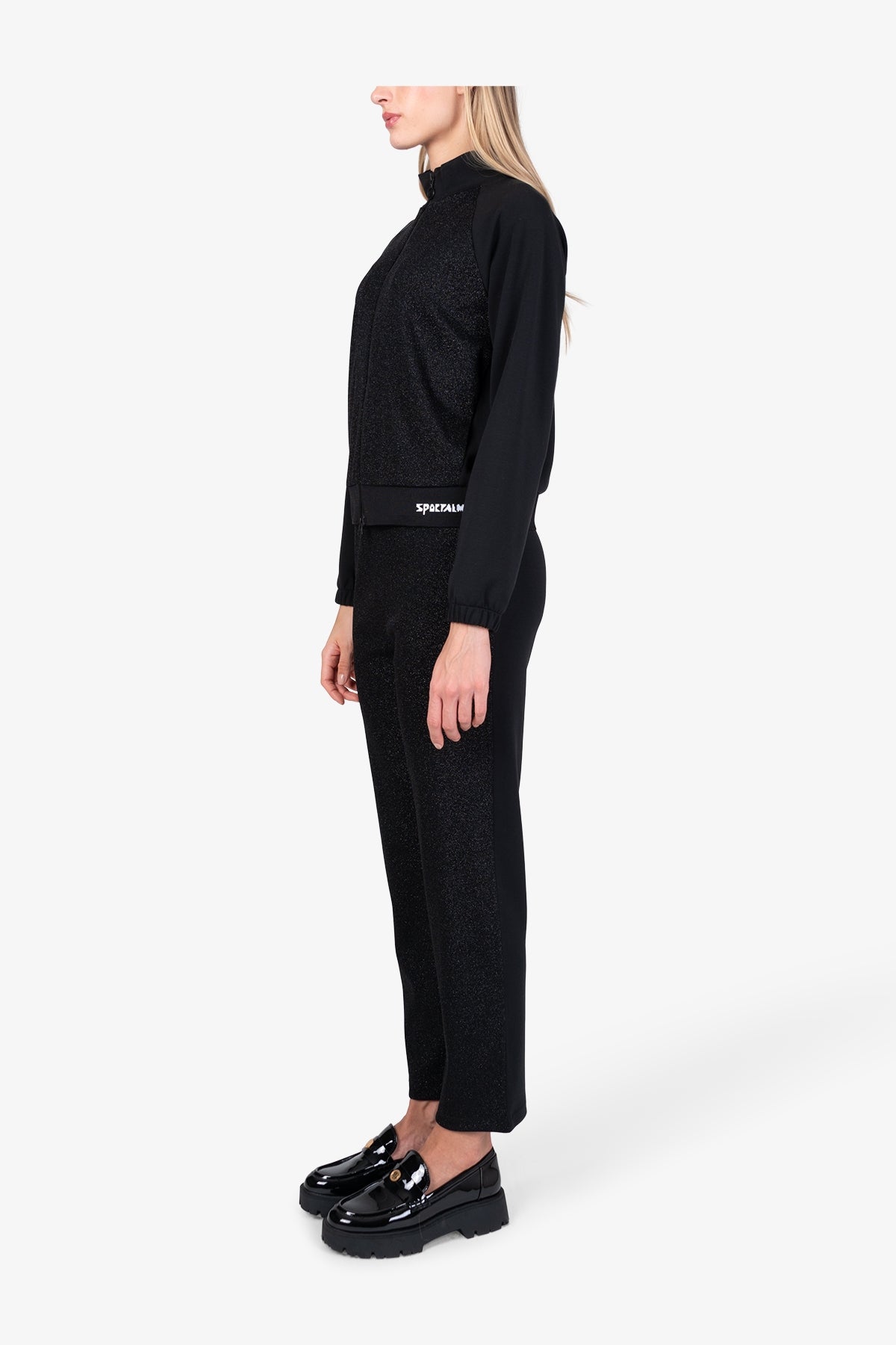 This exciting sweat jacket combines feminine elegance and sportiness thanks to the shimmering lurex sweat fabric on the front. A stylish highlight that is both fashionable and comfortable, perfect for versatile looks.