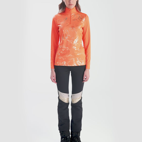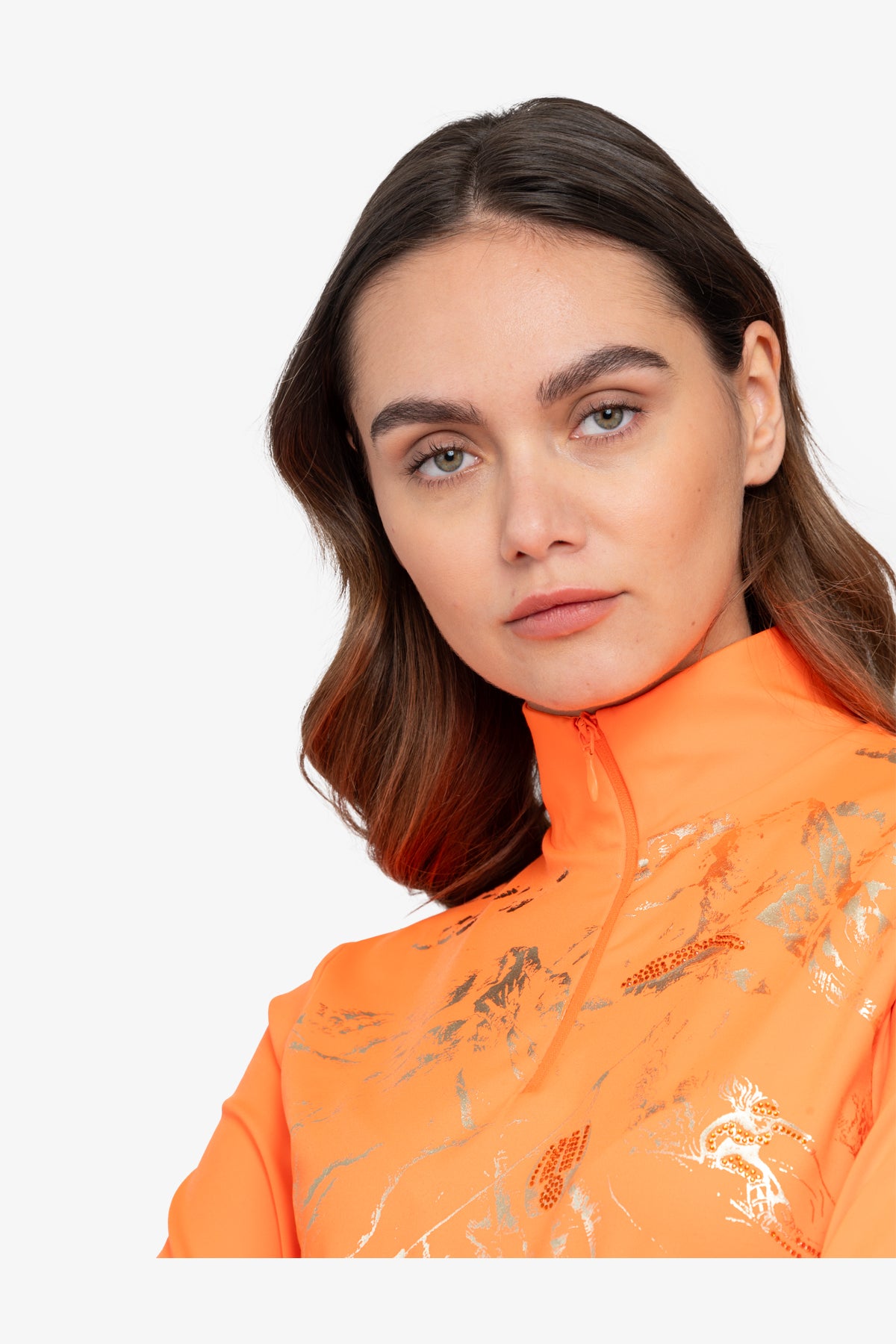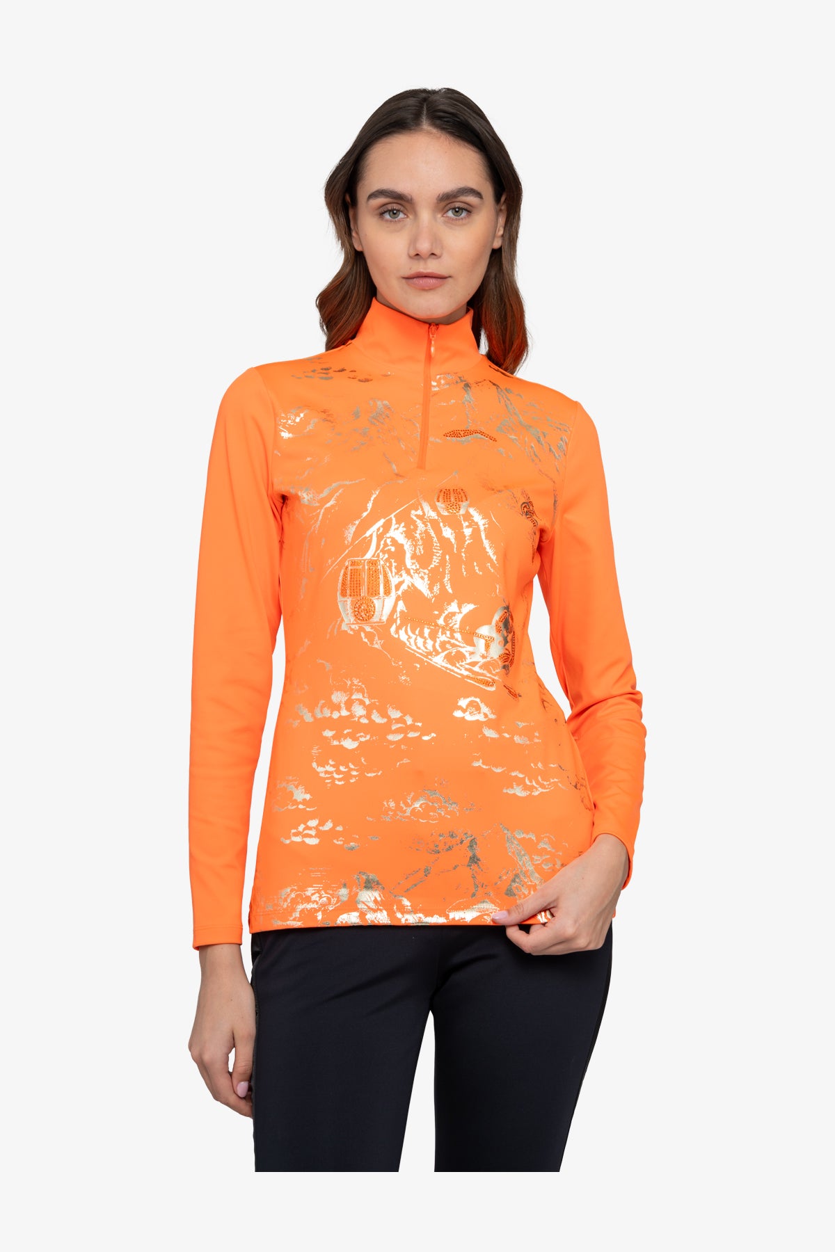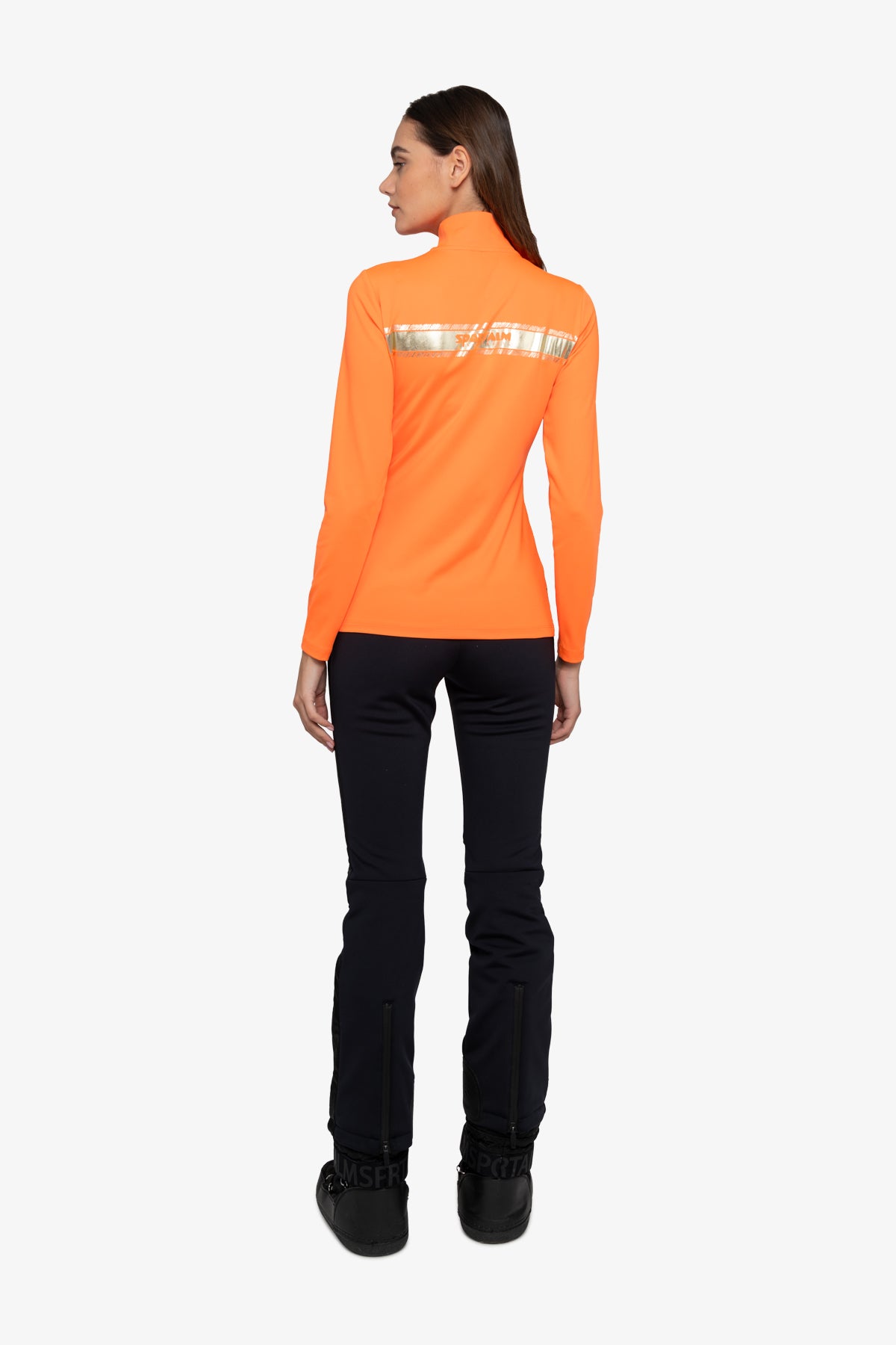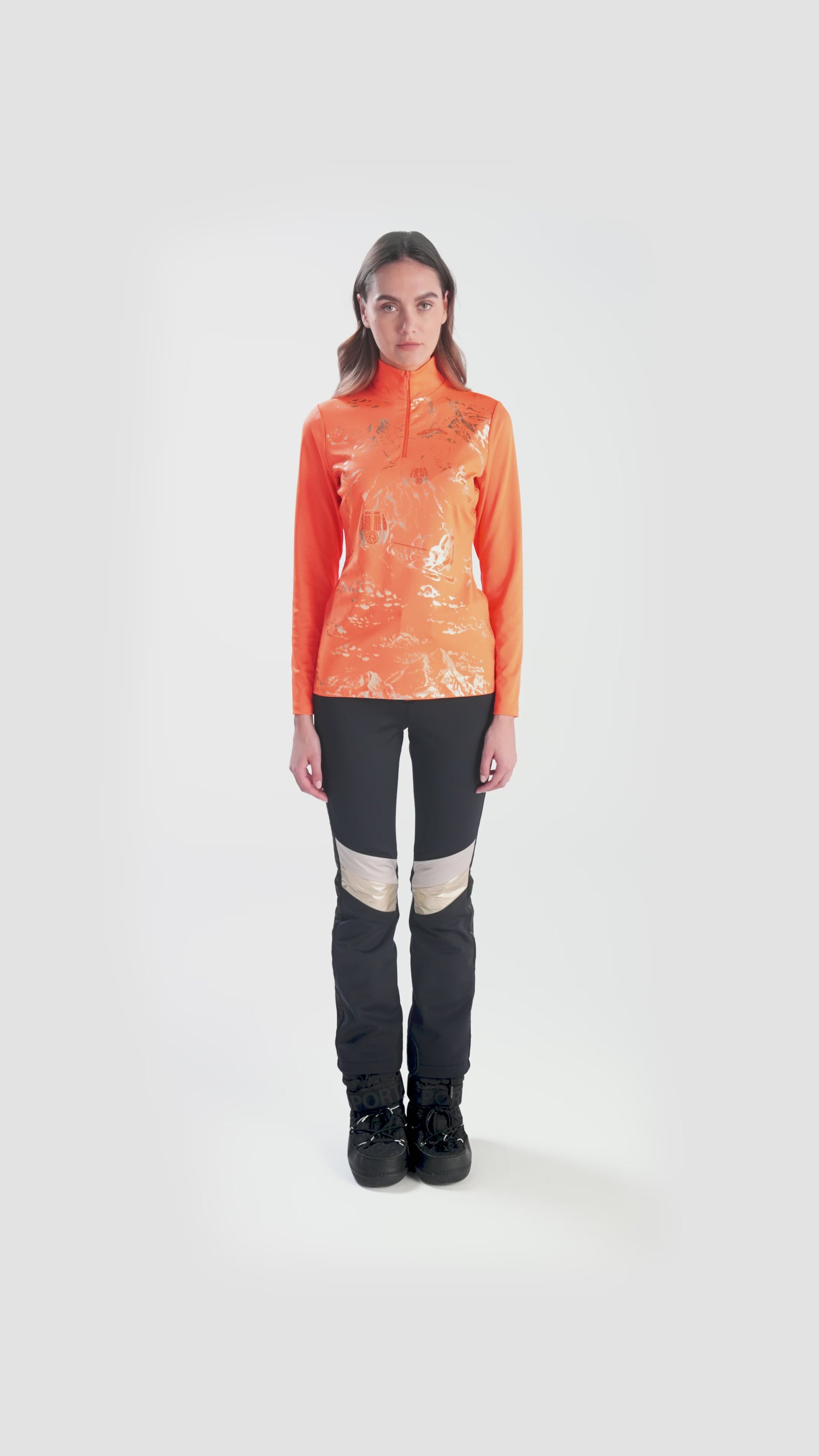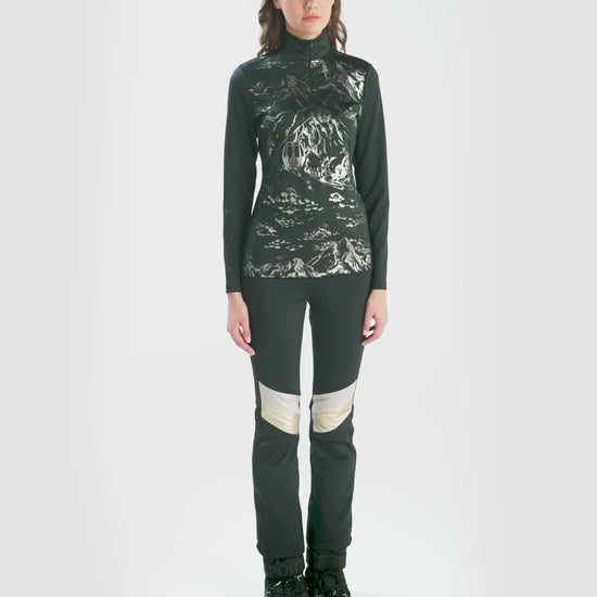 The glamorous undershirt features a fascinating front with a mountain landscape and ski motifs in a metallic foil print. Individual rhinestones are integrated into the motif to create a sparkling effect. The back is adorned with a metallic Sportalm wording print for a distinctive look.