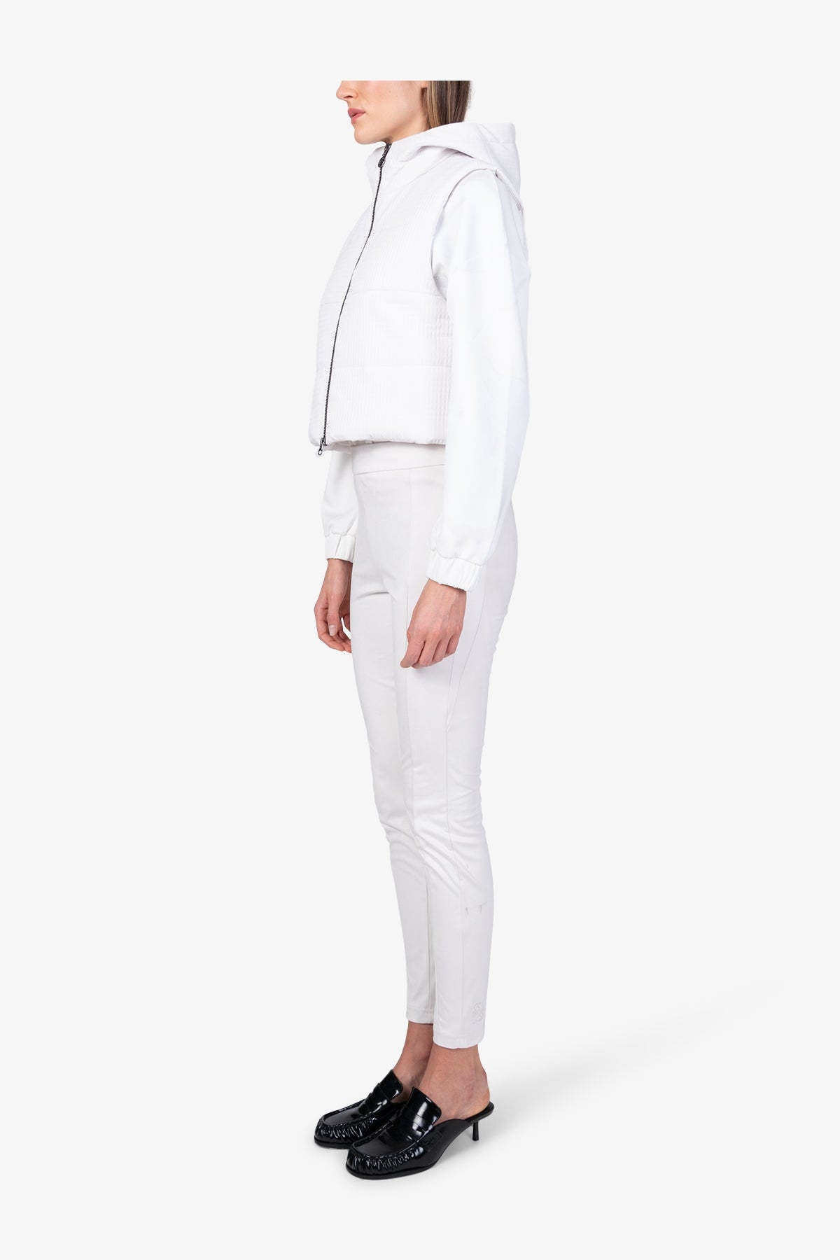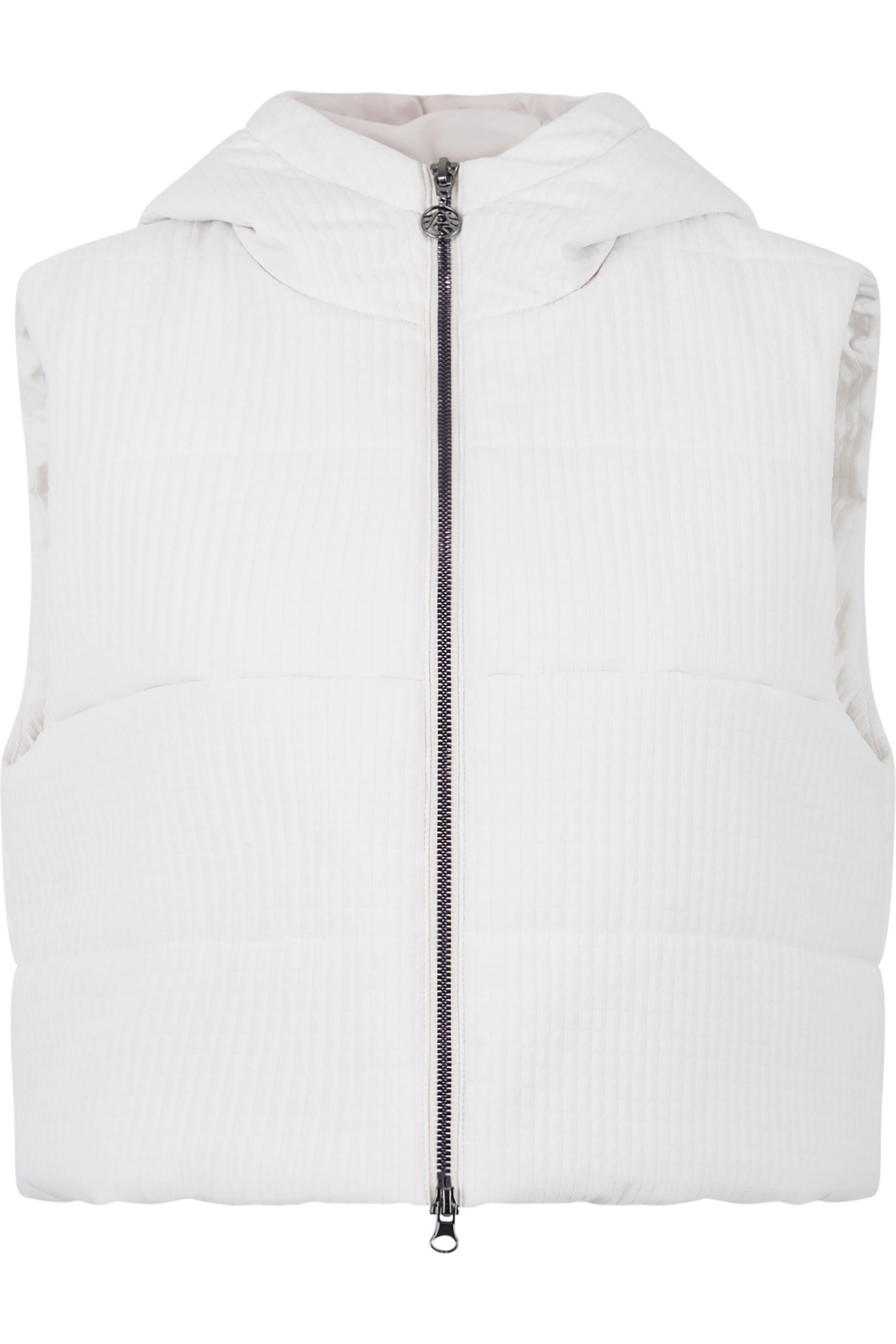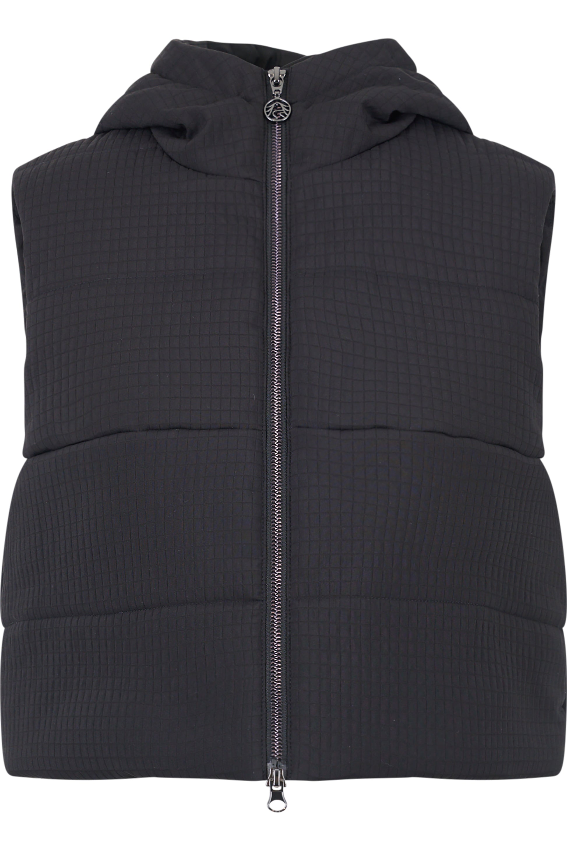 This padded gilet with a graphic design not only offers a fashionable look, but also optimum comfort. The warm hood provides additional protection on chilly days.