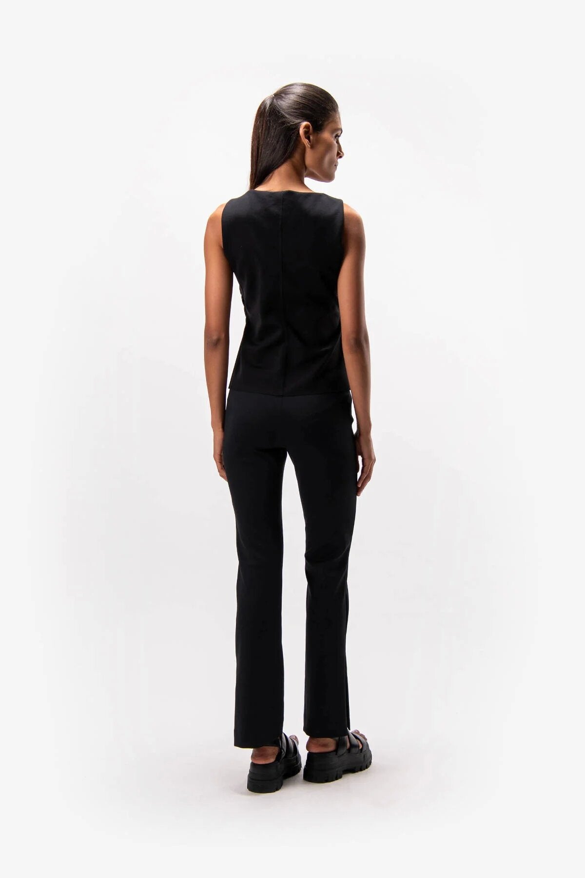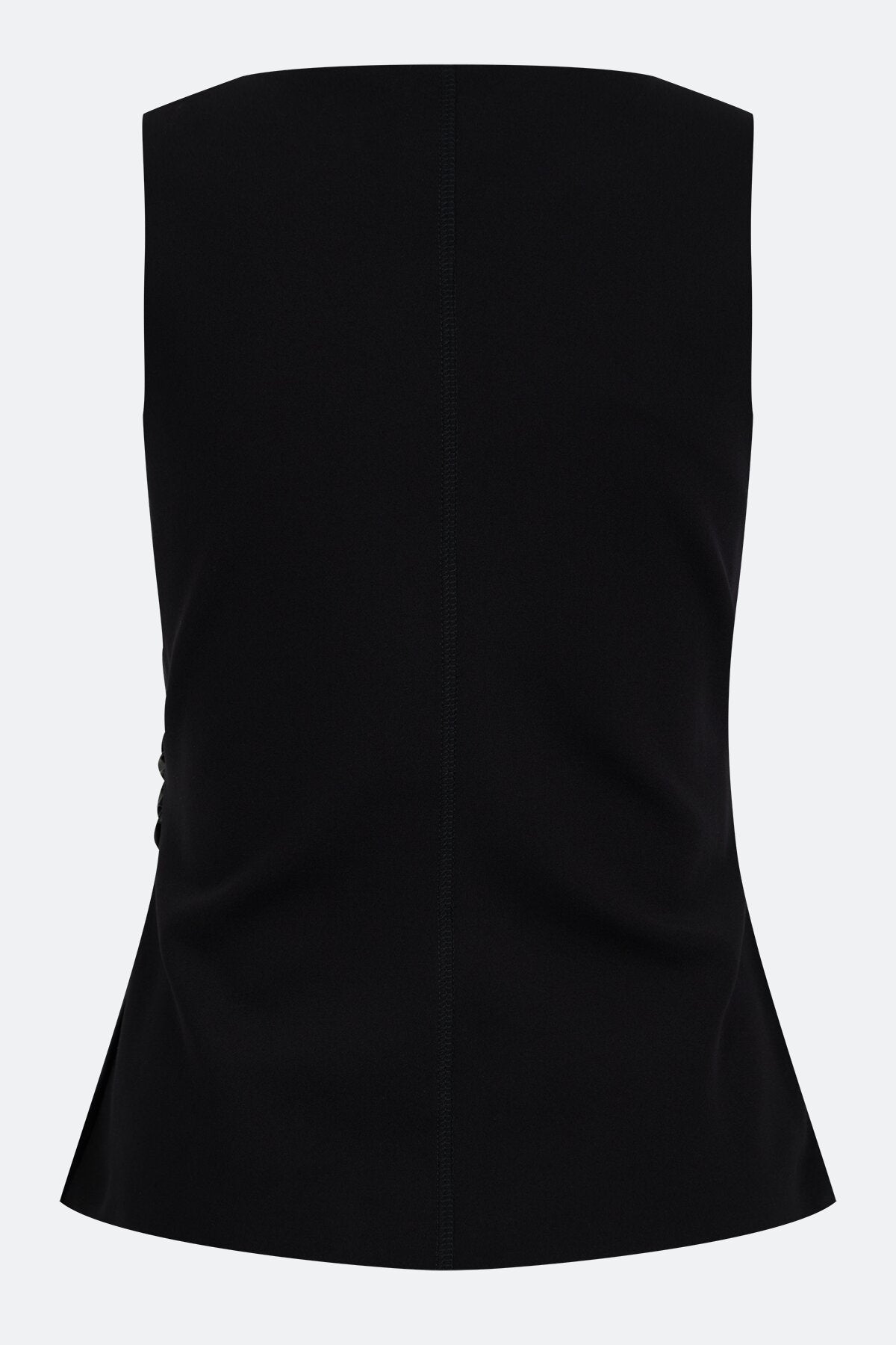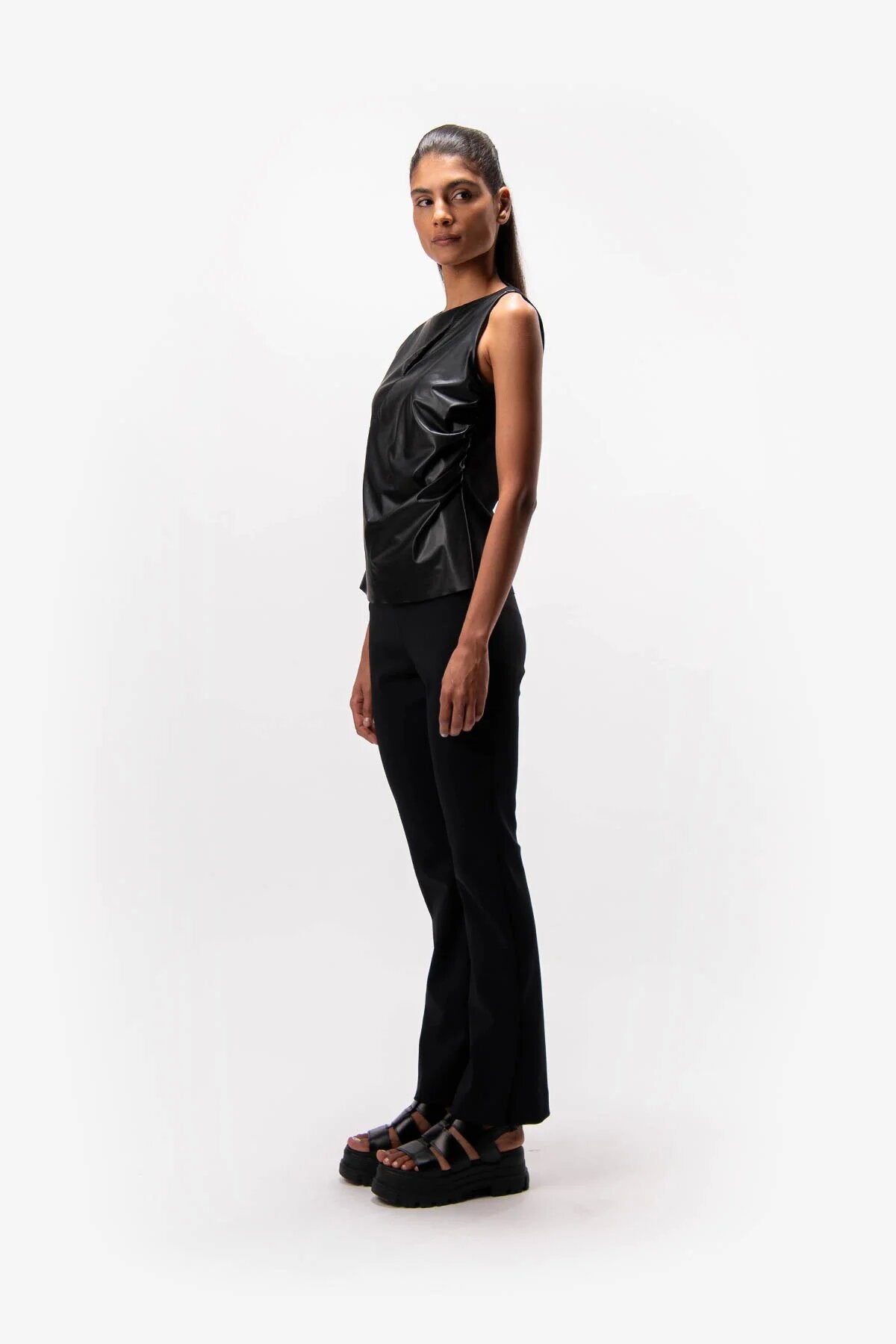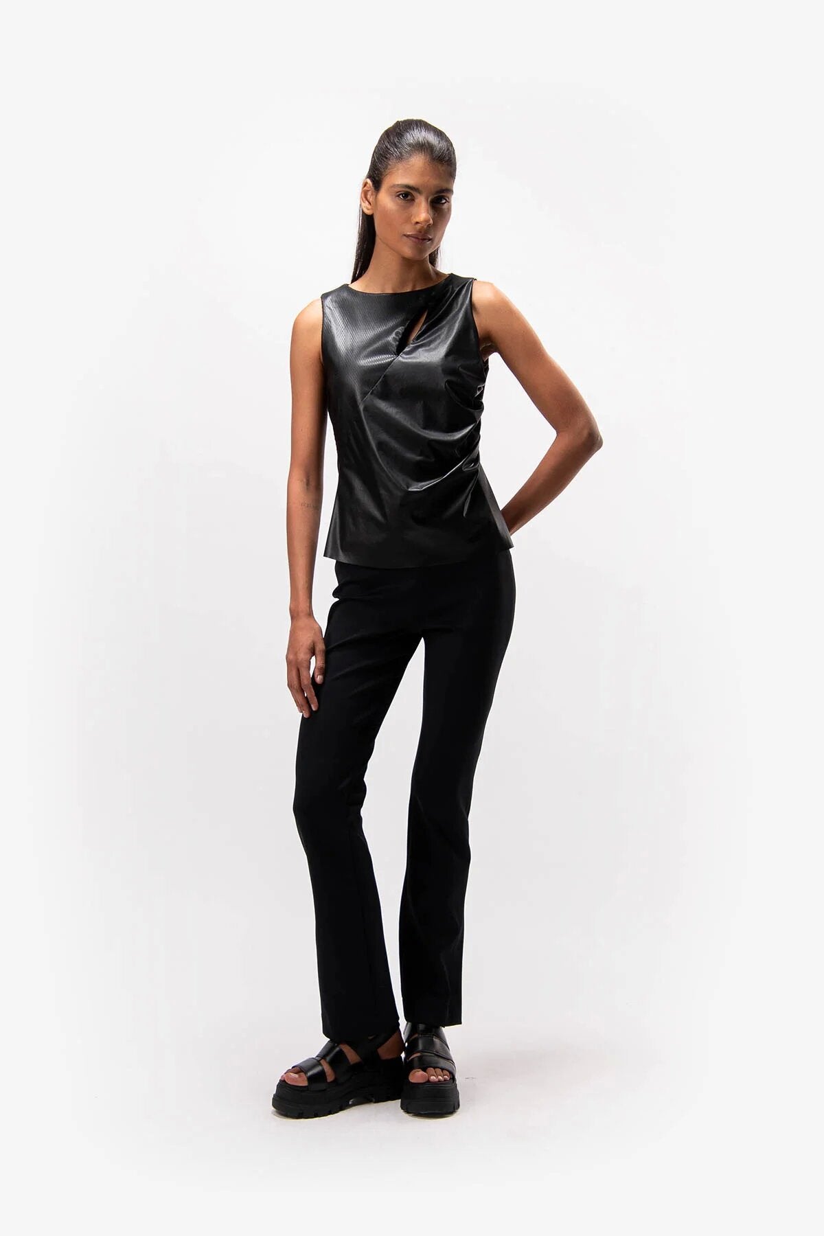 这款无袖上衣将垂坠的仿皮革前面与柔软的潜水布后背结合在一起。