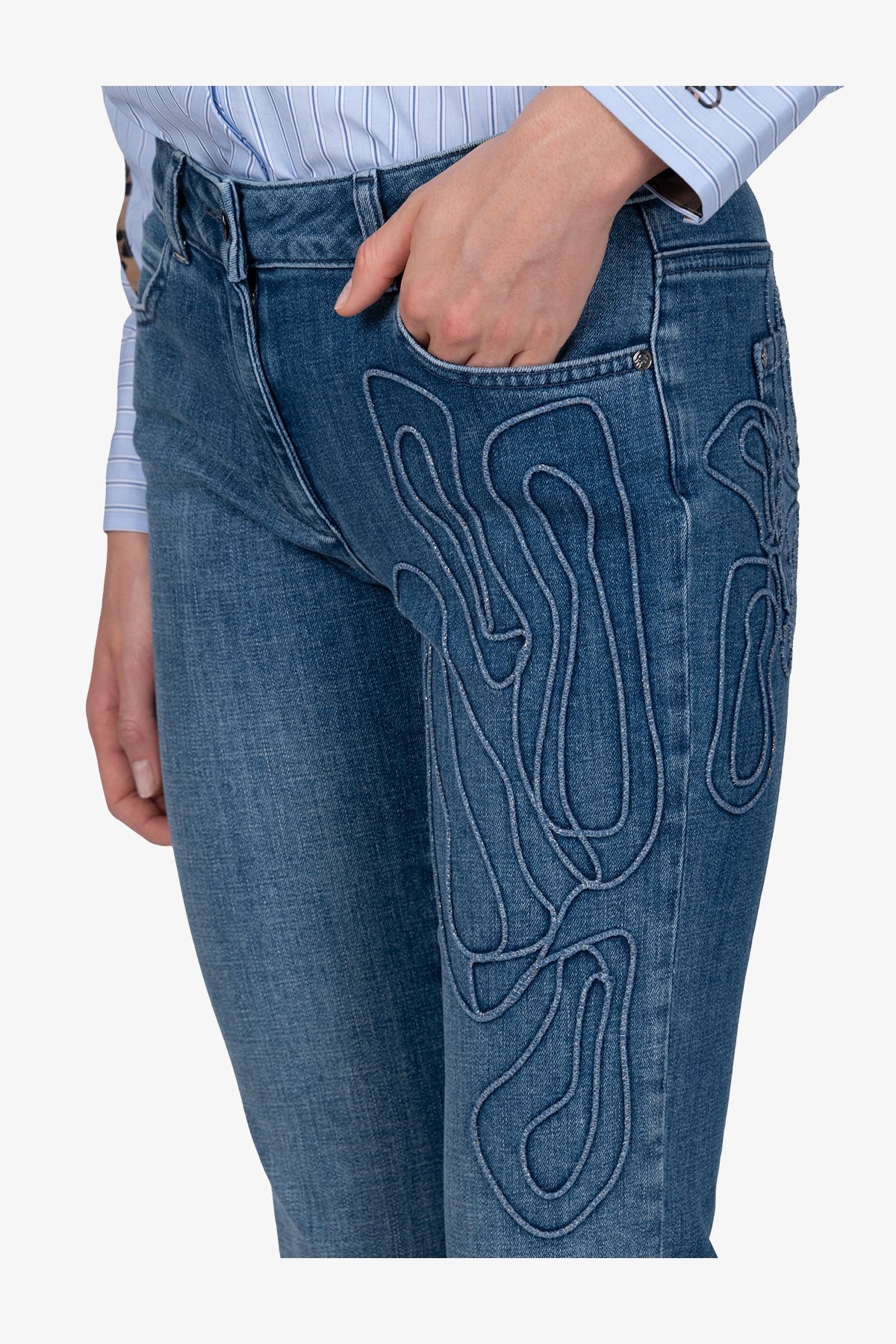 豹纹贴布绣洗水牛仔裤