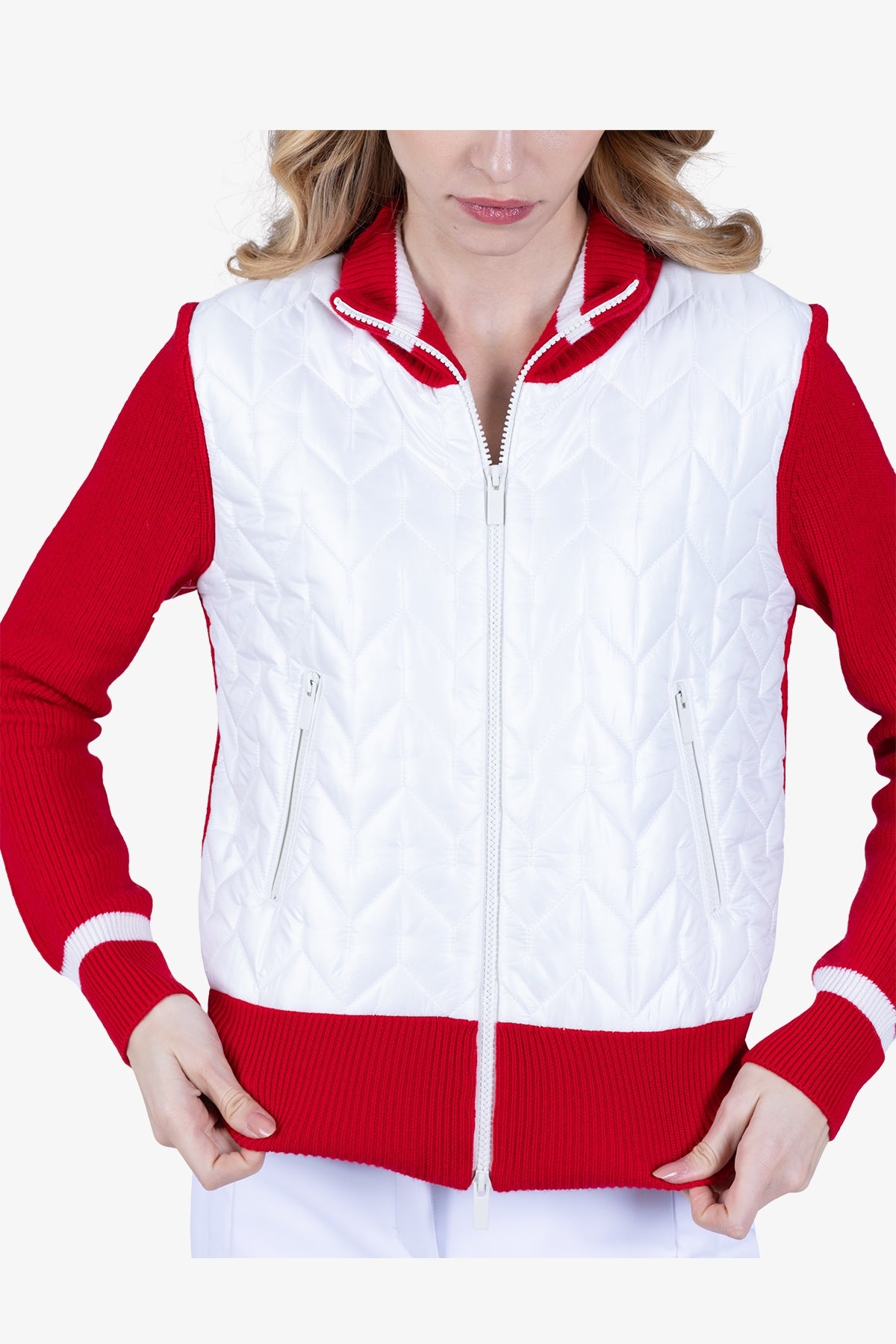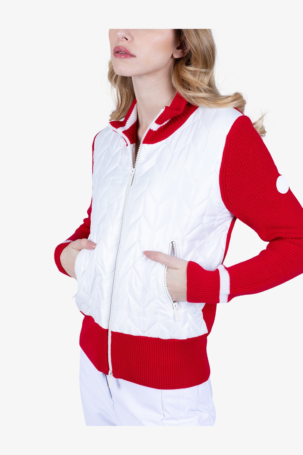 亮点:正面采用加厚尼龙绗缝面料,左上臂饰有 Sportalm 硅胶徽标,下摆采用宽罗纹设计