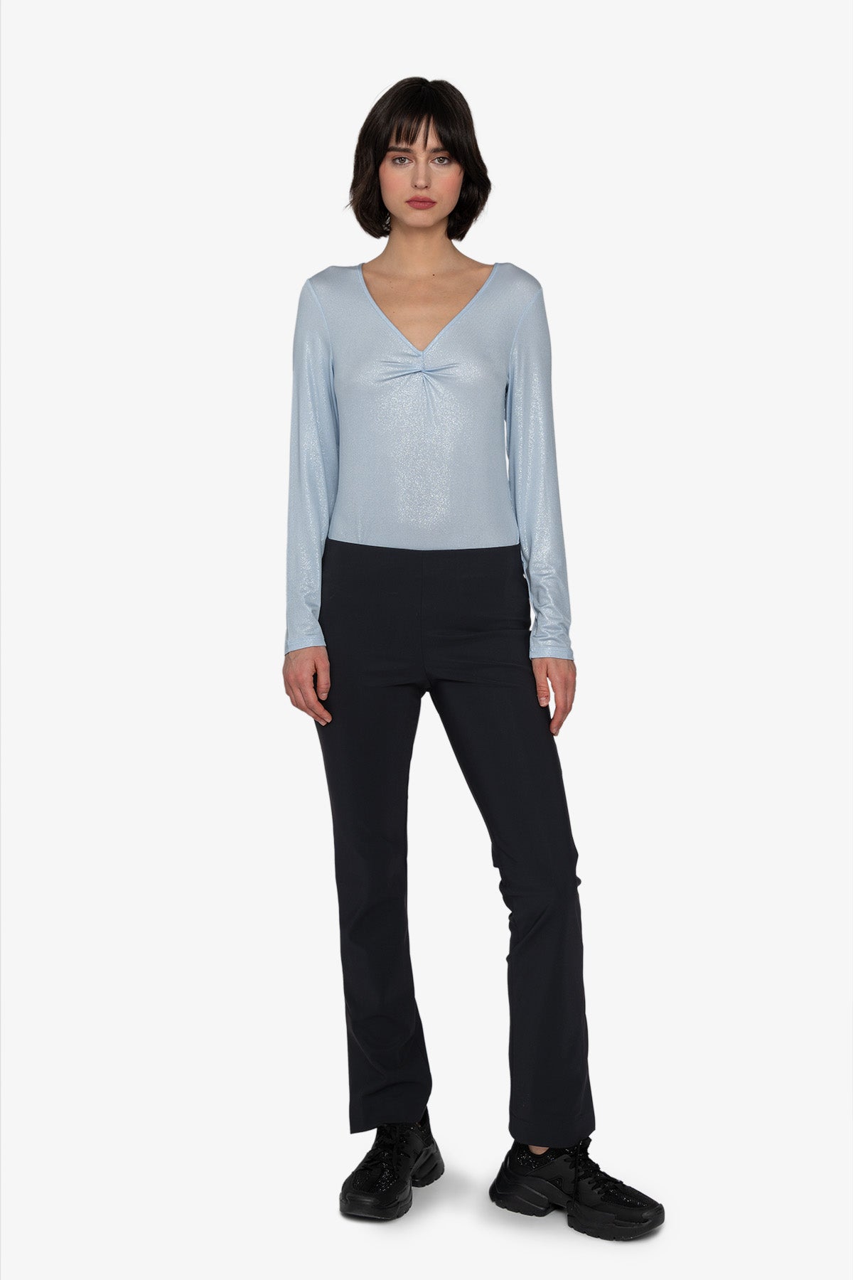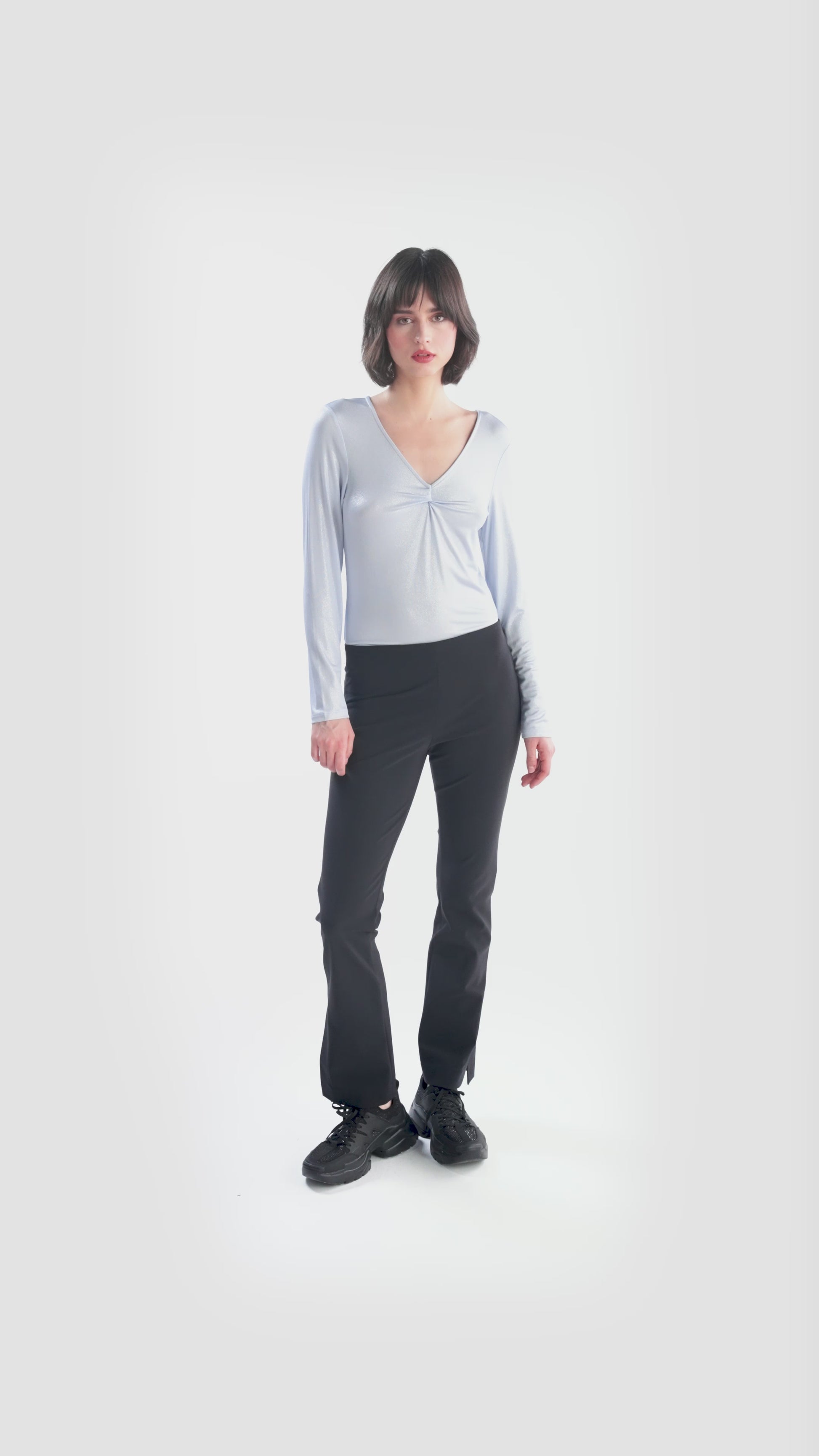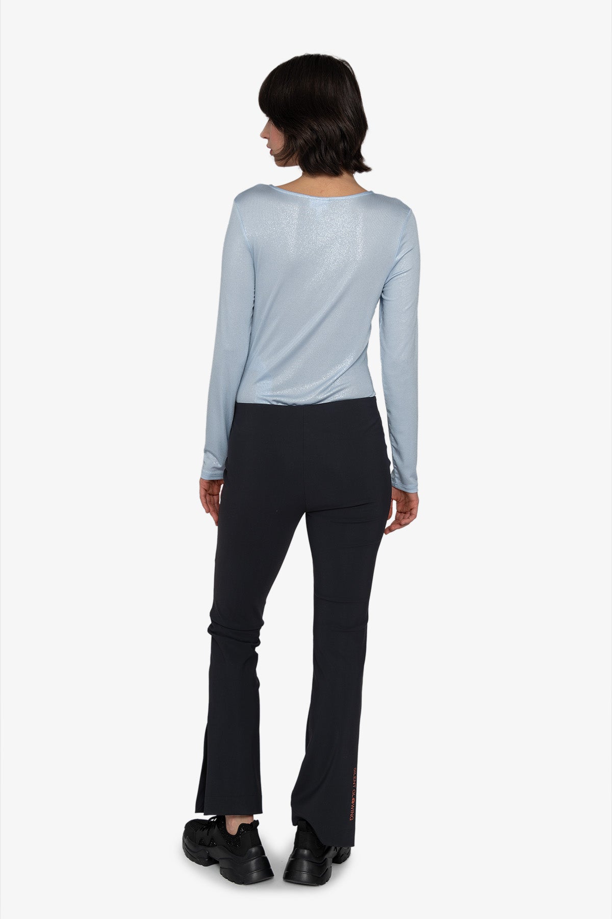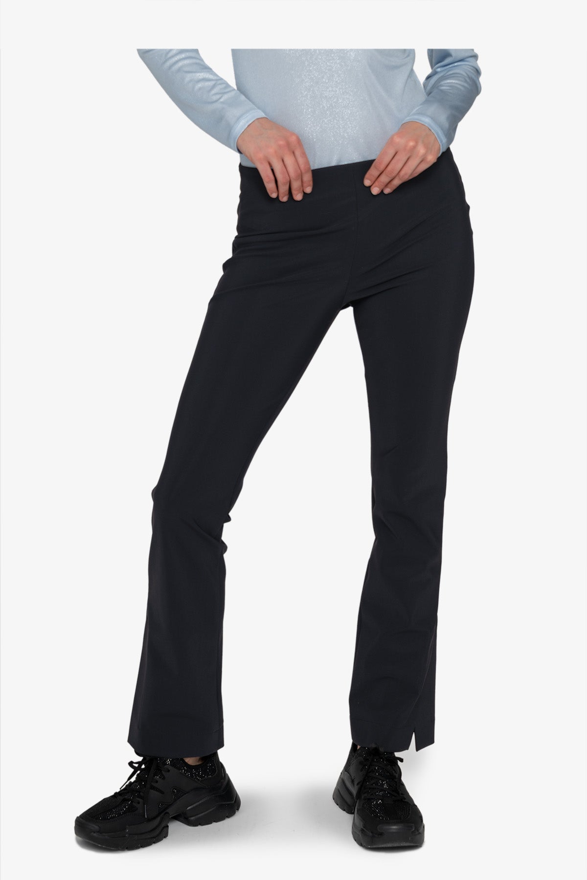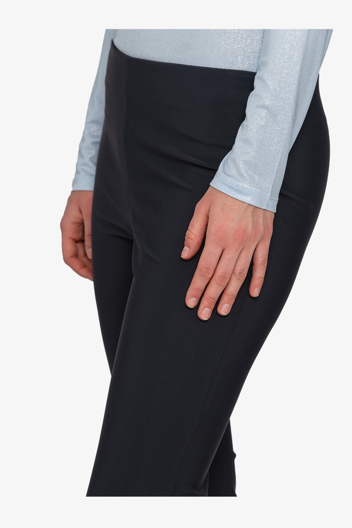 裤脚下摆开衩的修身裤腿赋予了这款紧身裤一种现代而优雅的感觉。