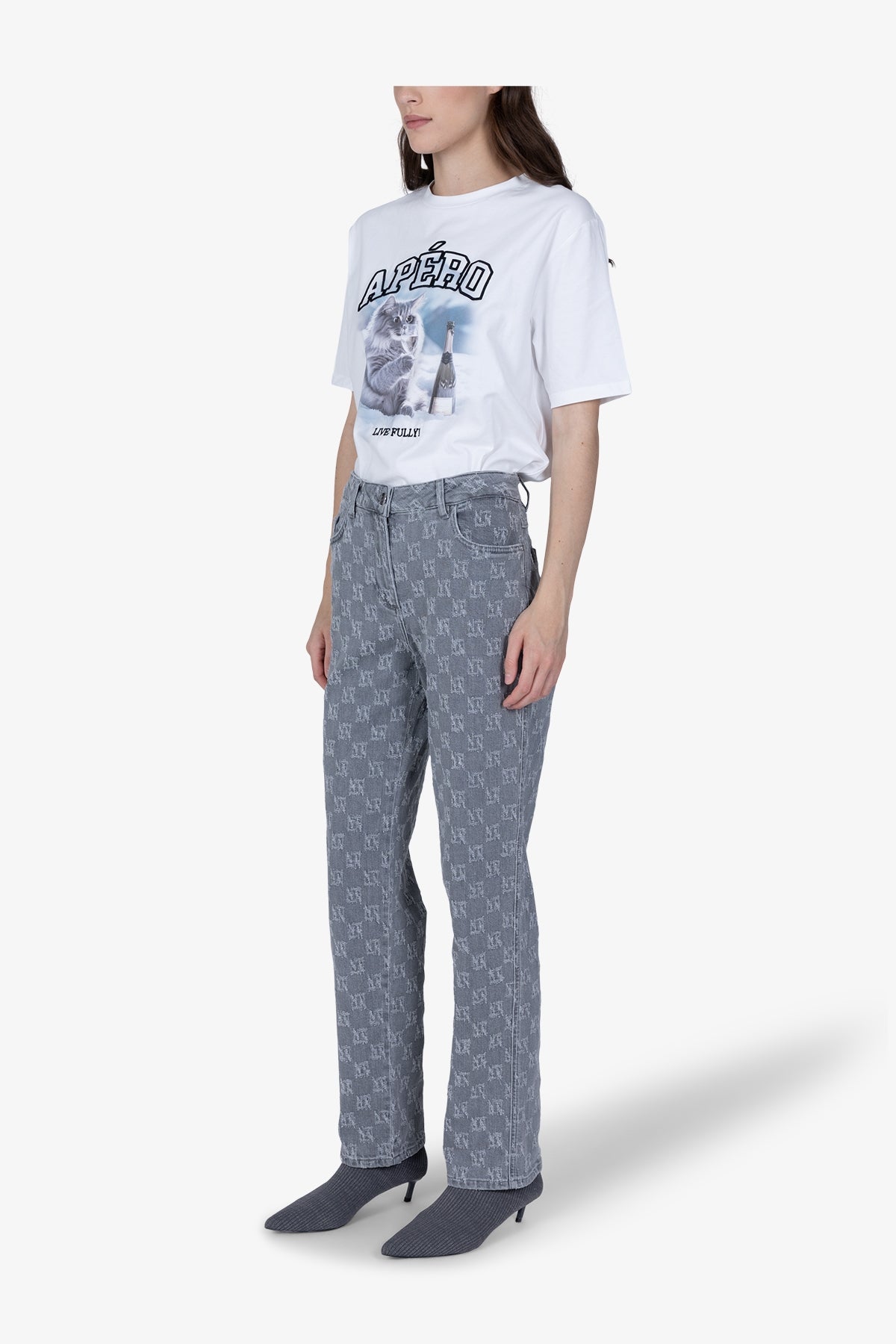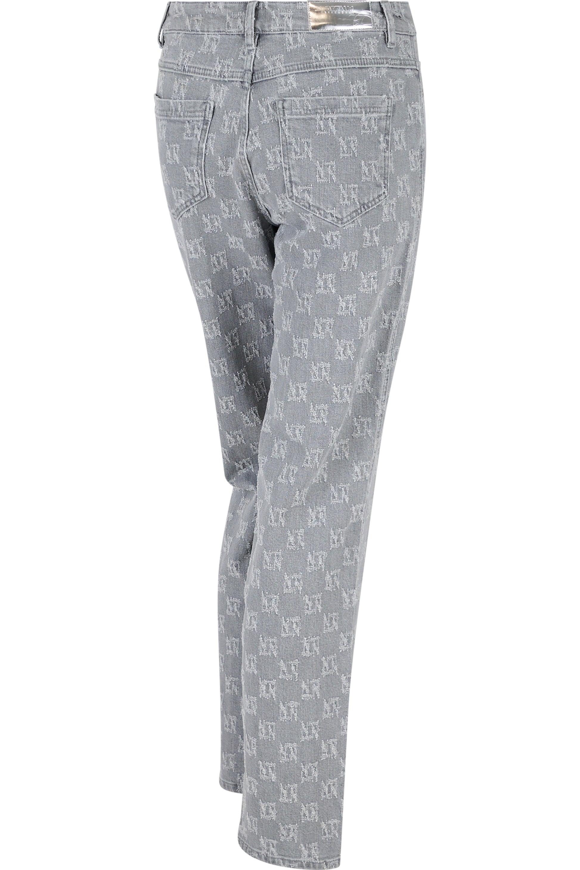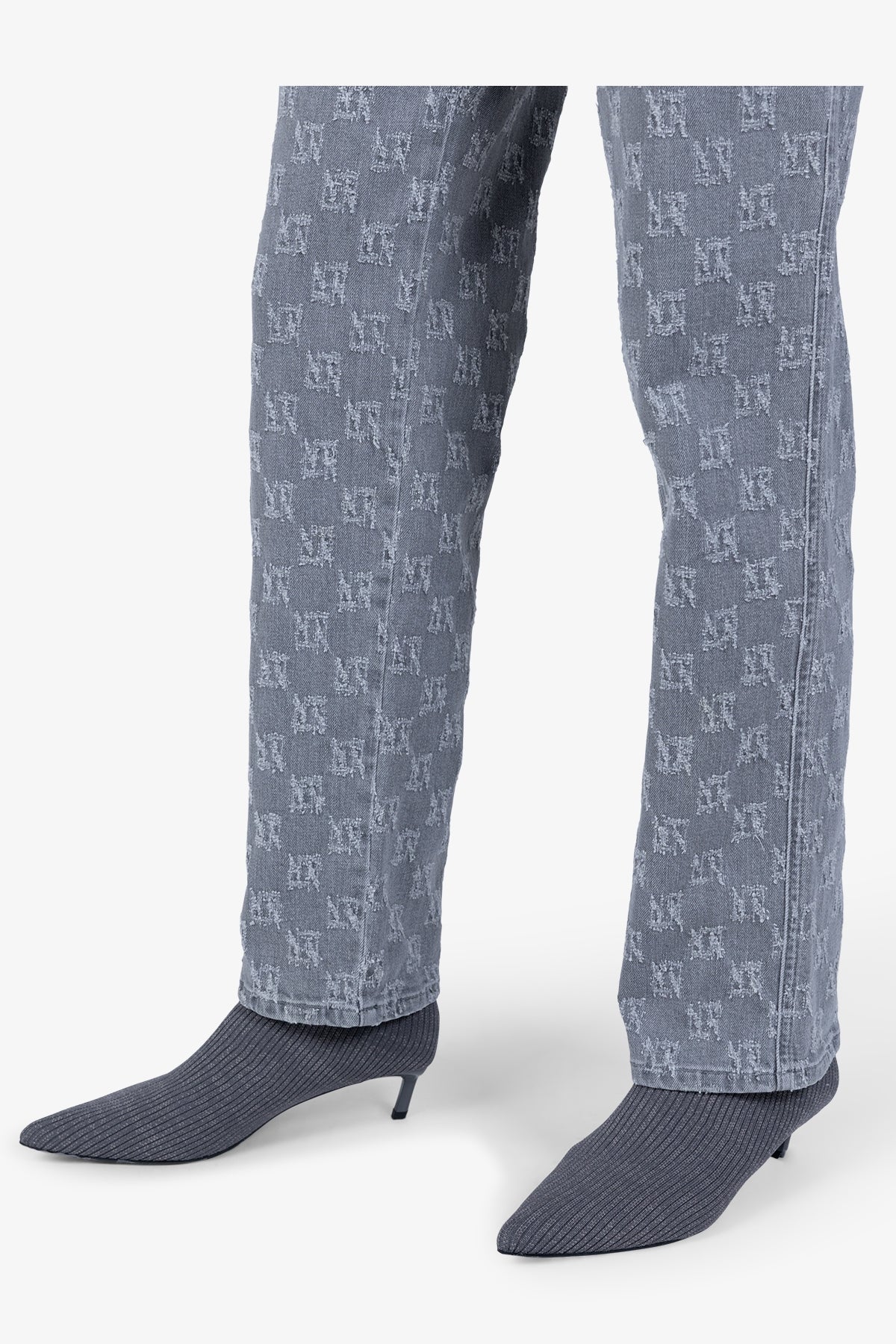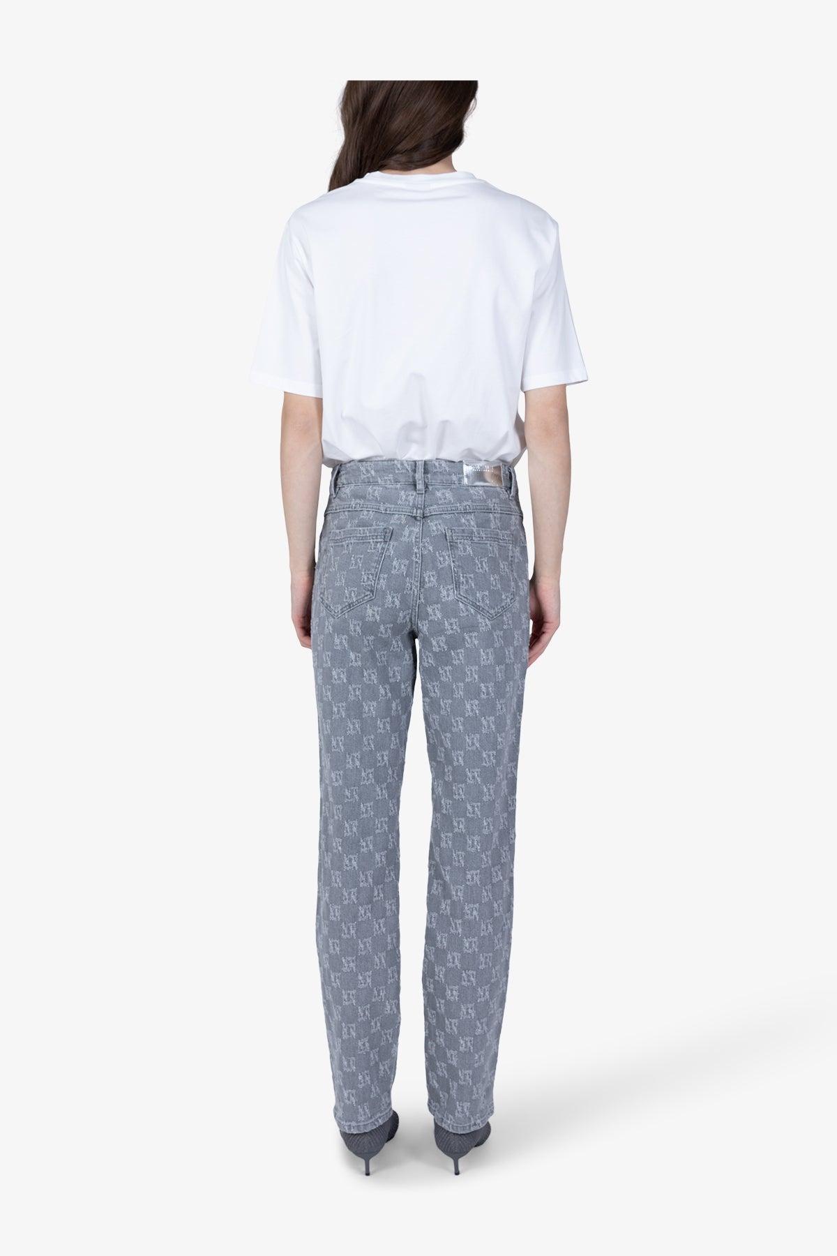 这款休闲直筒牛仔裤采用夺目的奢华激光切割棋盘格图案和时尚水洗工艺。这种设计赋予牛仔裤时尚外观,彰显现代都市风格。