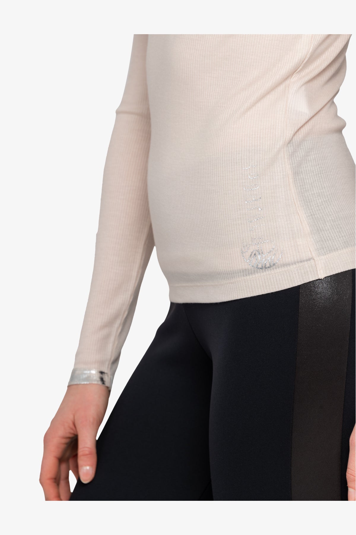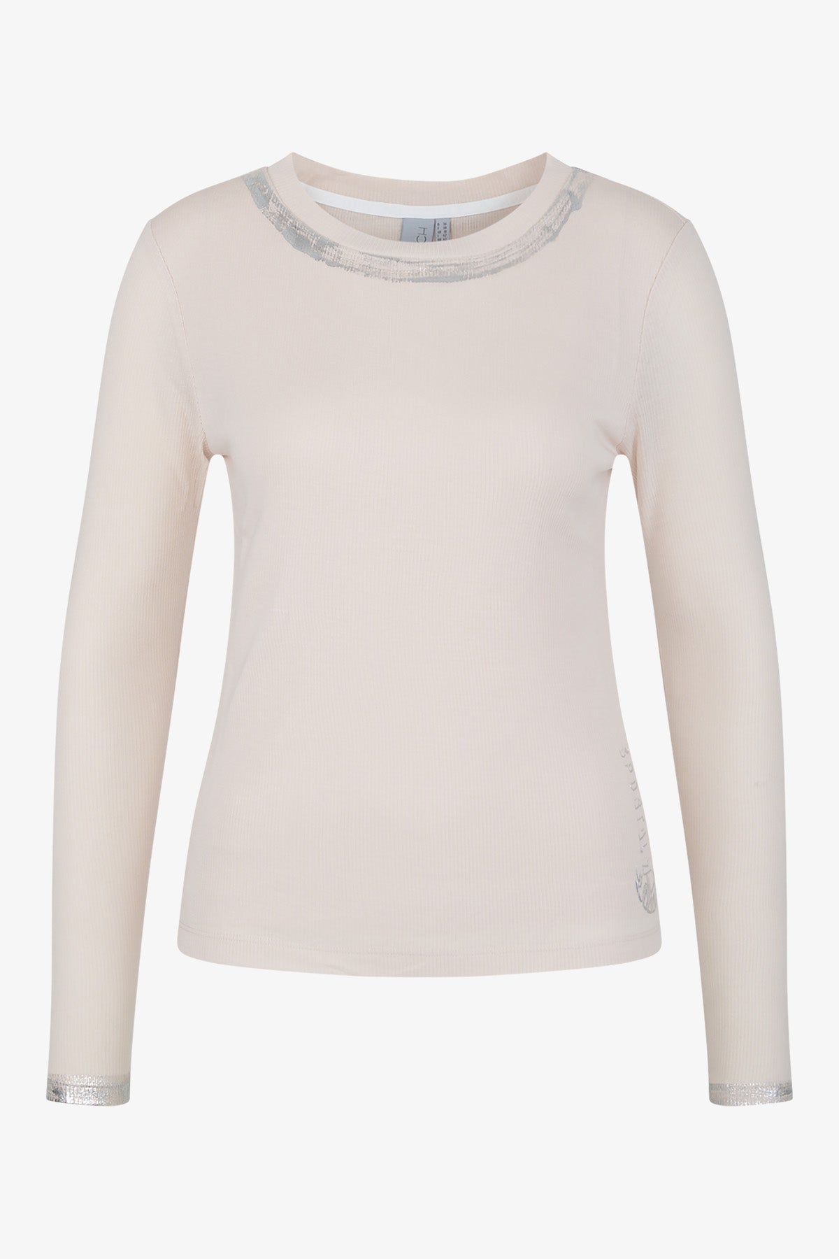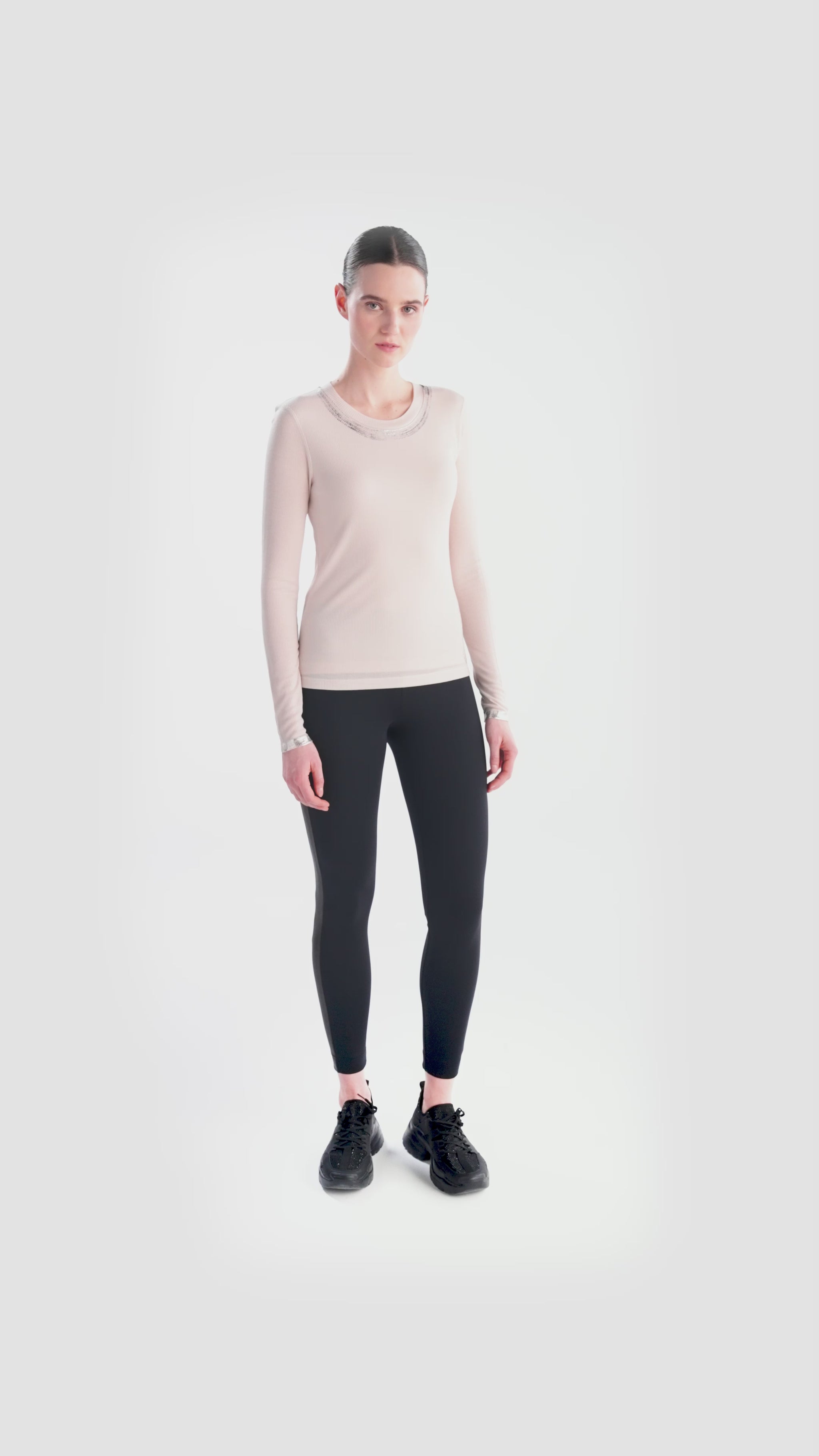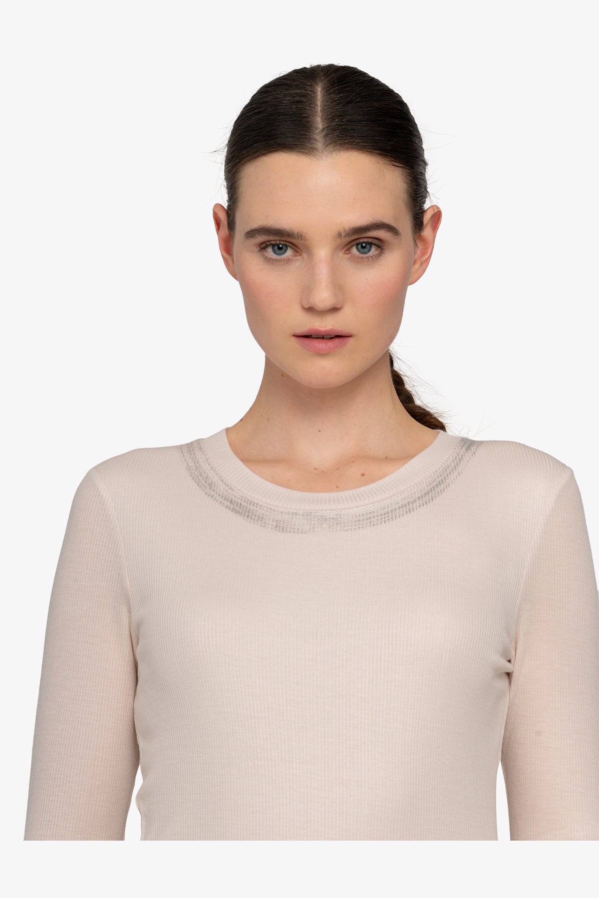 我们的圆领衬衫以其经典优雅而令人印象深刻。直下摆确保了现代感,而圆领和袖口下摆上的银色效果则为衬衫增添了时尚感。