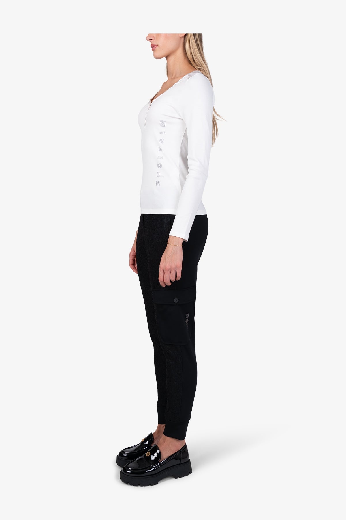 这款时尚长袖衬衫采用精致缎面面料,闪耀夺目。闪亮的“Sportalm”水钻字样更添光彩,更显优雅气质。