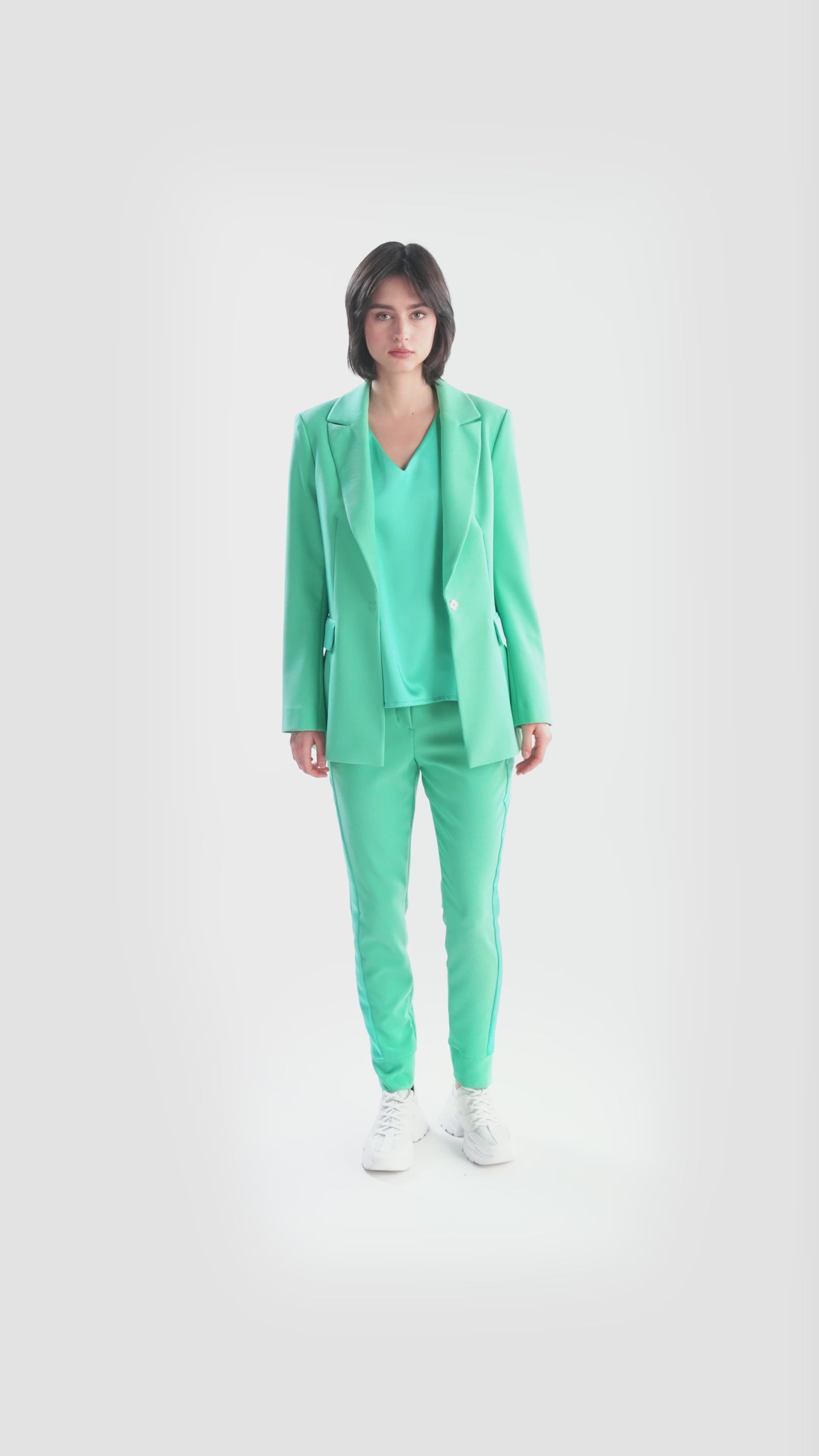 这款时尚运动型慢跑裤采用斜纹布制成,侧边饰有缎纹条纹,让双腿显得纤细,时尚感十足。隐形拉链和前部中央腰部挂钩确保外观整洁,穿脱方便。