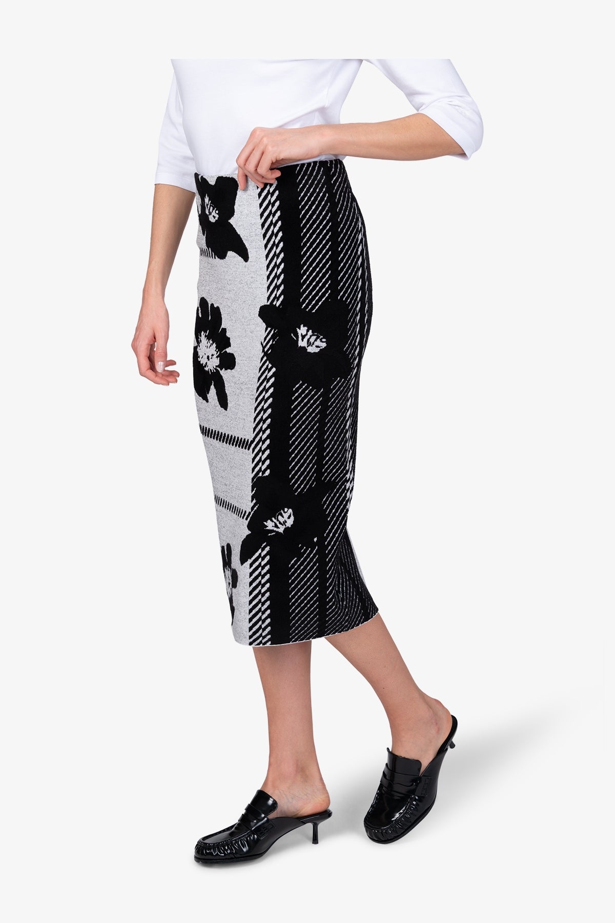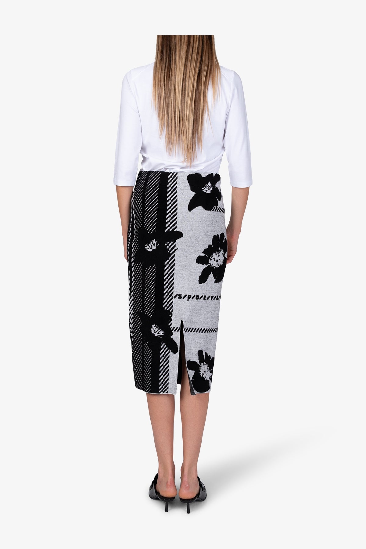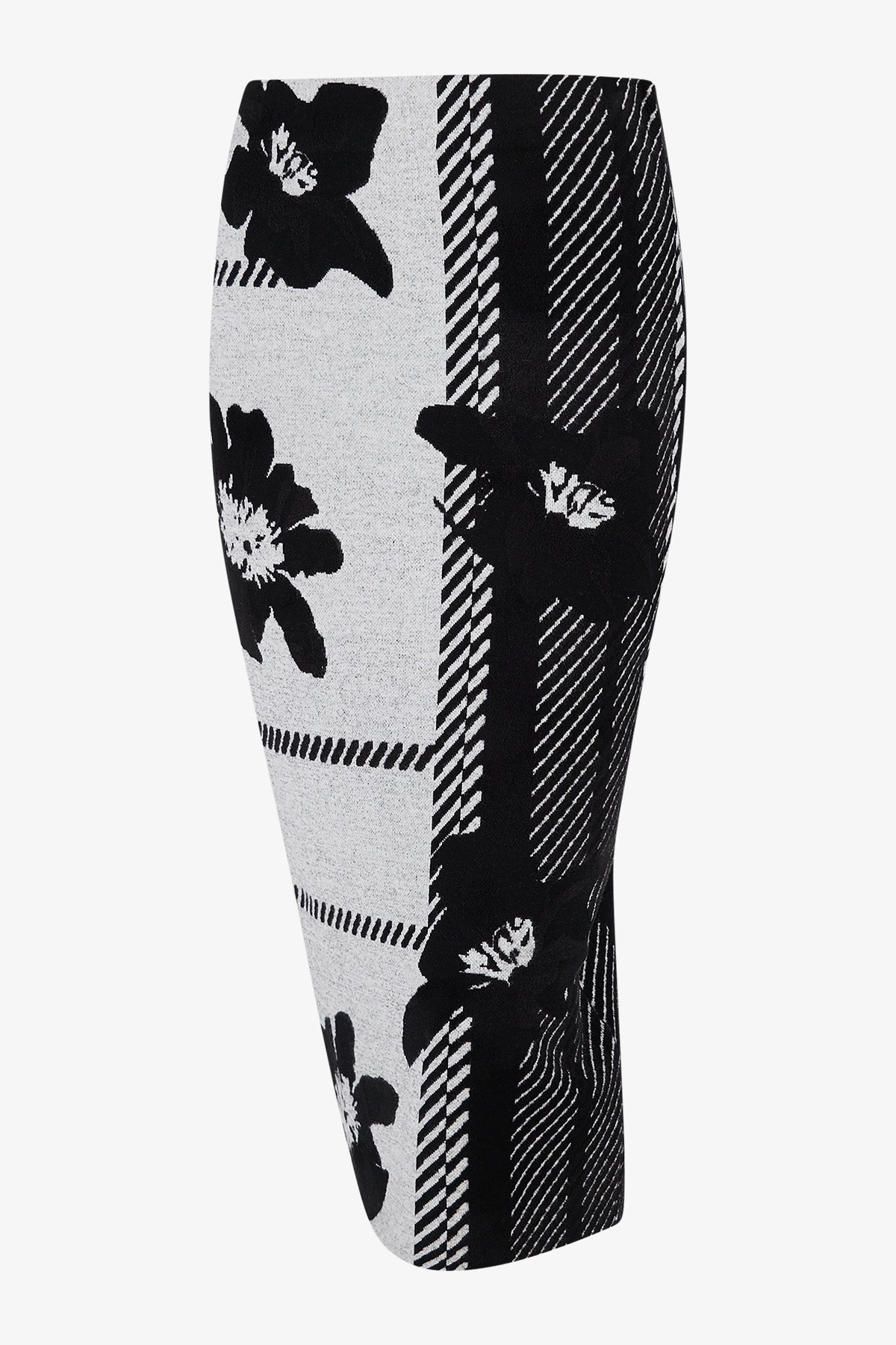 这款优雅的中长裙采用修身剪裁和独特的提花针织面料。充满女性气质和时尚感,是出席特殊场合的完美之选。