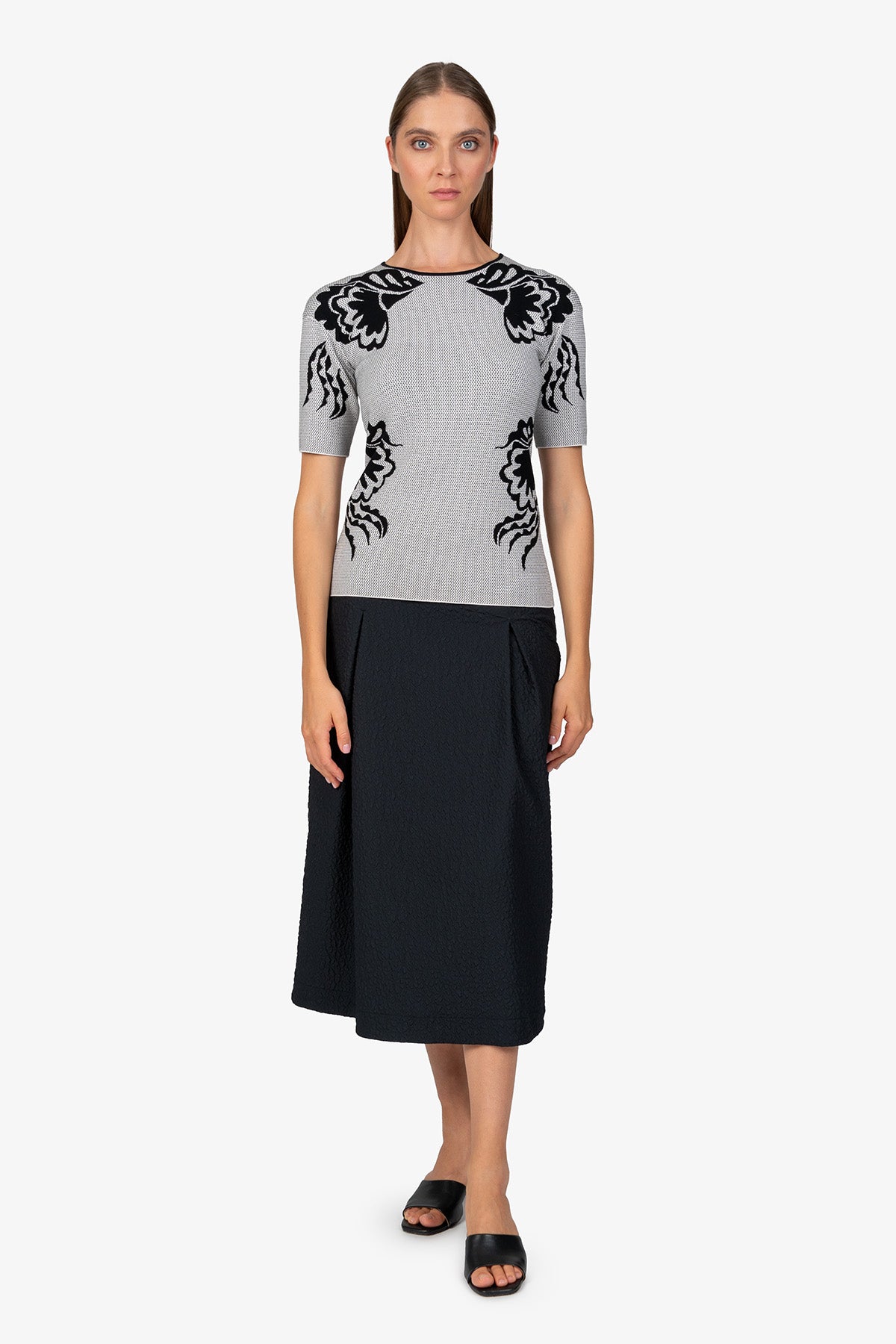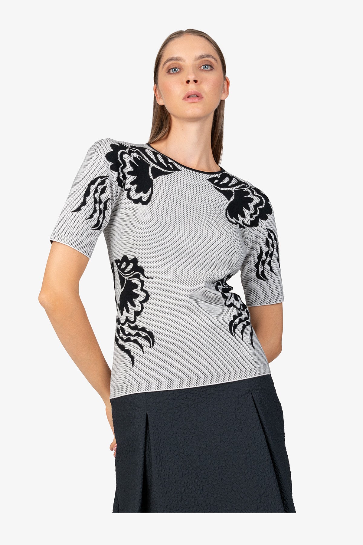 这款短袖衬衫采用精致的提花针织,十分引人注目。它融合了高贵与奢华的设计,因此对于注重时尚的女性来说是一个特别的亮点。