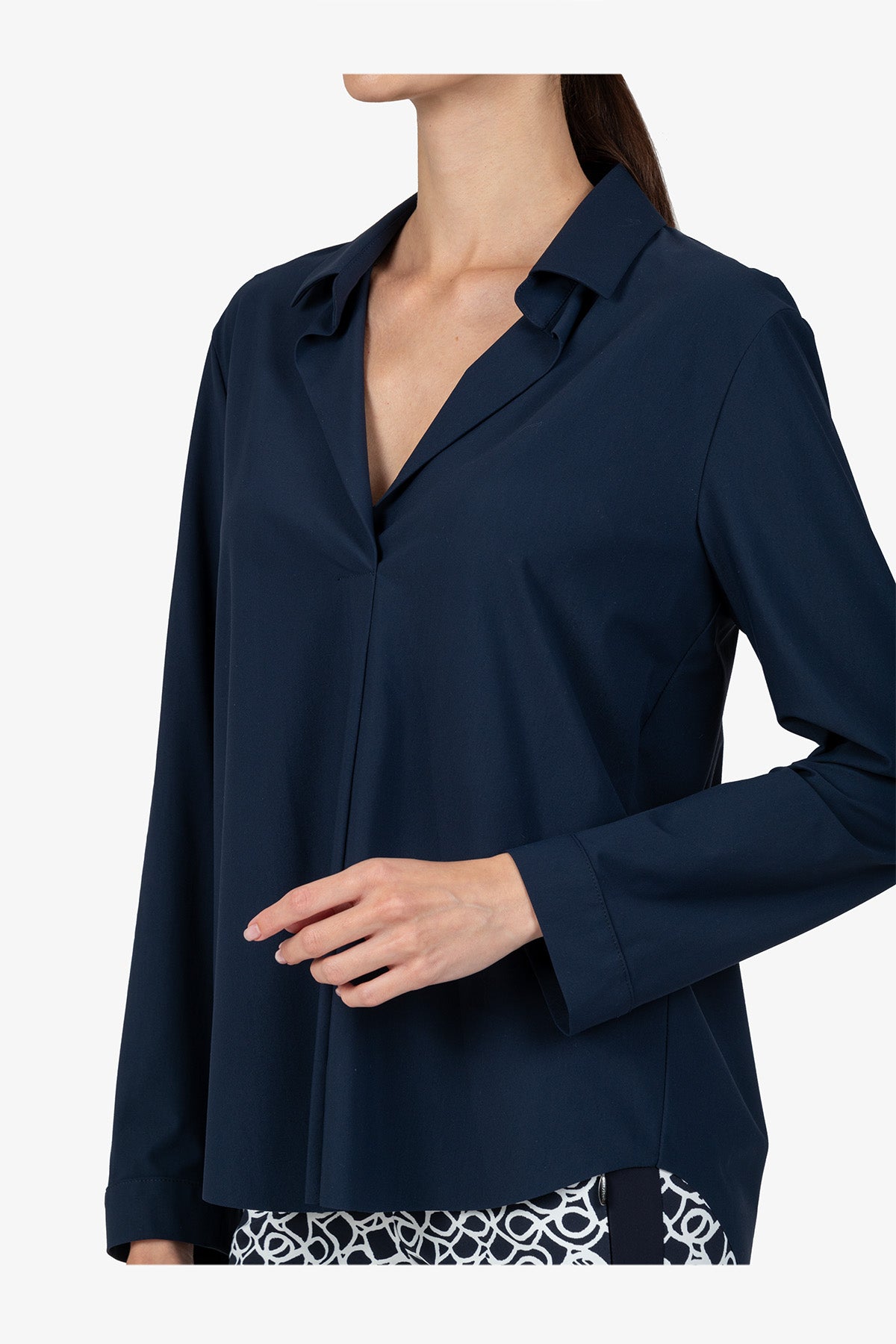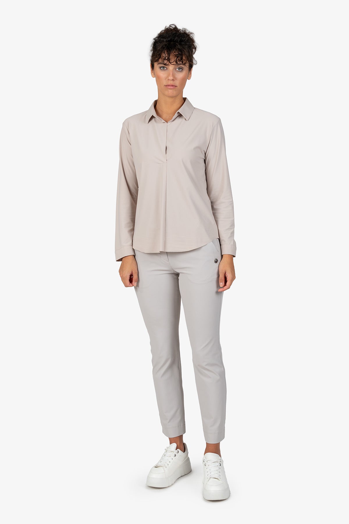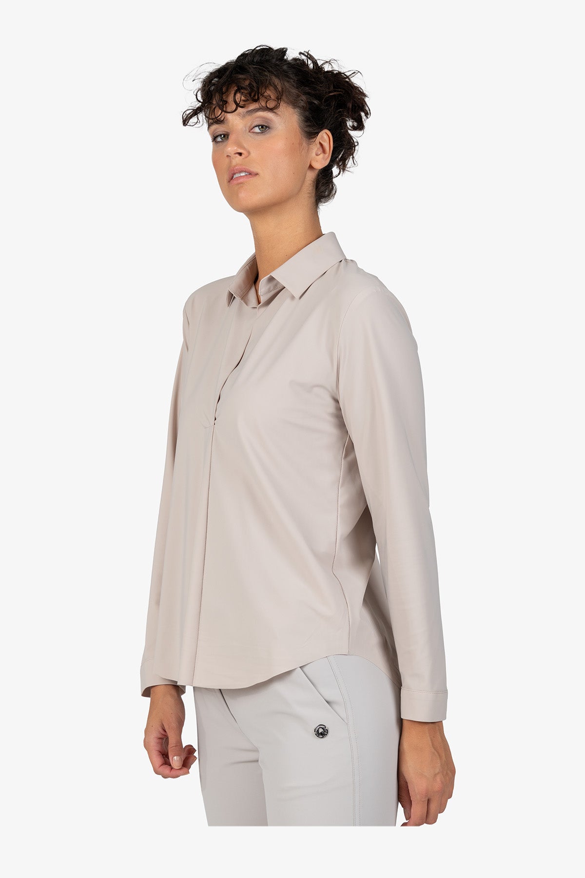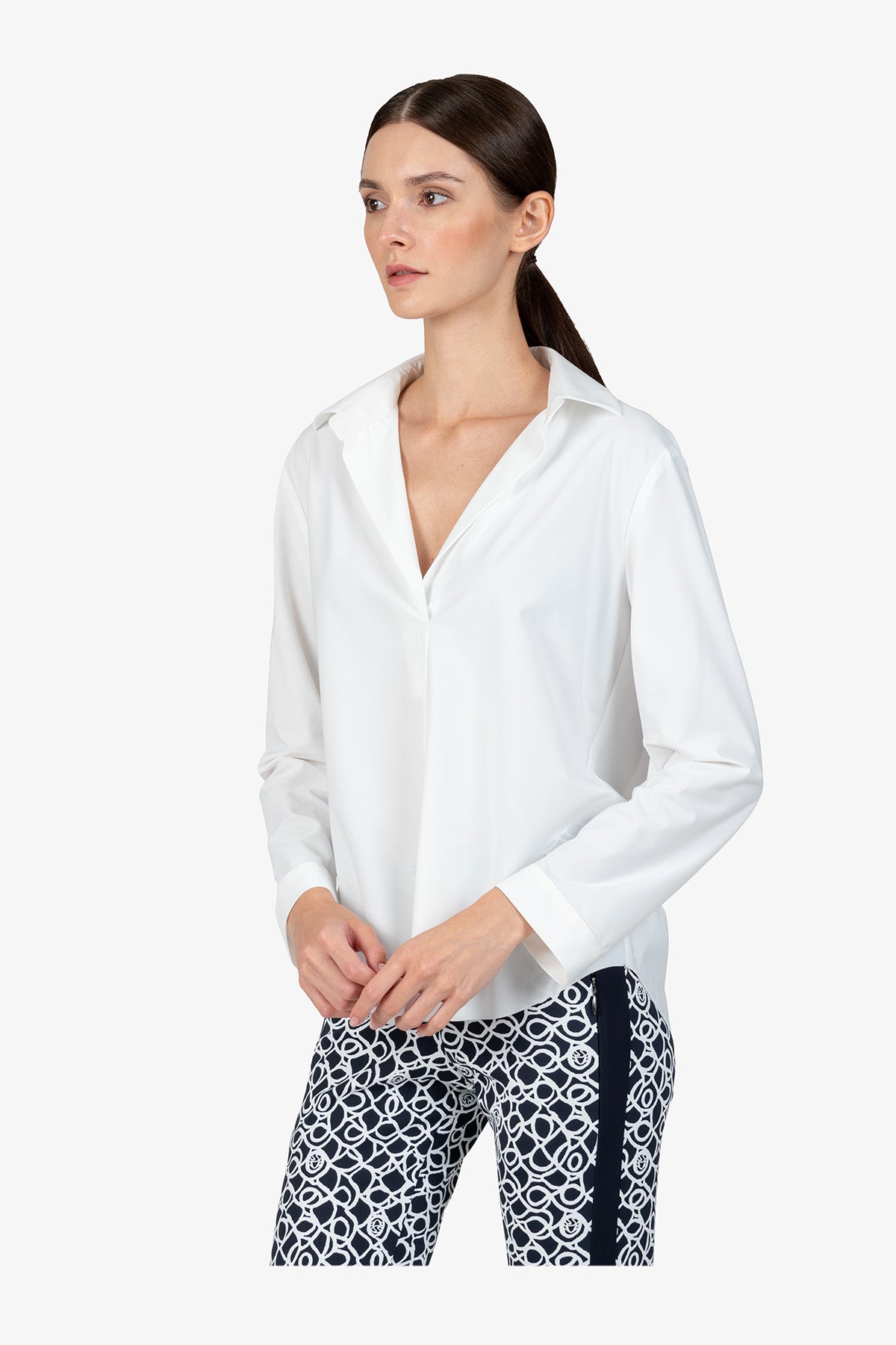 这款百搭长袖衬衫采用精致领口设计,宽松剪裁,让您看起来商务风范。非常适合那些想要在日常办公室或其他场合穿着舒适时尚服装的女性。