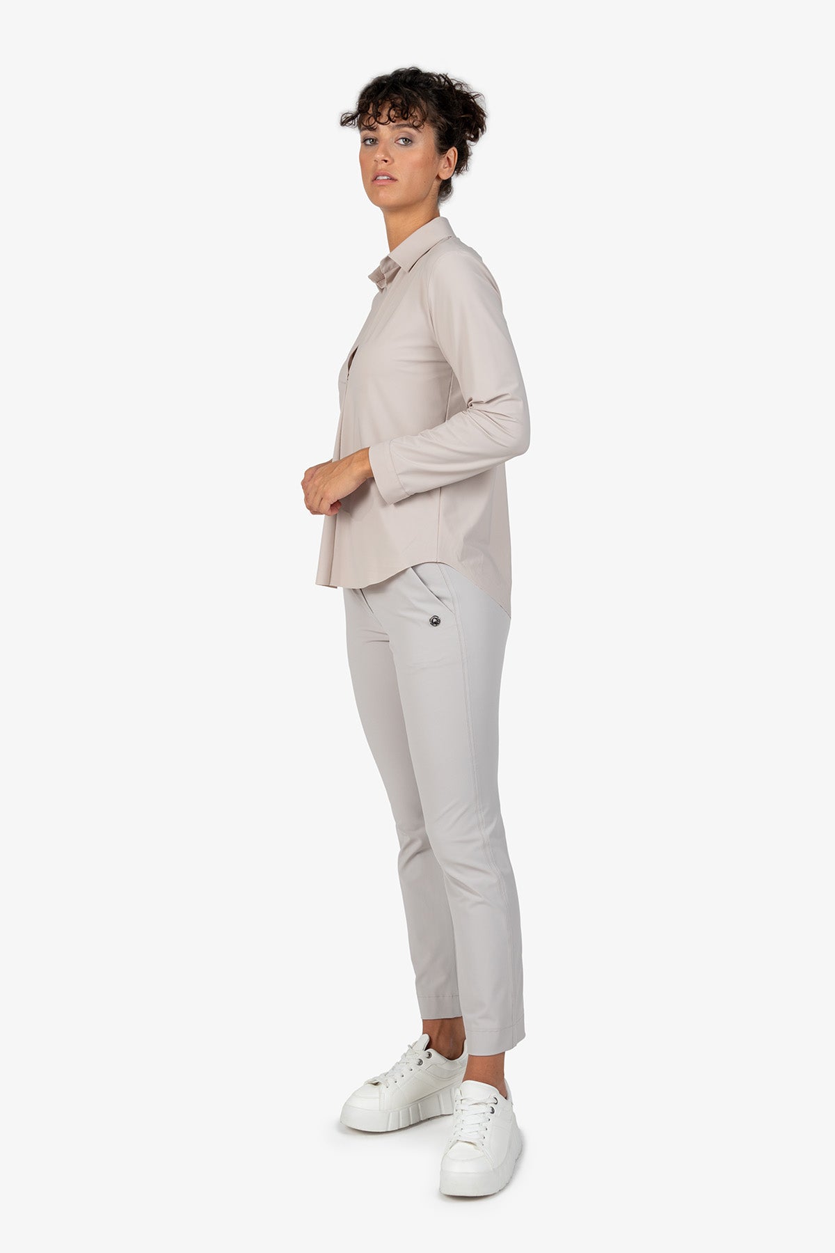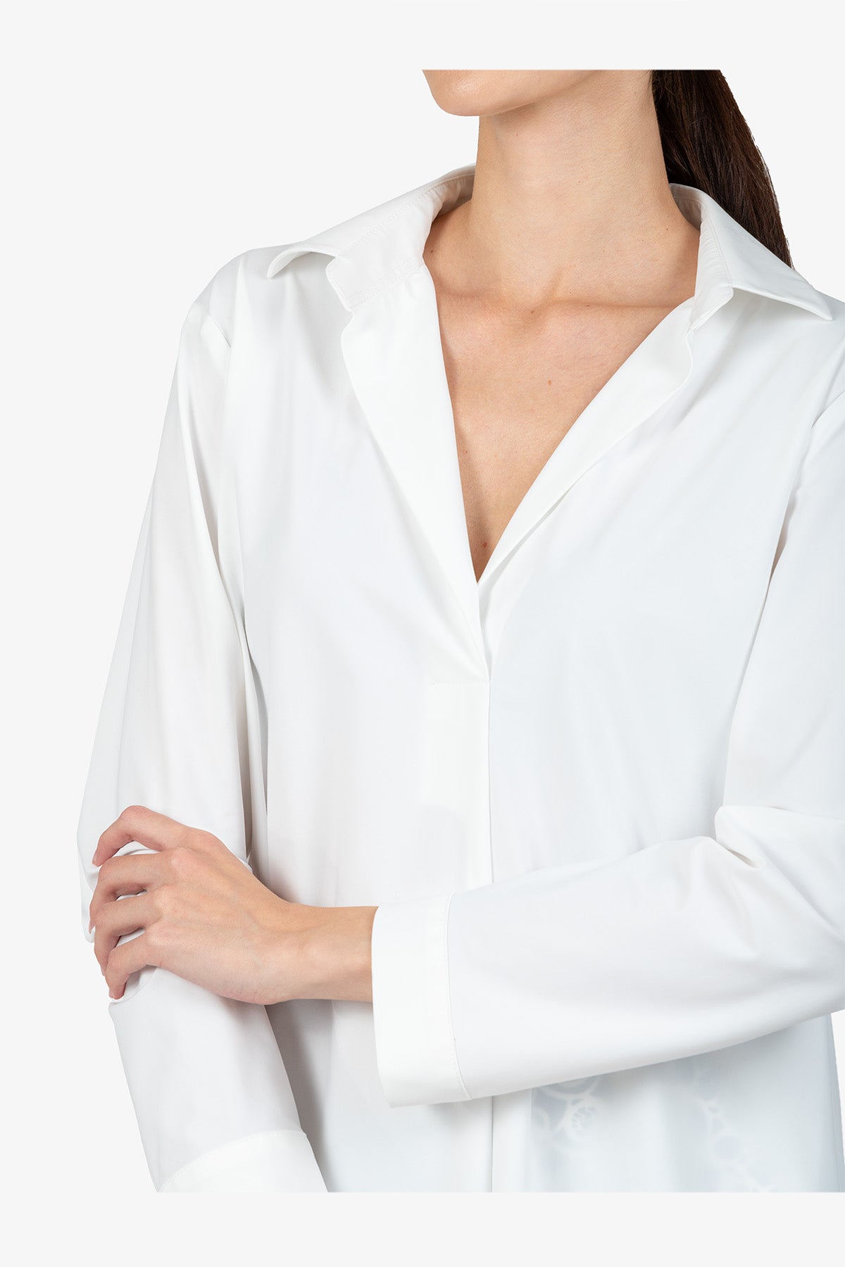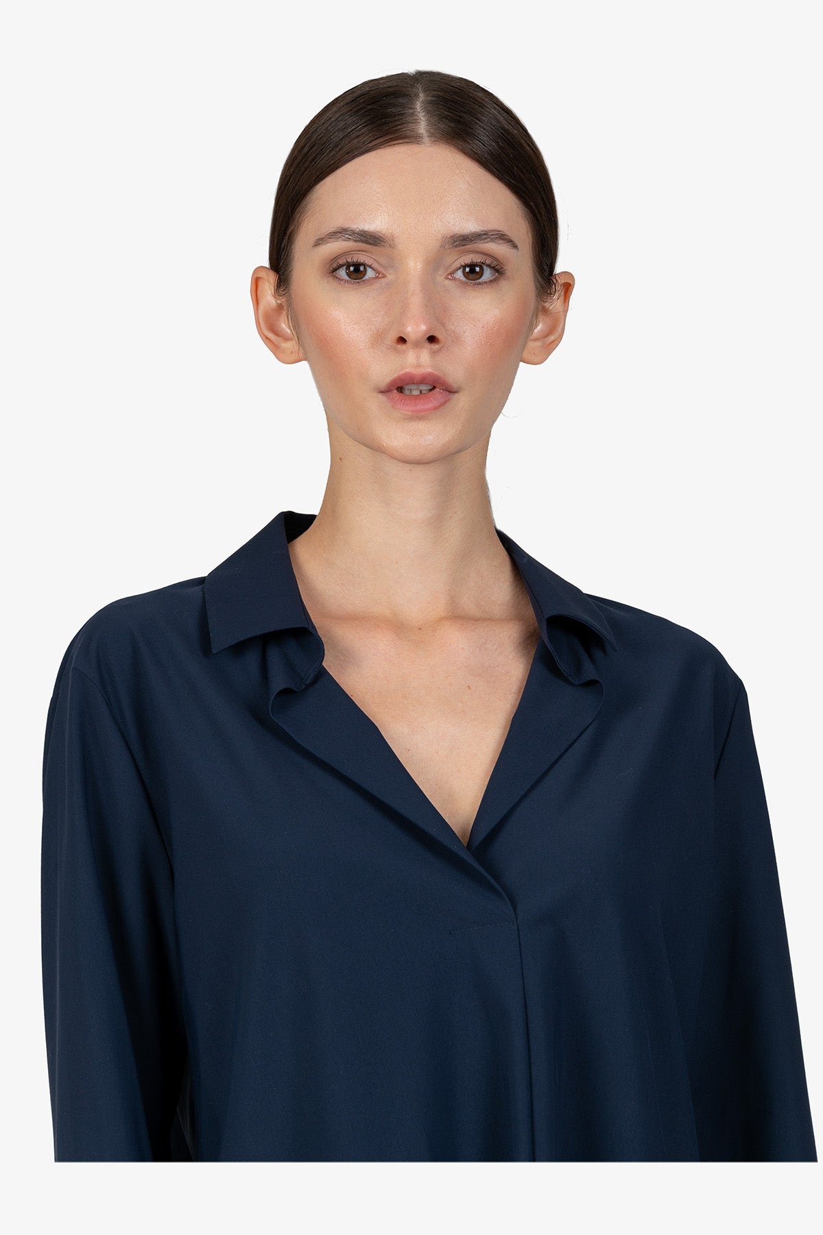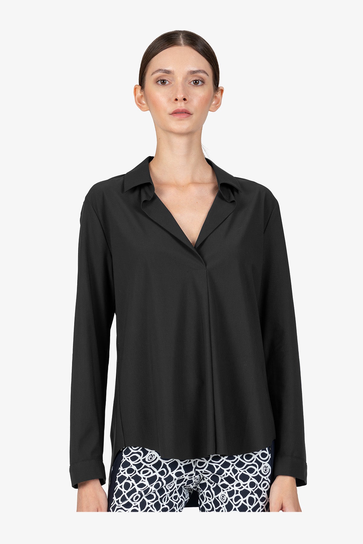这款百搭长袖衬衫采用精致领口设计,宽松剪裁,让您看起来商务风范。非常适合那些想要在日常办公室或其他场合穿着舒适时尚服装的女性。