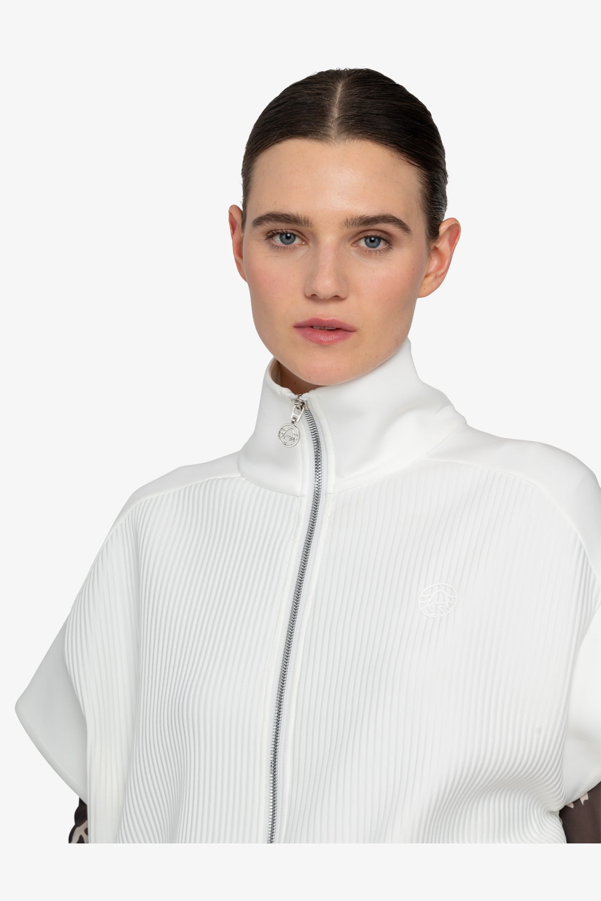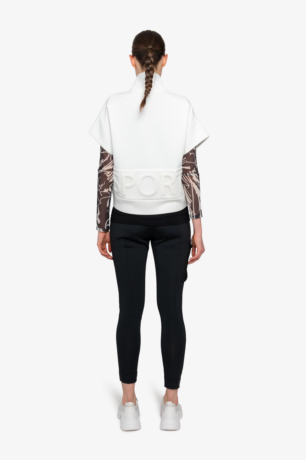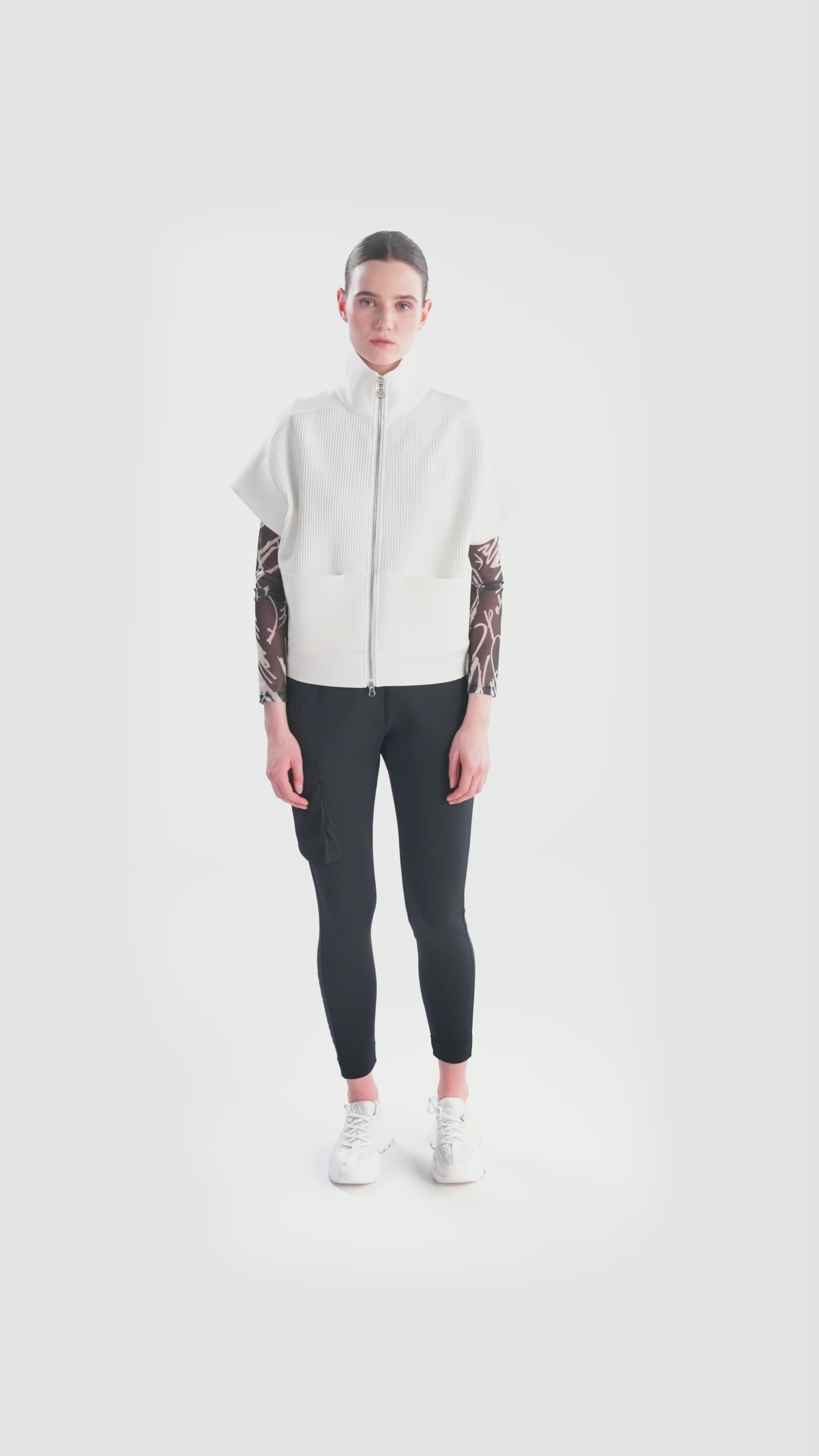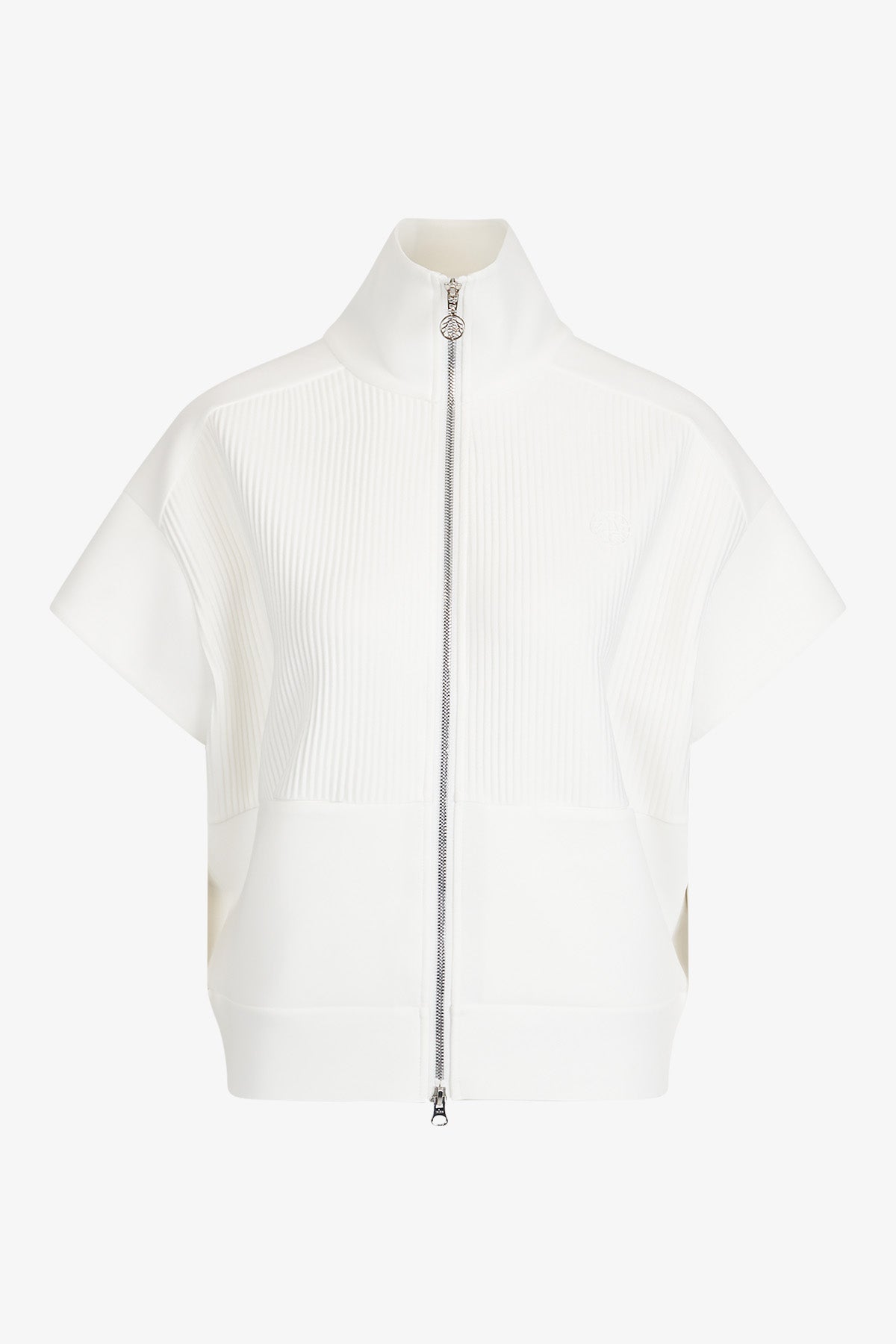 前部采用褶皱纹理针织面料,为背心增添了精致感。前部印有 3D 徽标,后部下摆饰有浮雕图案,为背心增添了醒目的亮点,使背心真正引人注目。