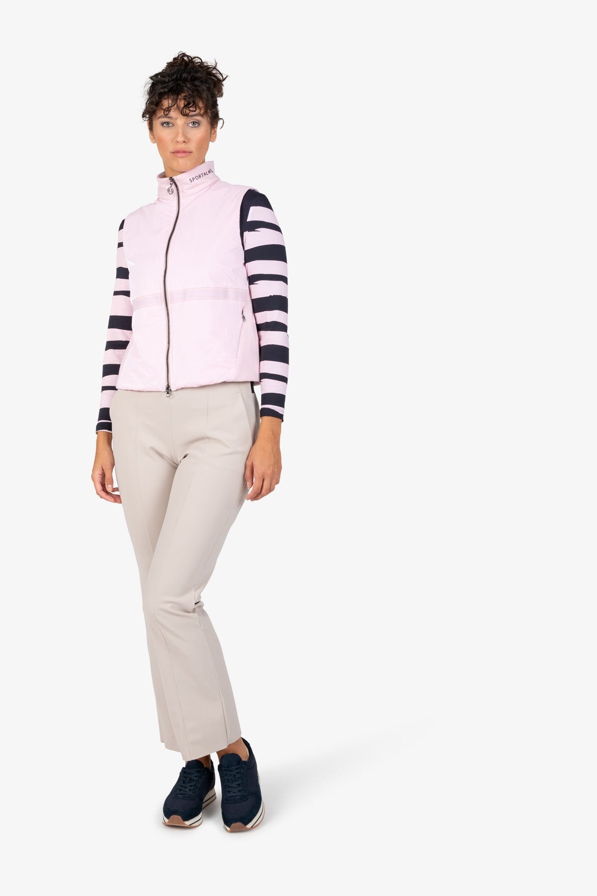 这款薄衬垫立领背心是高尔夫球场凉爽天气的必备单品。实用又时尚,是女性高尔夫球手的必备单品。