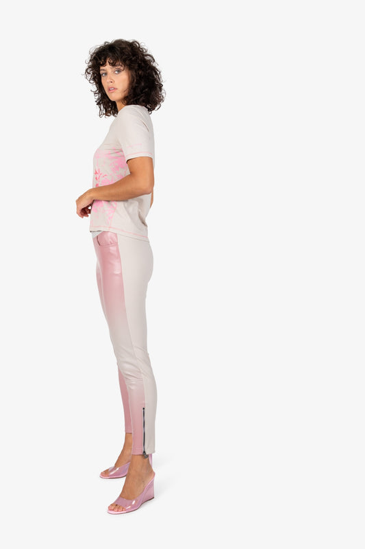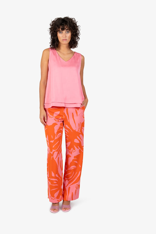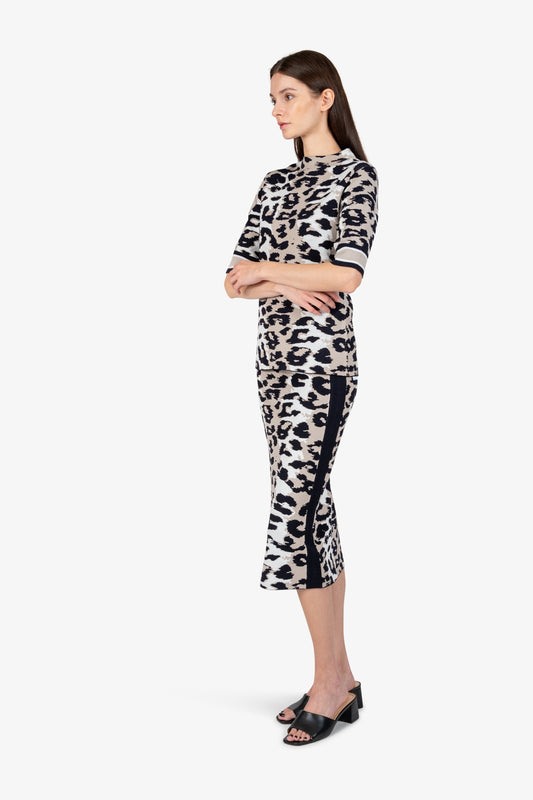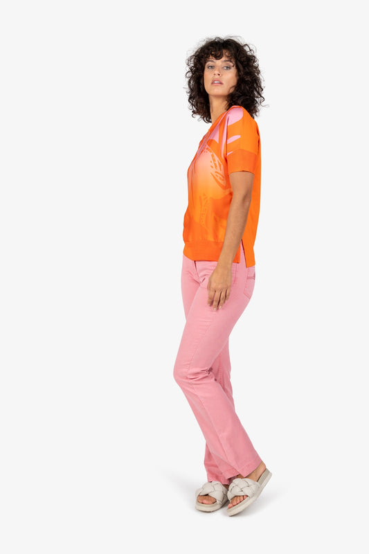 貼布繡+亮片裝飾叢林印花V領短袖T恤