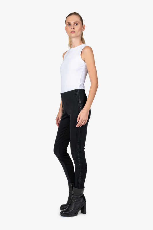 售罄鬆緊腰拉鏈裝飾修身長褲