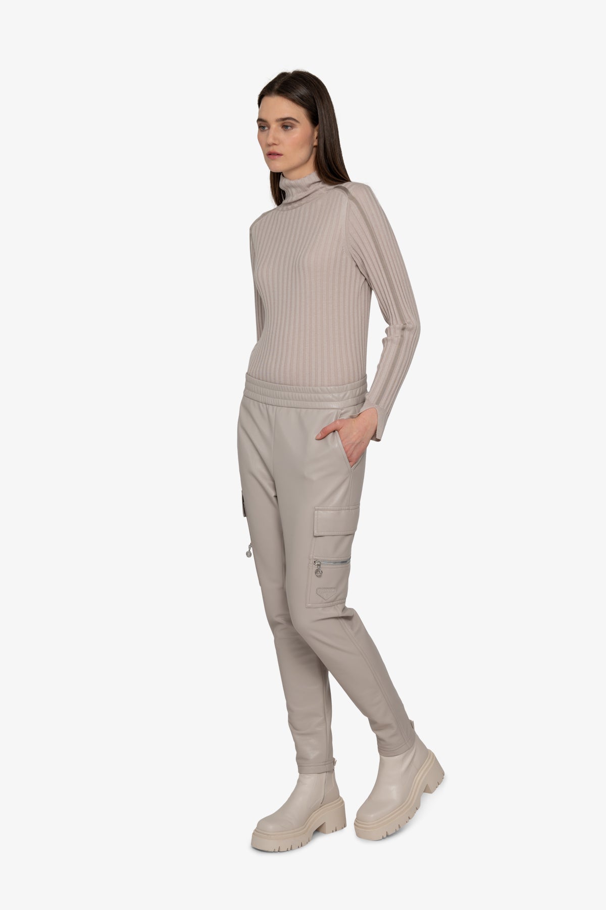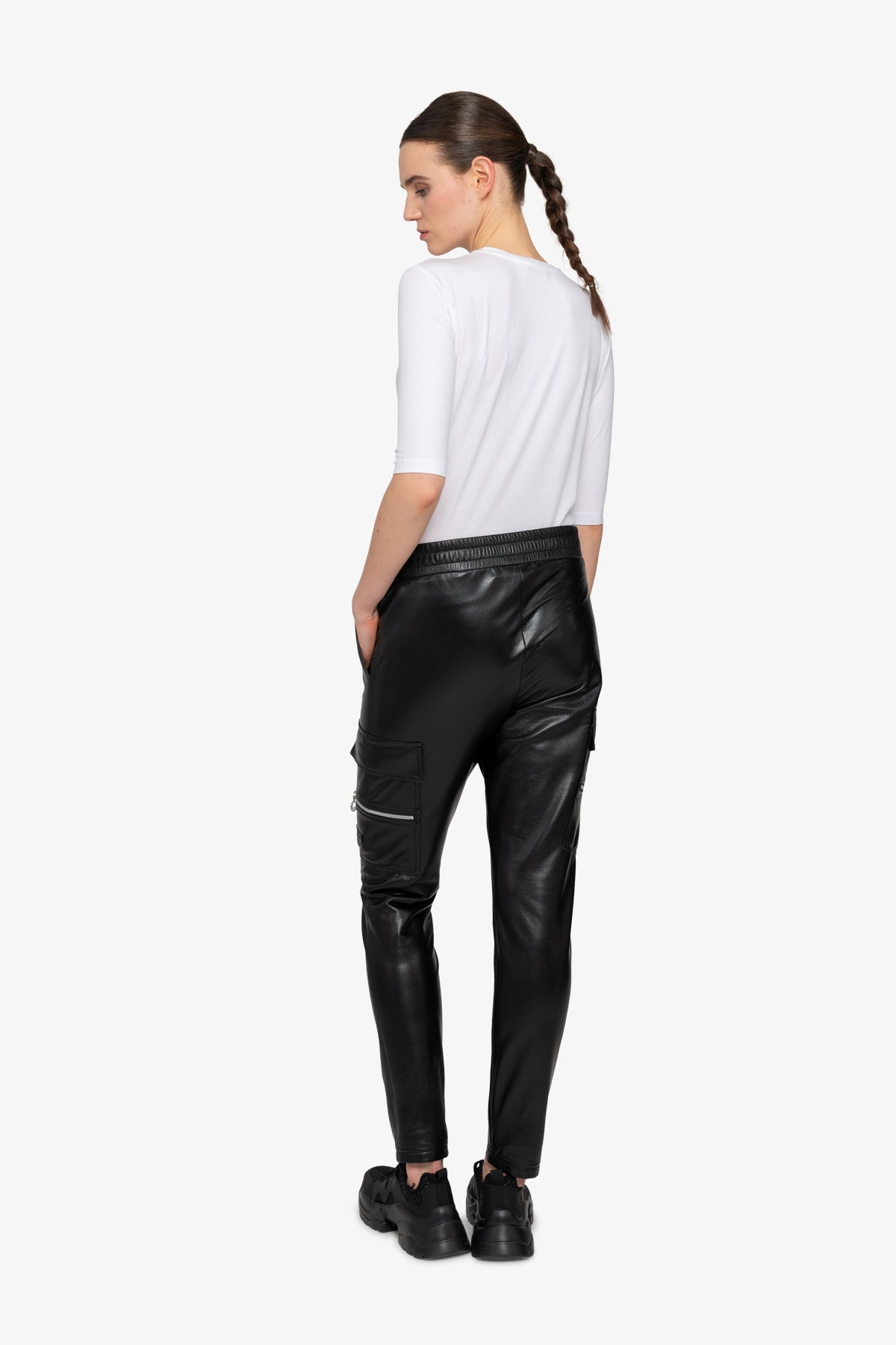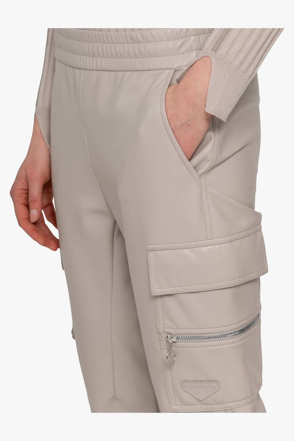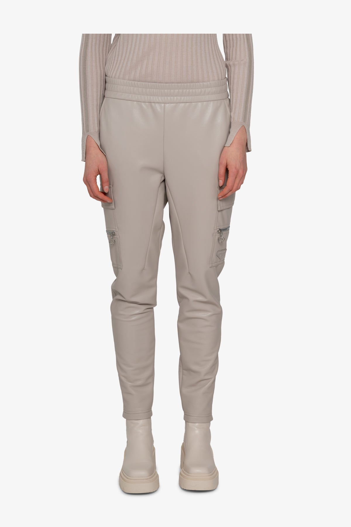 我們的時尚運動機車褲將時尚慢跑風格與柔軟仿皮的精緻感相結合。側縫處有拉鍊細節的拼貼口袋,臀部有側開袋,賦予褲子休閒實用的外觀。