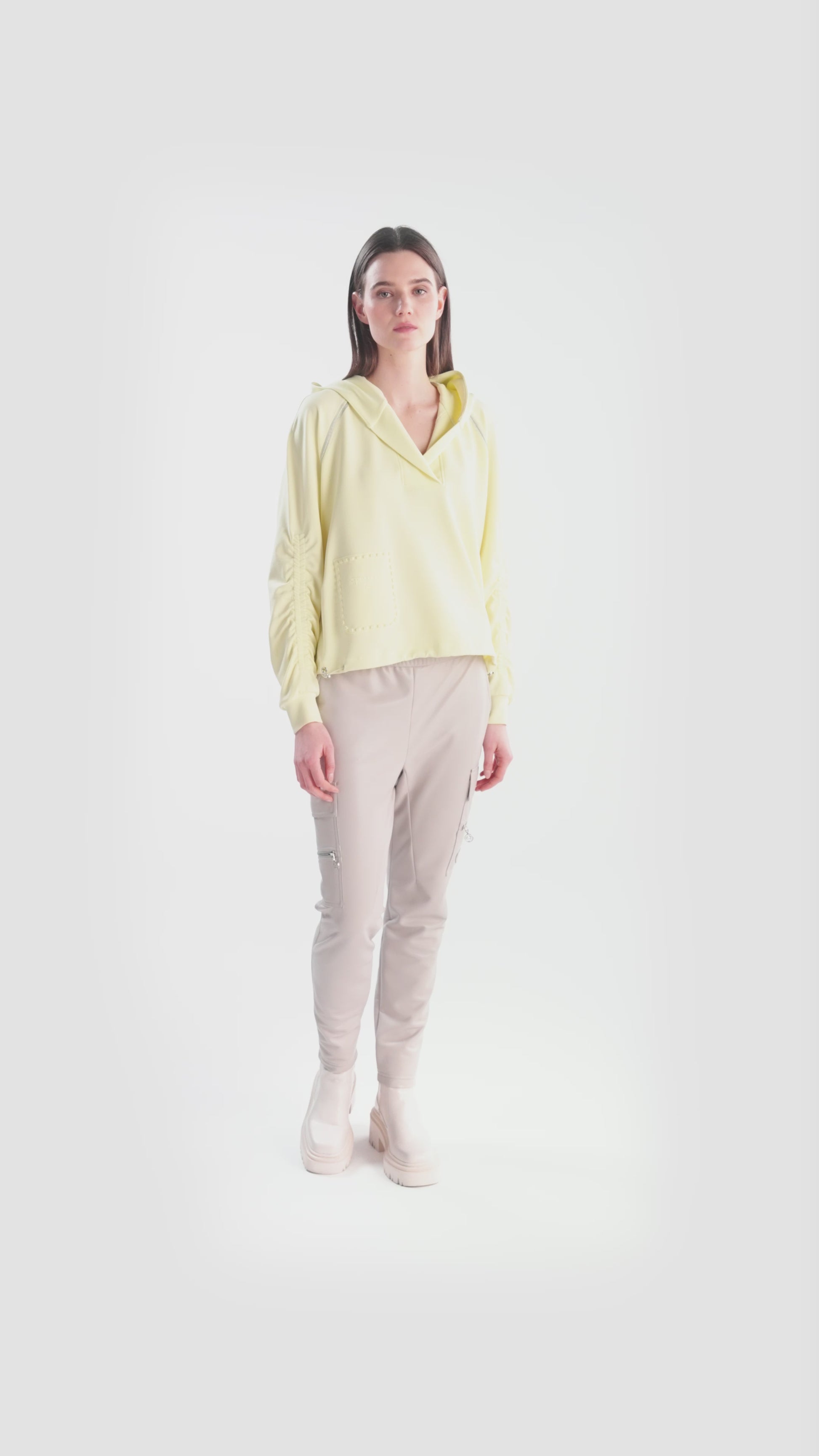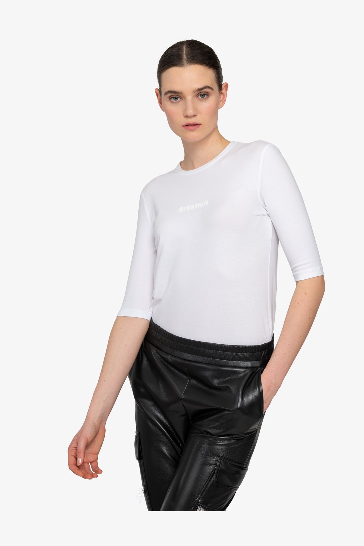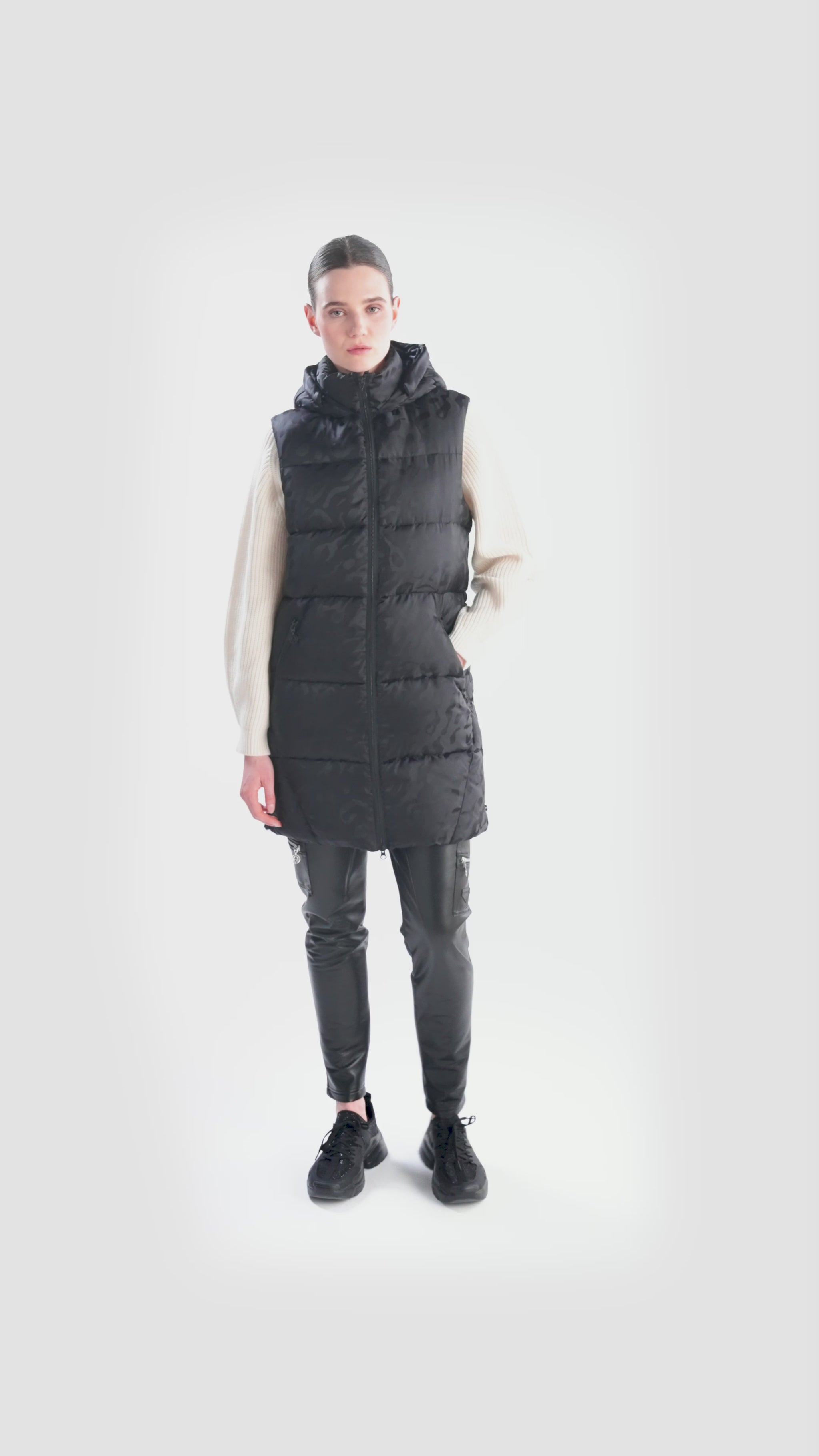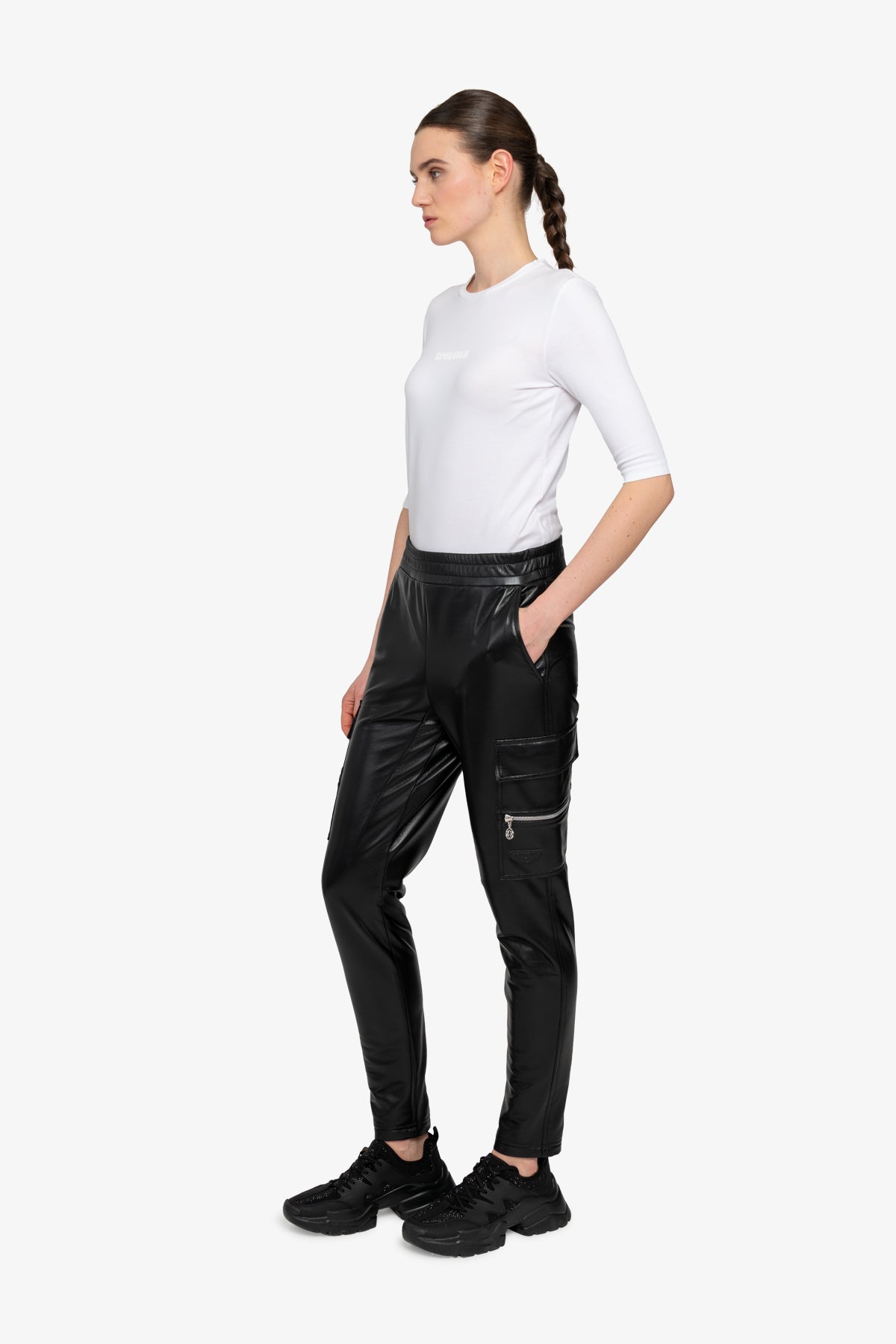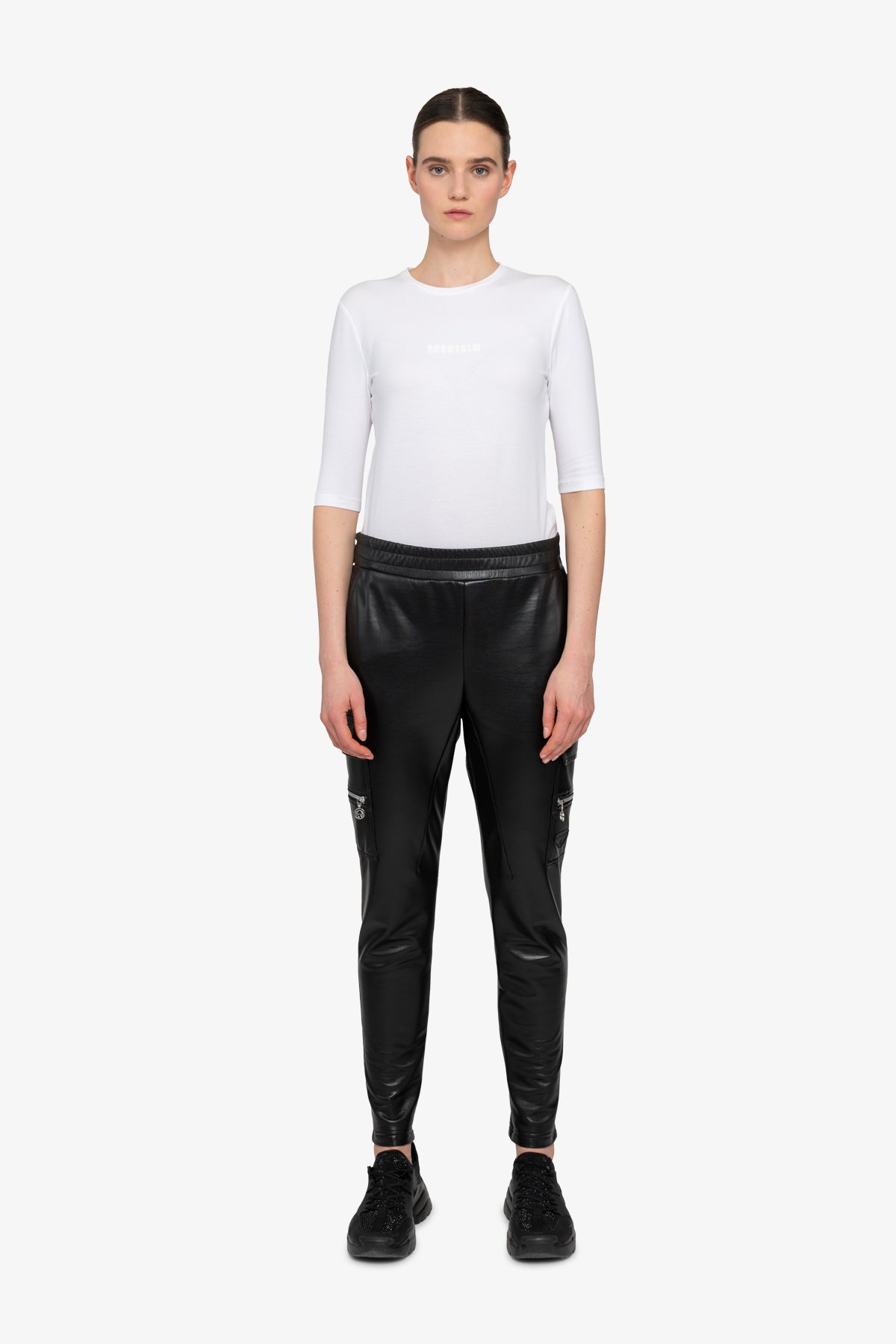 我們的時尚運動機車褲將時尚慢跑風格與柔軟仿皮的精緻感相結合。側縫處有拉鍊細節的拼貼口袋,臀部有側開袋,賦予褲子休閒實用的外觀。