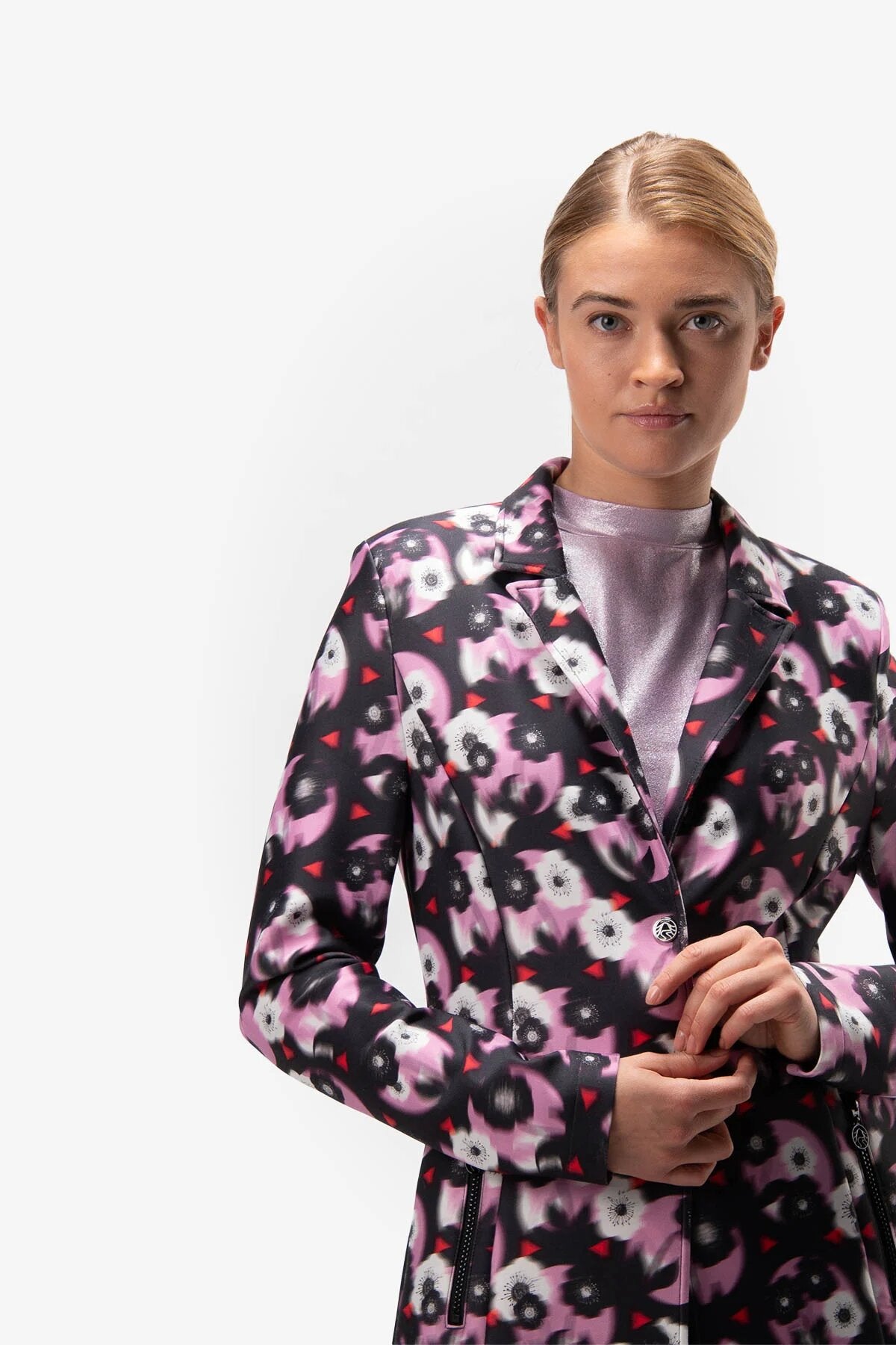 這款時尚的針織西裝外套將運動優雅和城市休閒融合在一起,擁有修身的剪裁和肩墊。