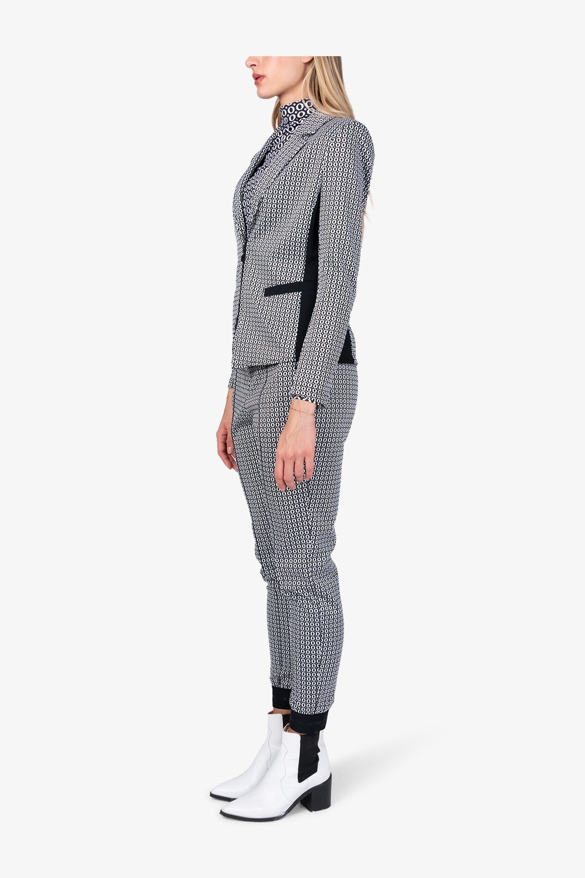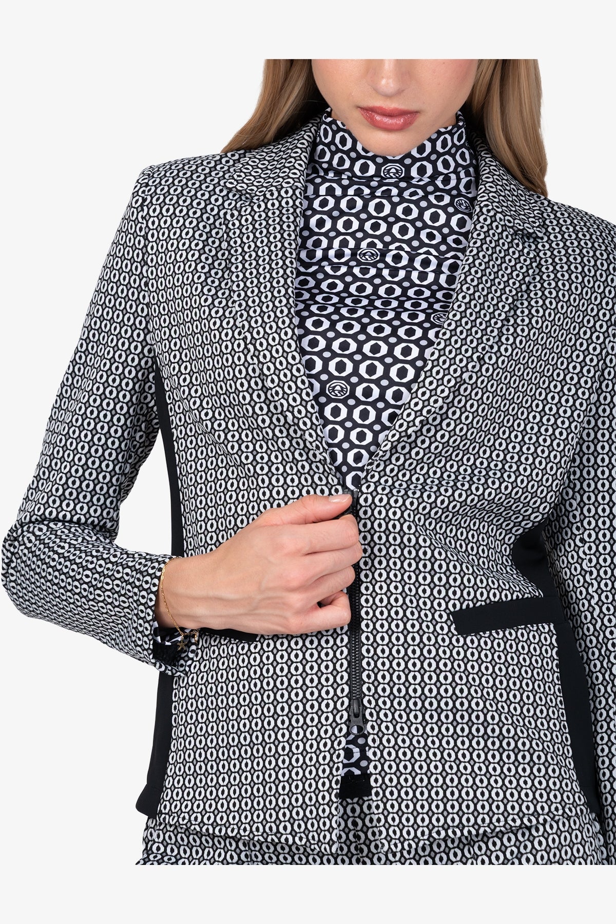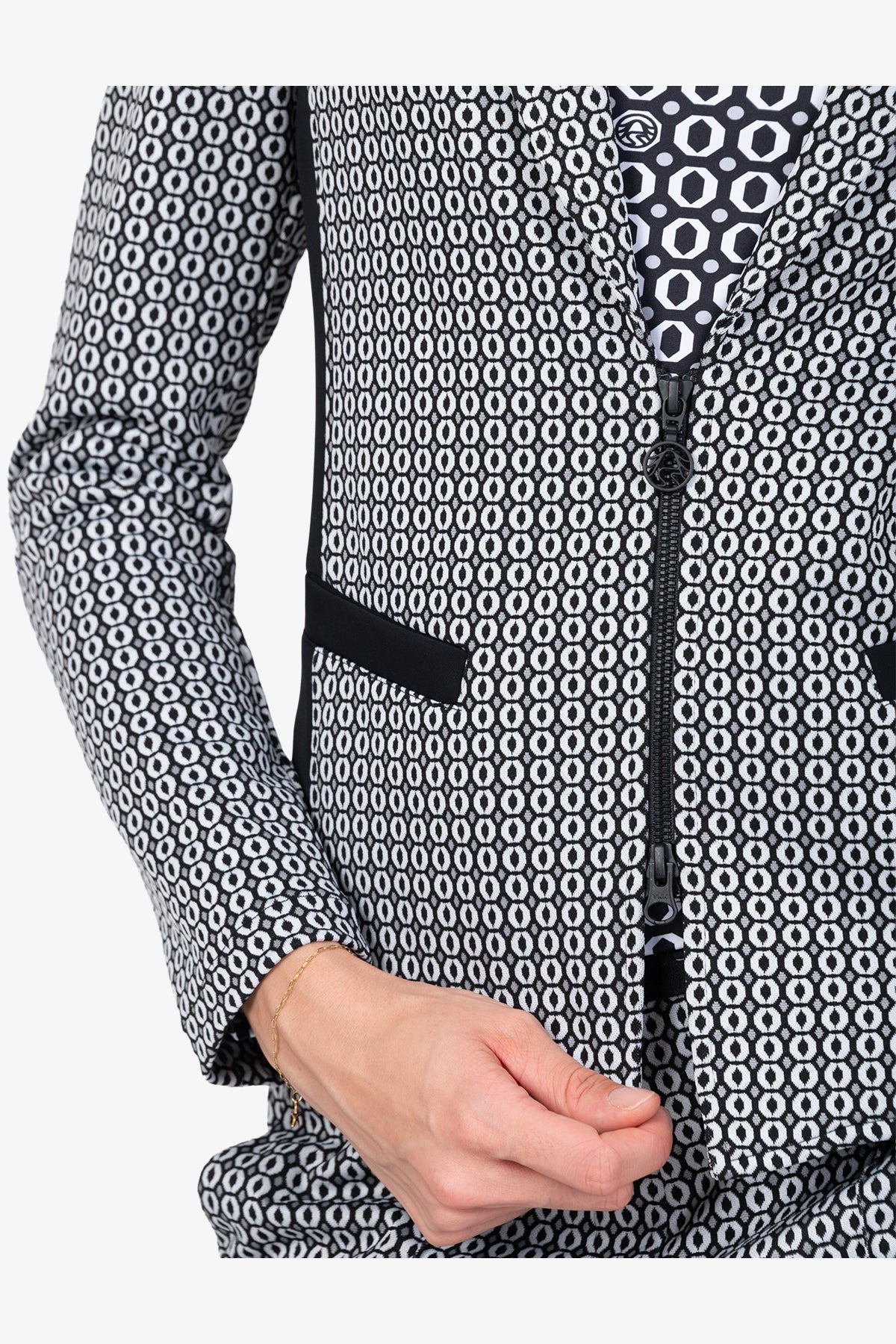 提花翻領拉鏈西裝外套