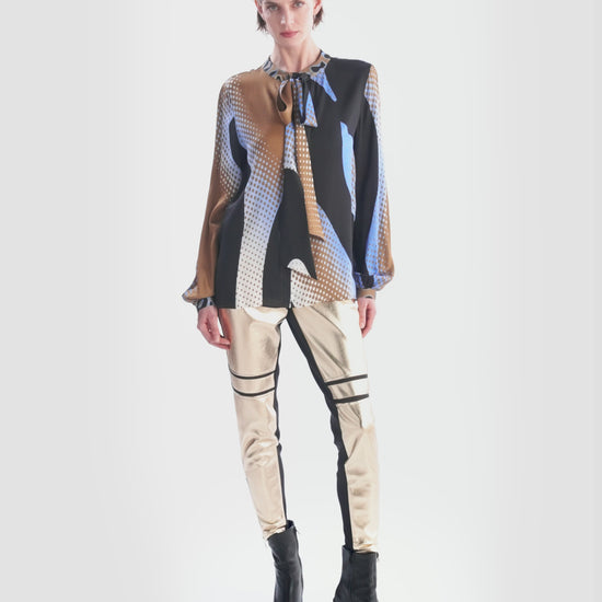 系帶領混合豹紋印花襯衣