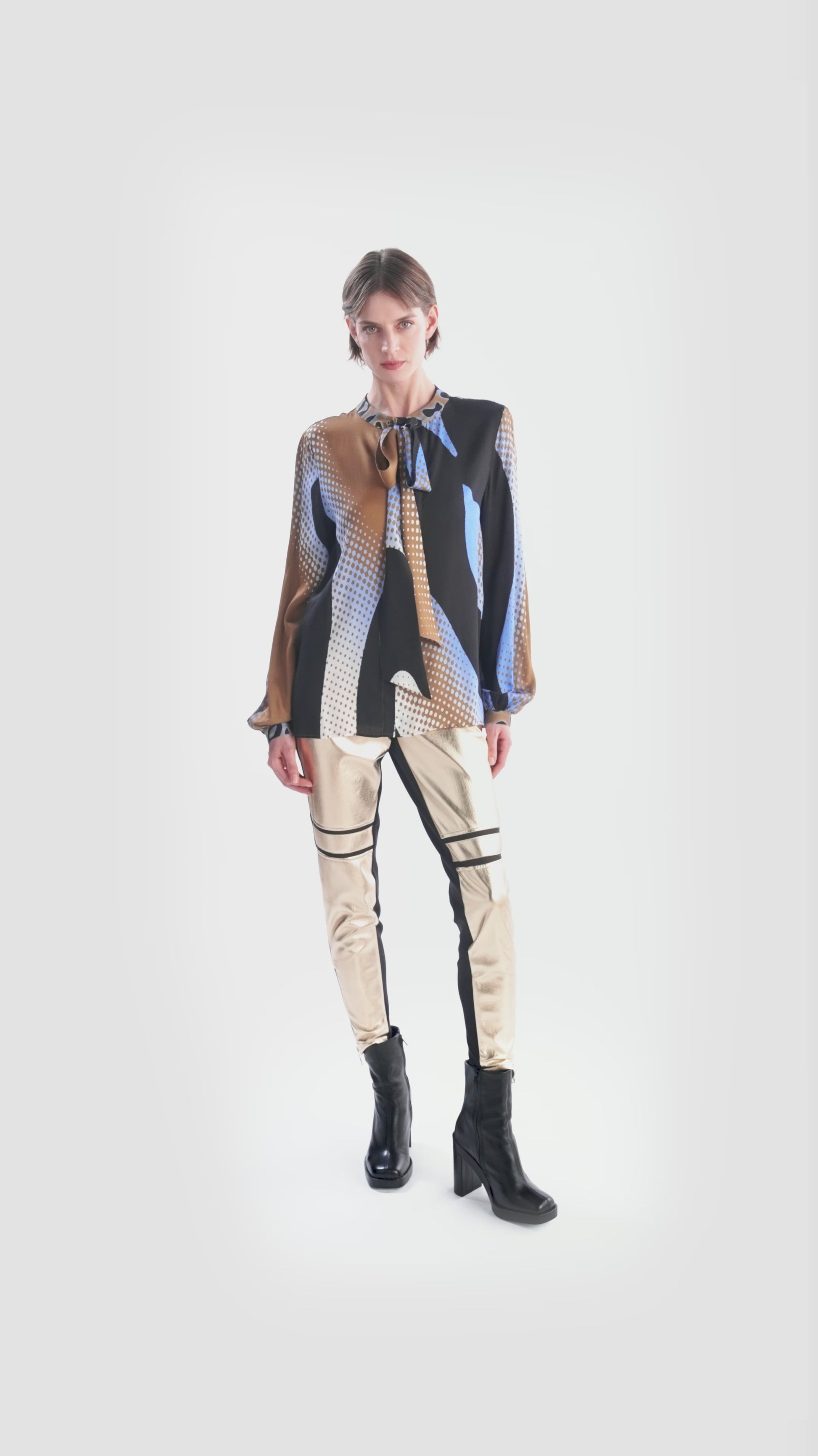 這款休閒剪裁的蝴蝶結襯衫採用直筒剪裁,配有蝴蝶結,可以繫起來,也可以寬鬆地垂下來,打造休閒造型。大號豹紋印花為襯衫帶來現代感,而衣領和袖子下擺則與迷你豹紋圖案形成鮮明對比,增添了特別的細節。