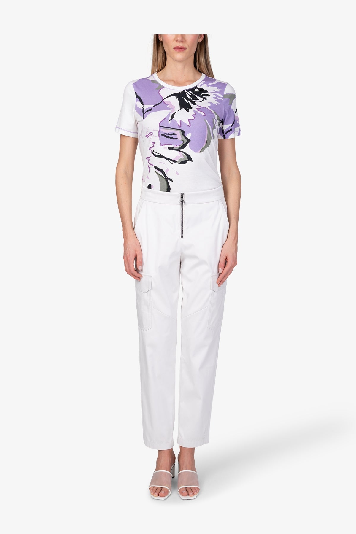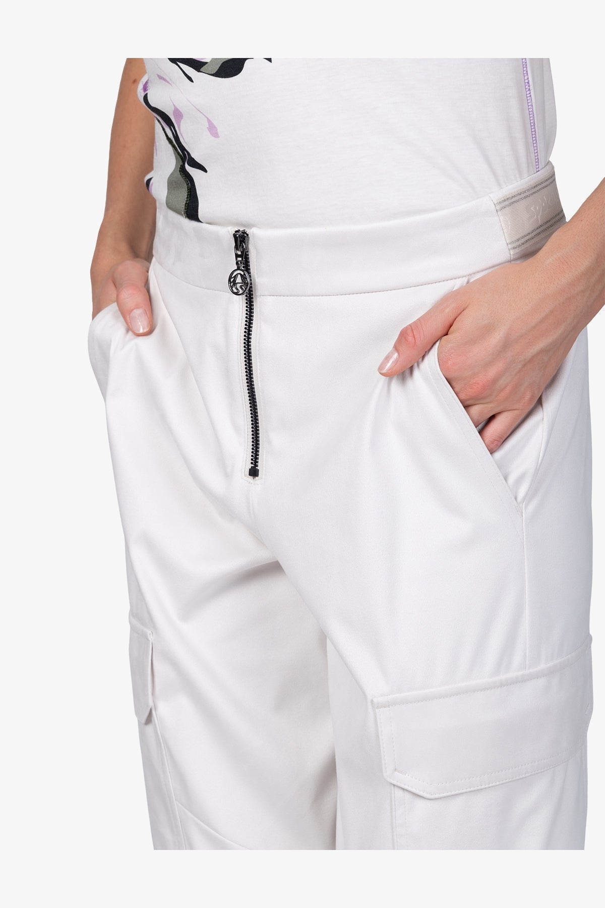 拉鏈腰翻蓋大口袋修身長褲