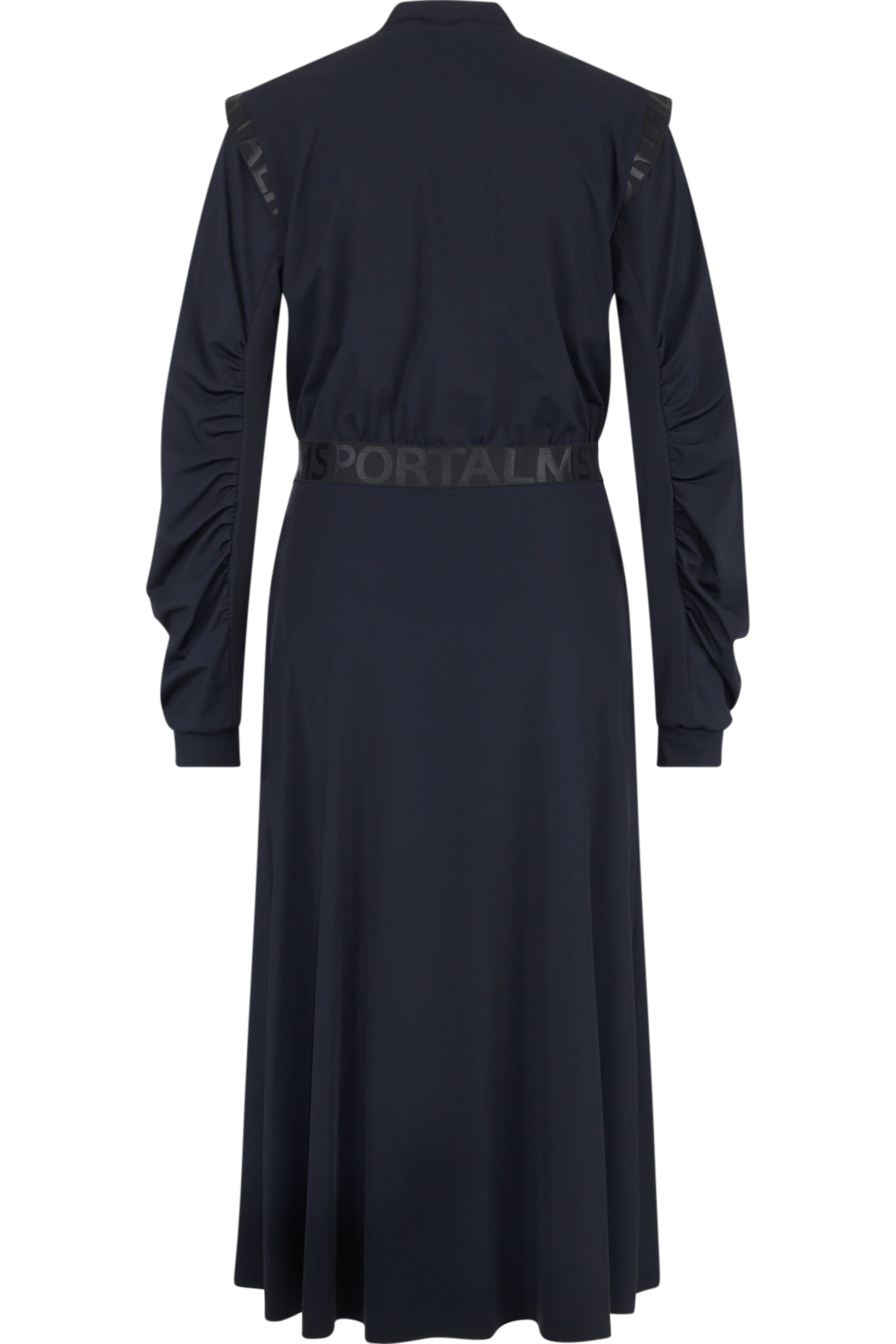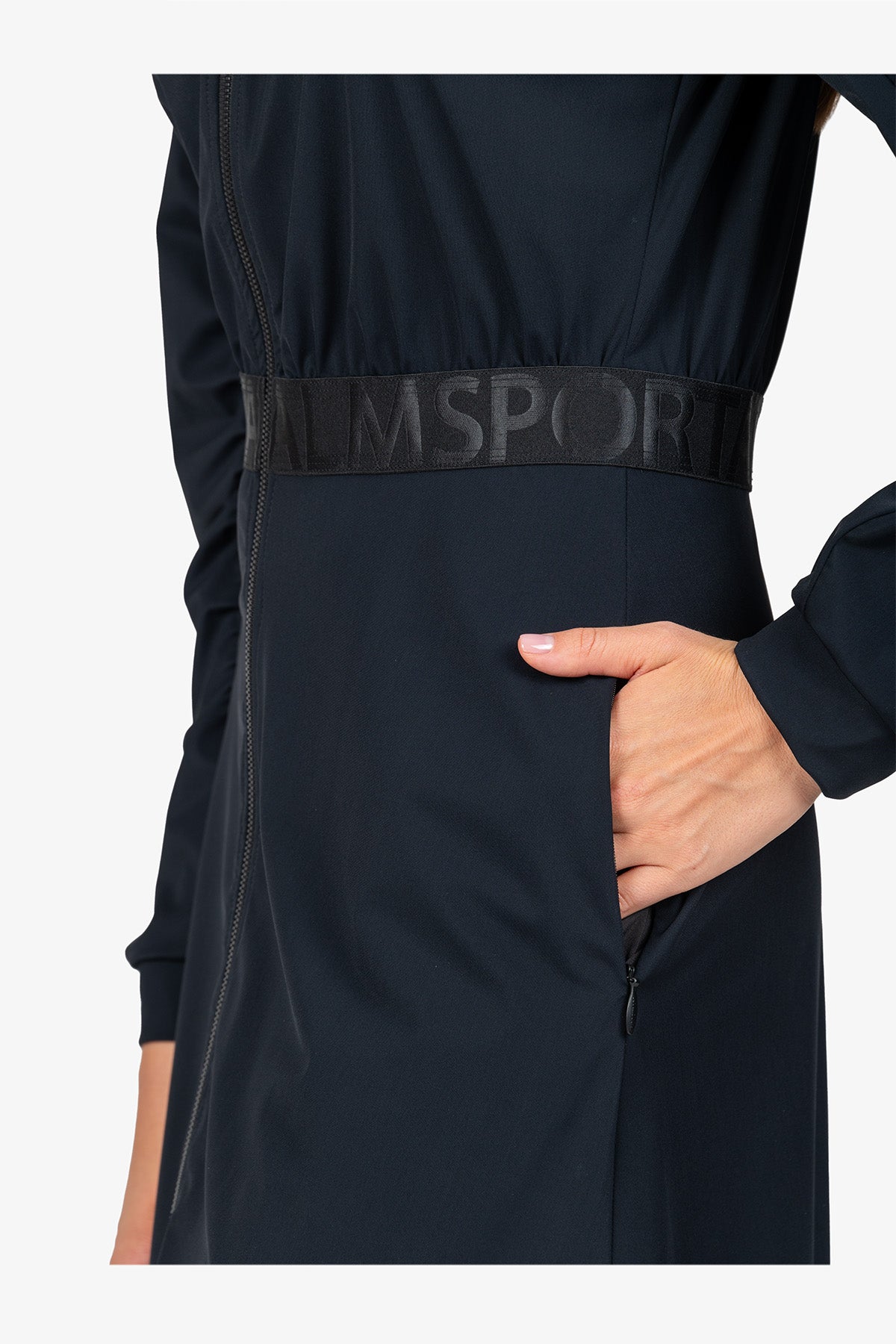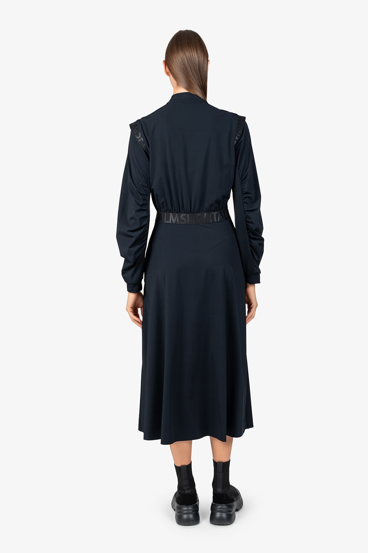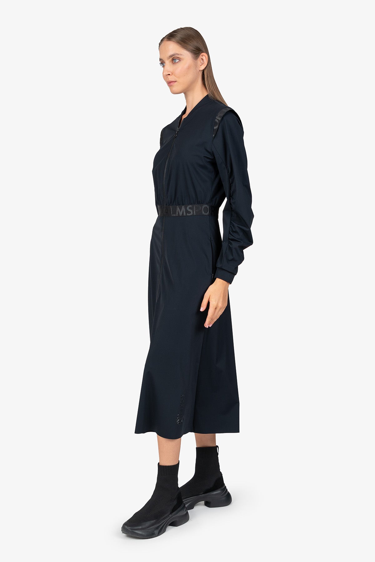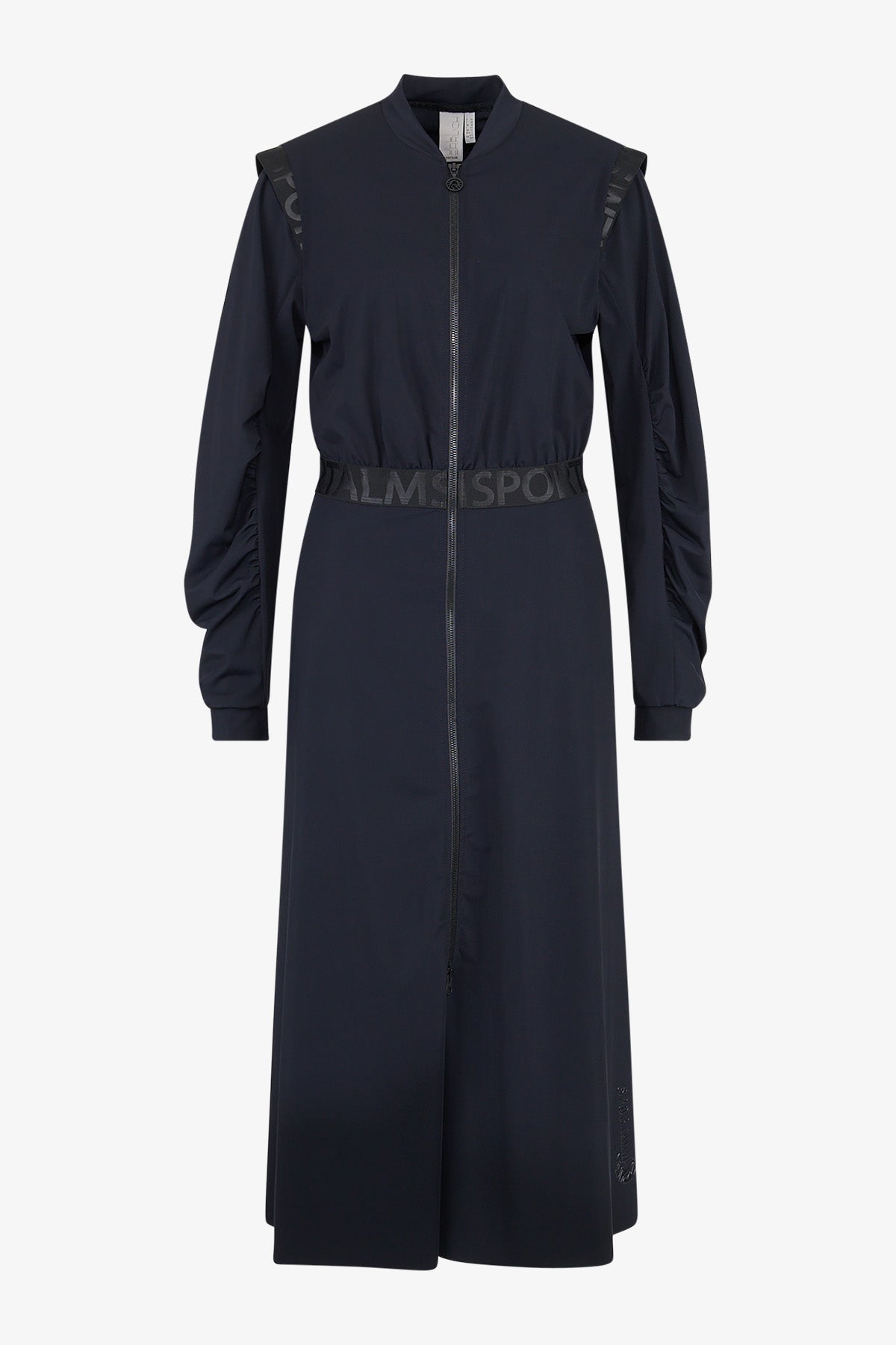 這款奢華外套洋裝採用寬大袖子、腰部鬆緊帶、正面中央開衩、下擺毛邊效果,非常引人注目。其獨特的設計和特殊的剪裁使其成為特殊場合的引人注目的單品。