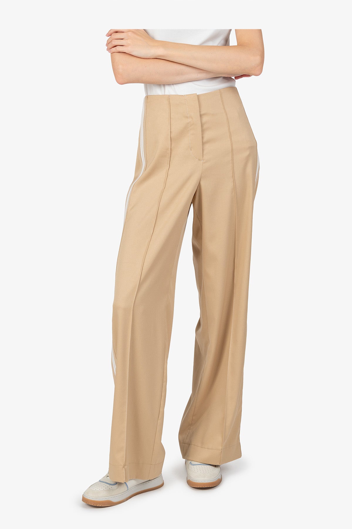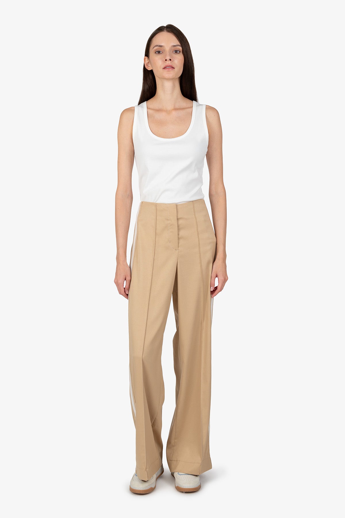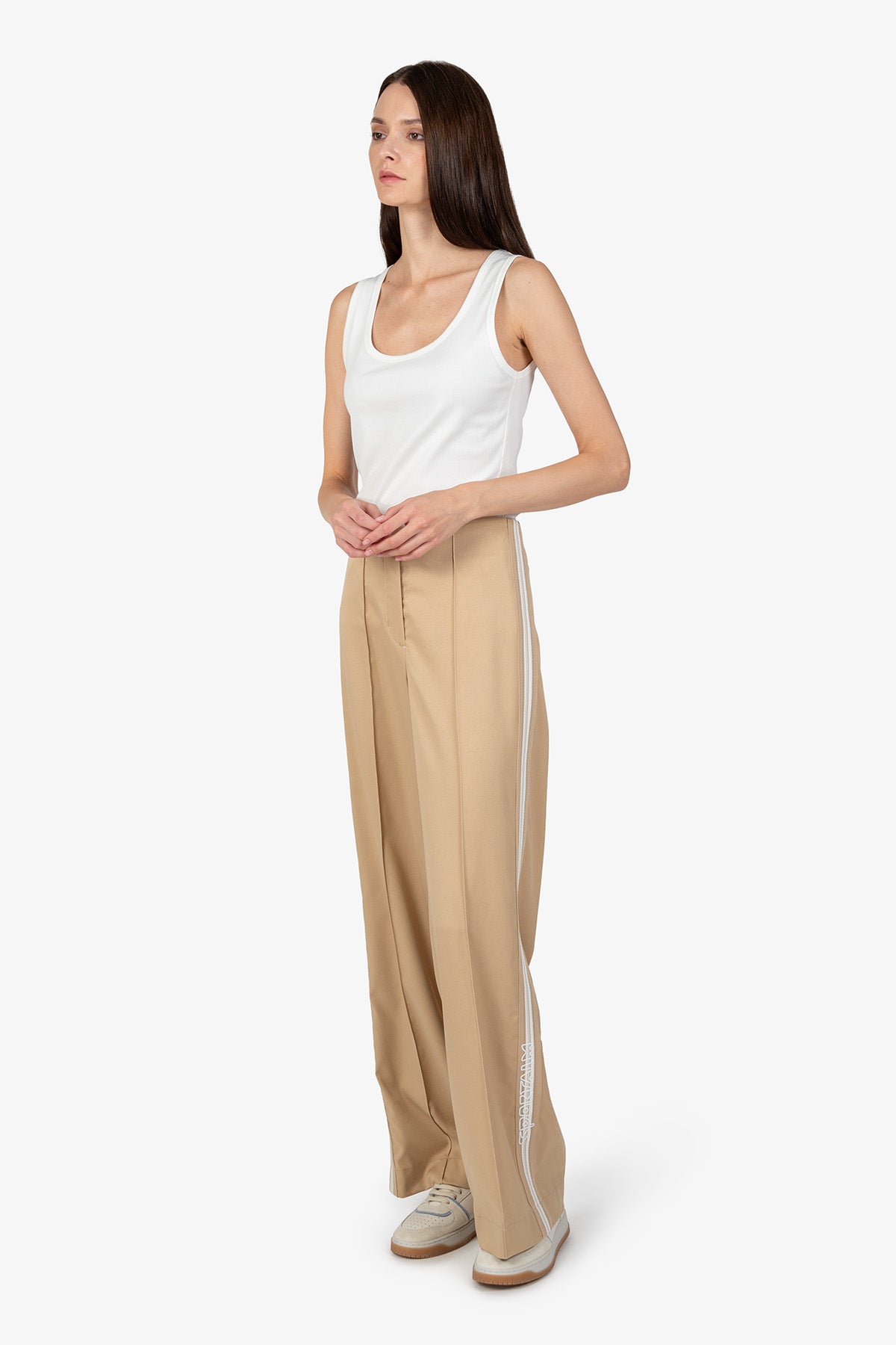 寬鬆長褲,配有針織側邊帶,適合每種女性和身材。這款褲子將舒適性與時尚性融為一體,是百搭服裝的理想選擇。