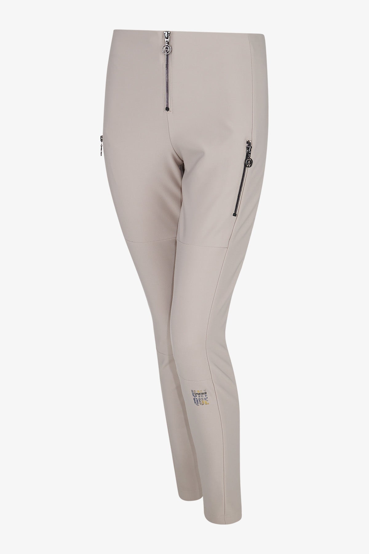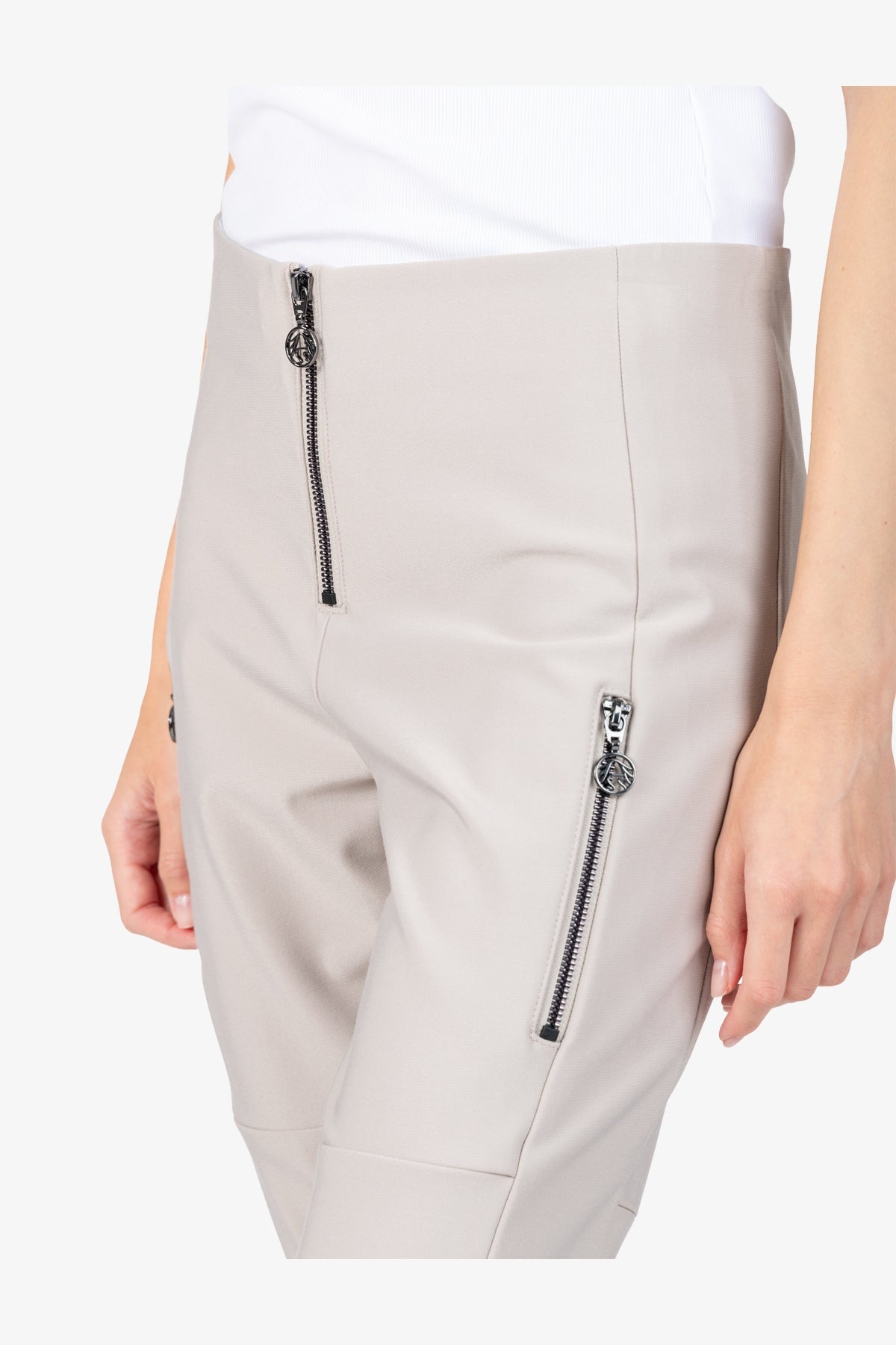 Sportalm 推出高腰修身褲,確保高水準的舒適度。精緻的剪裁讓腿部在視覺上顯得纖細。適合各種場合的時尚舒適的服裝。