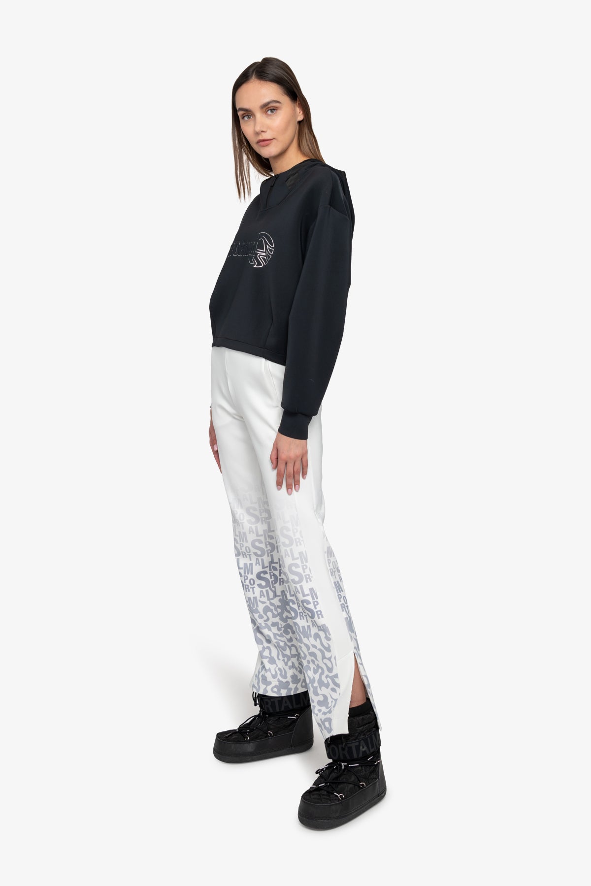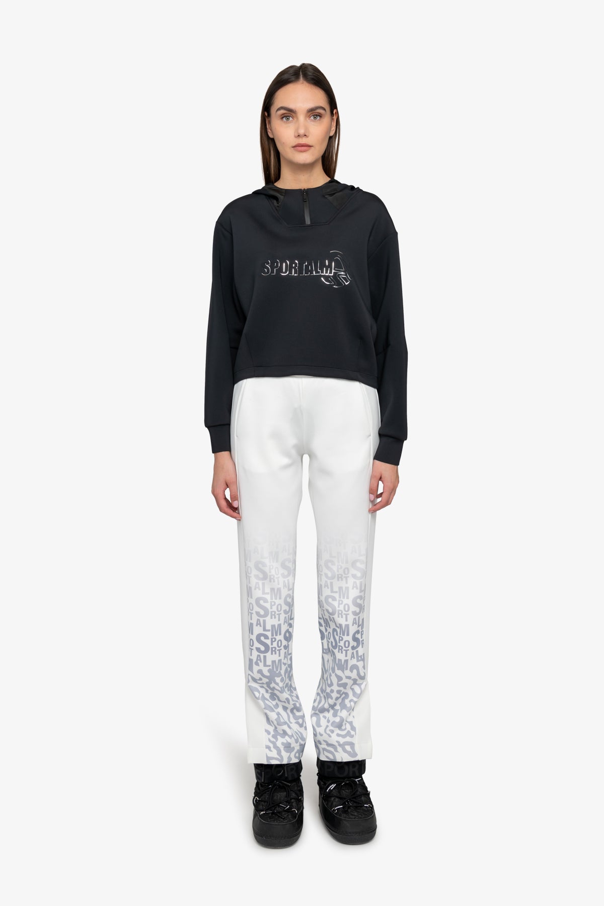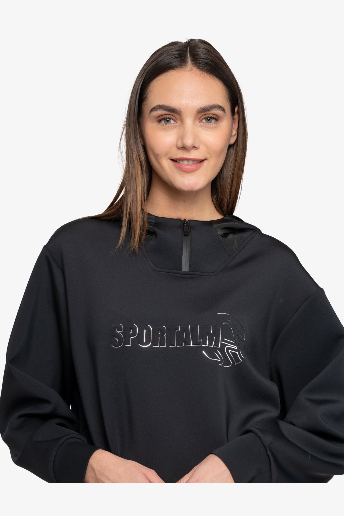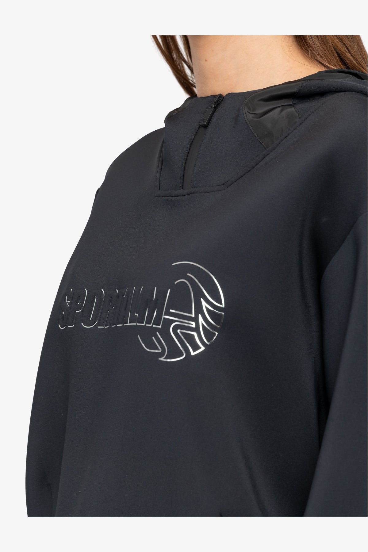這款運動衫採用科技平紋針織布料,正面飾有 Sportalm 3-D 圖案。單品採用落肩設計和帶袖口的長袖,剪裁休閒。