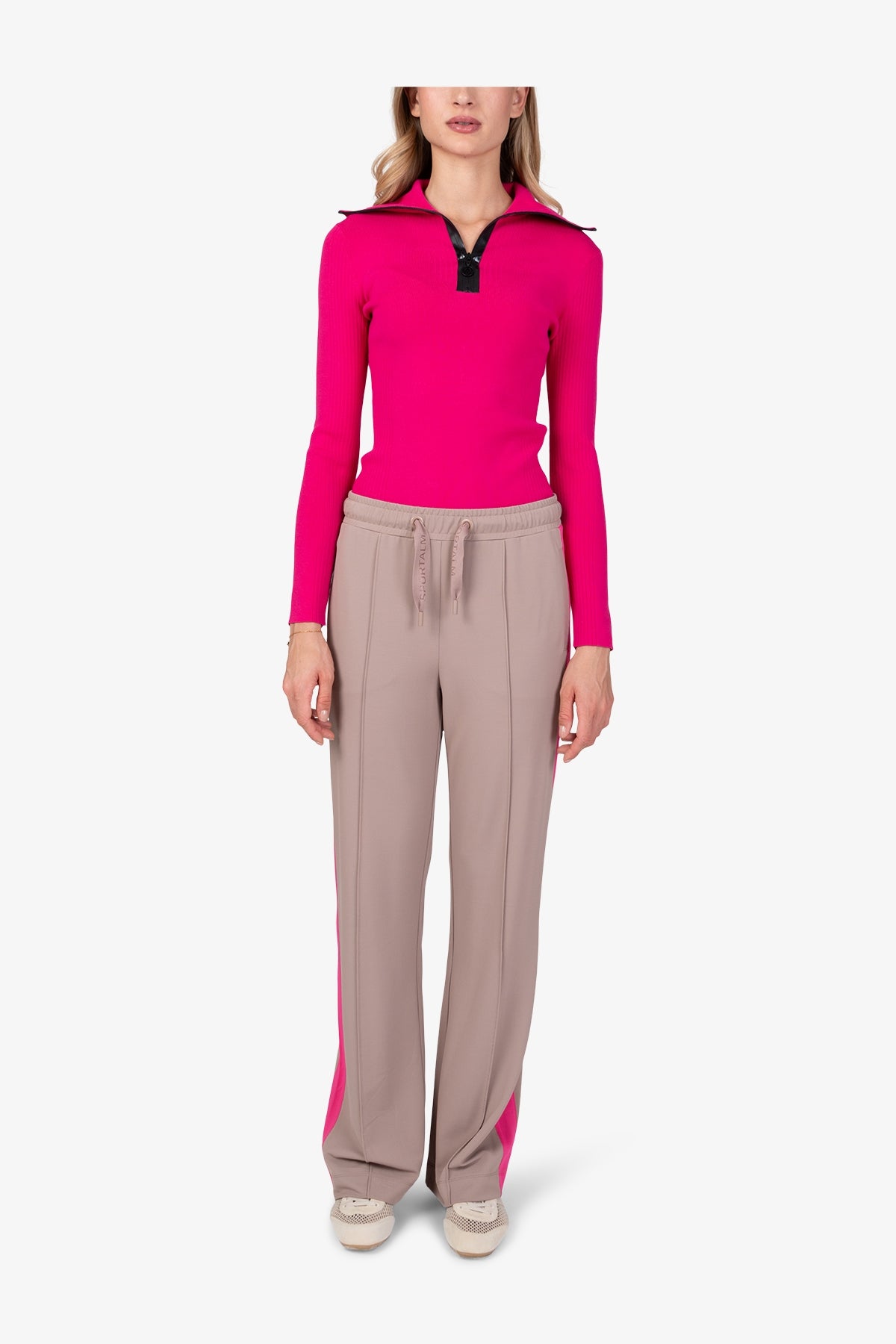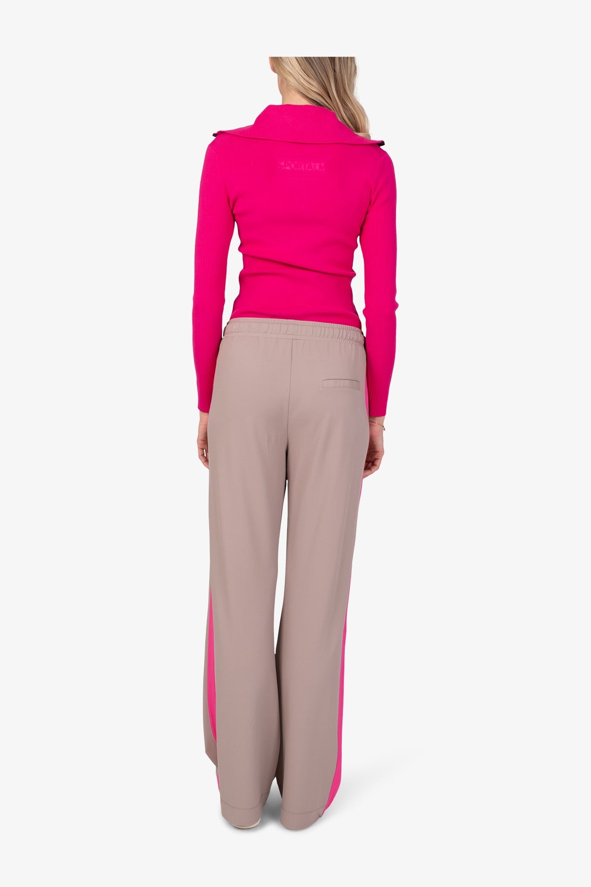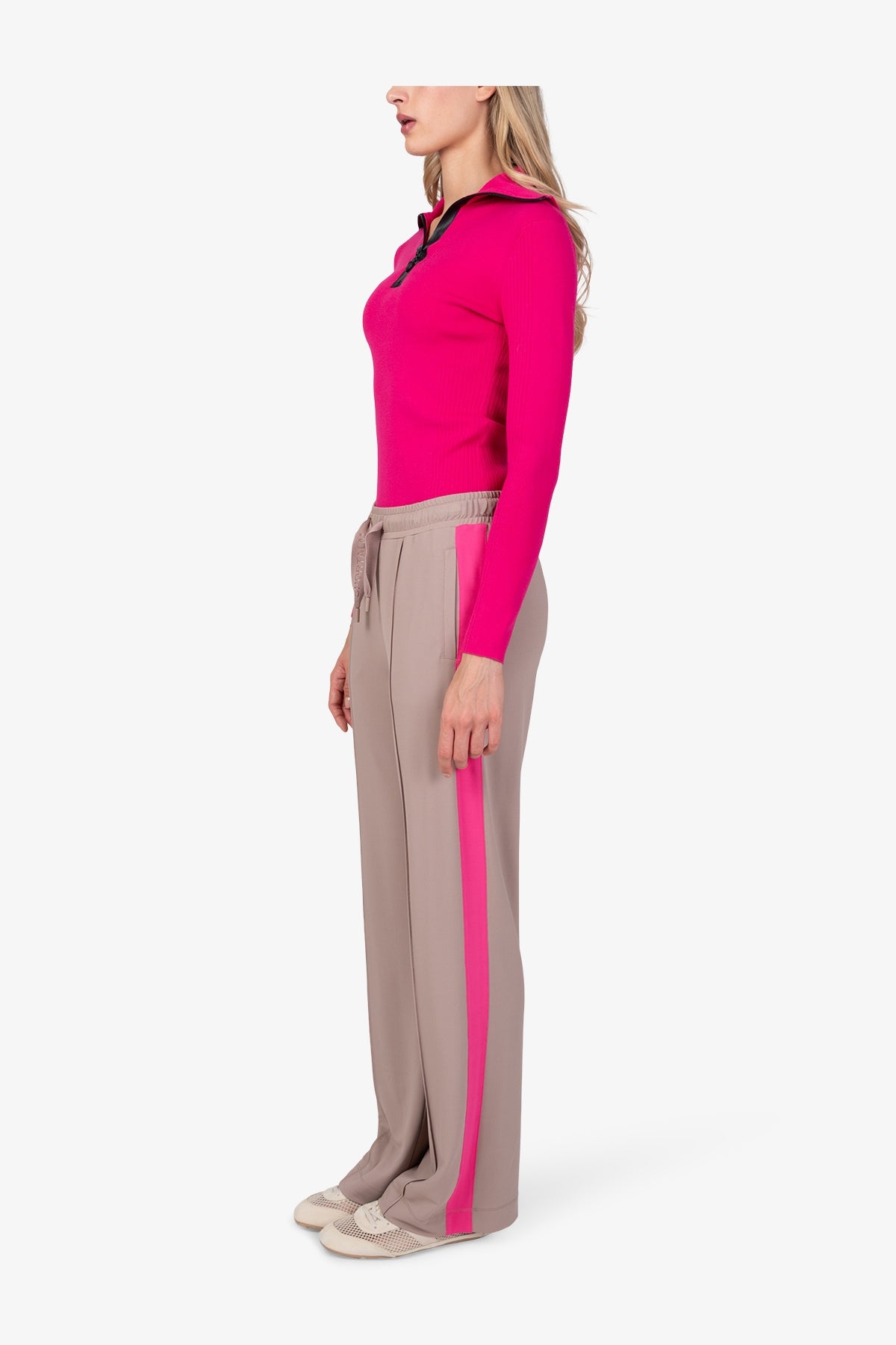 抽繩鬆緊腰撞色側飾邊闊腿褲