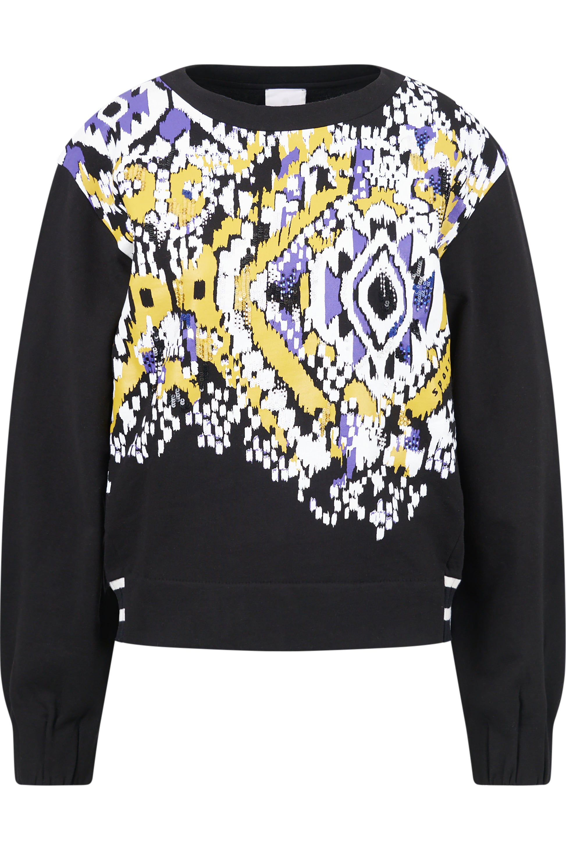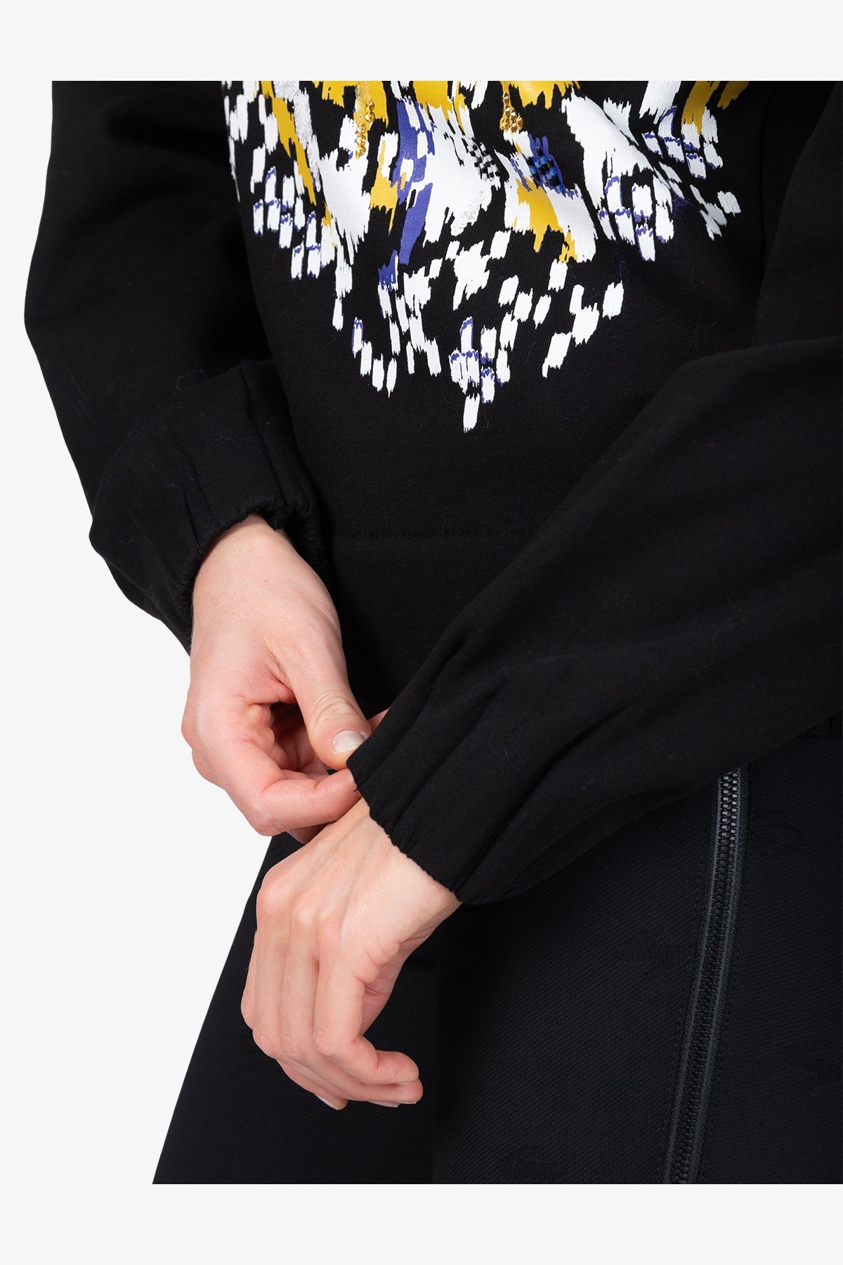 這款休閒運動衫採用大號印花,並巧妙地綴以高品質珠子和亮片,兼具時尚優雅與休閒休閒的風格。
