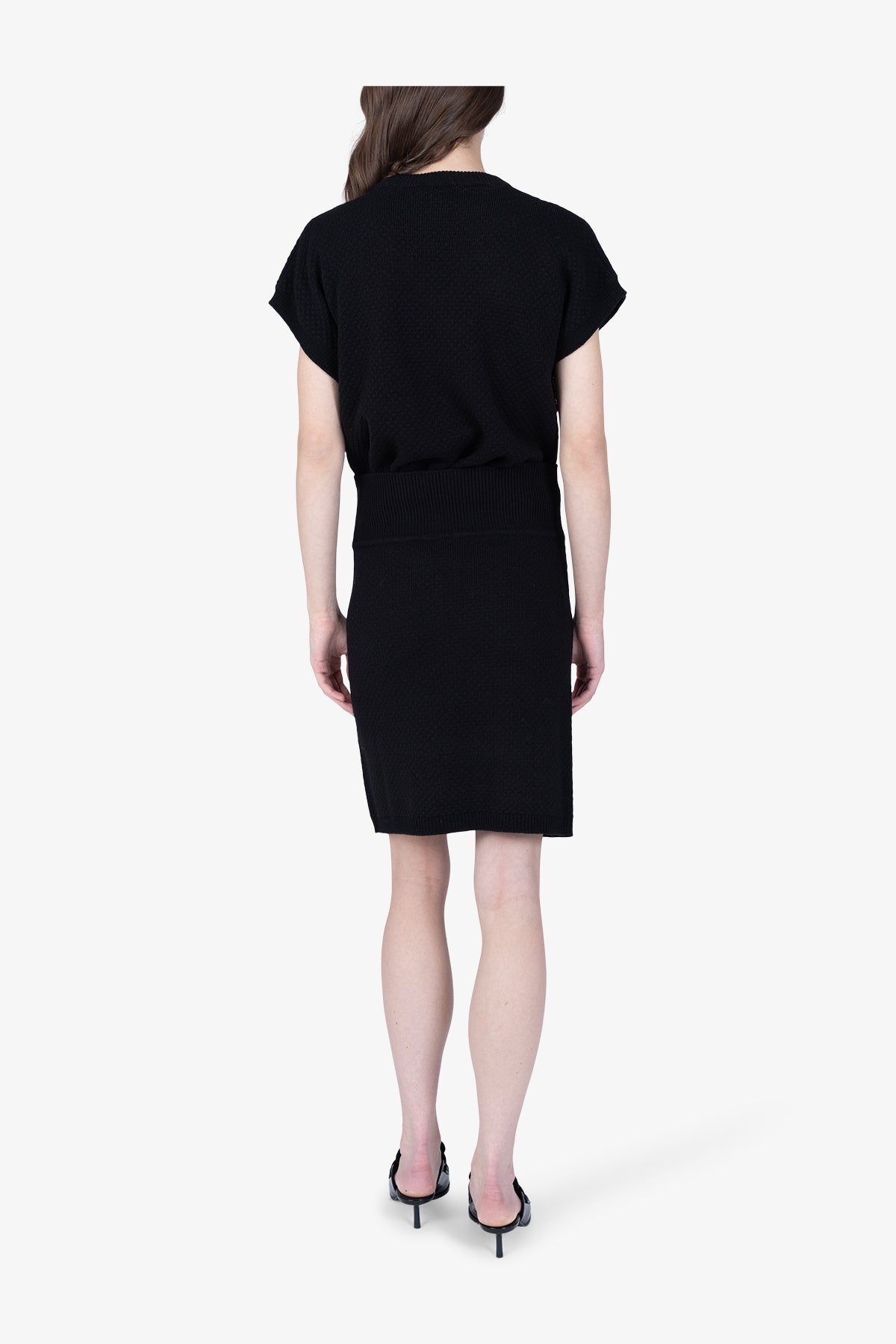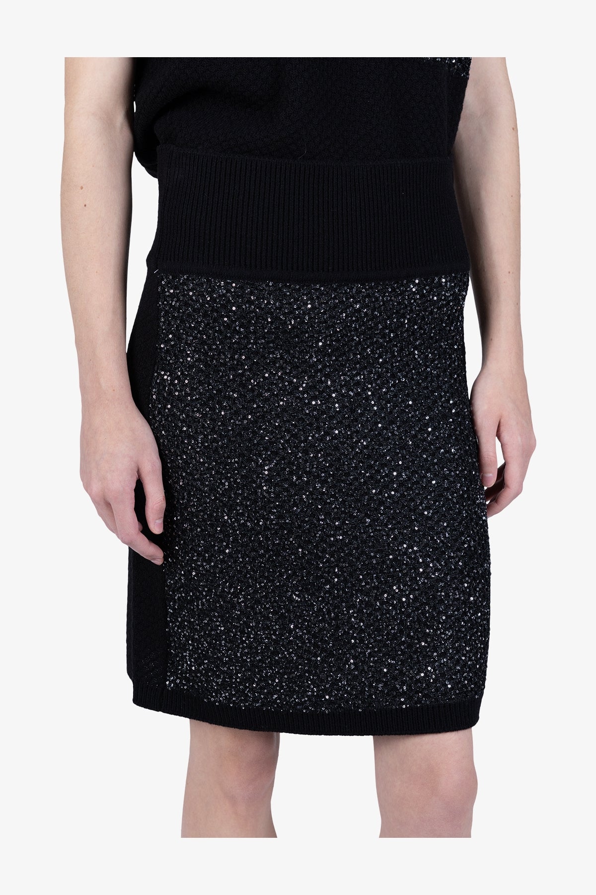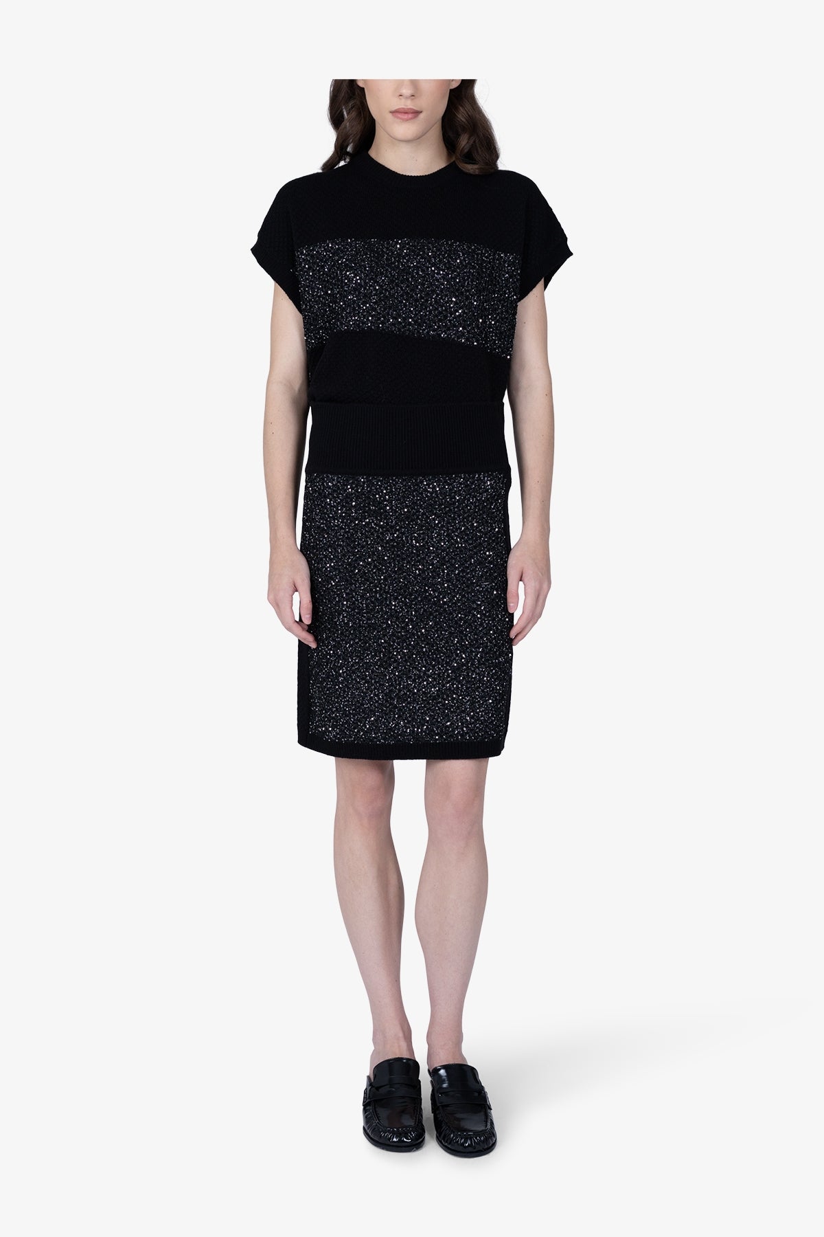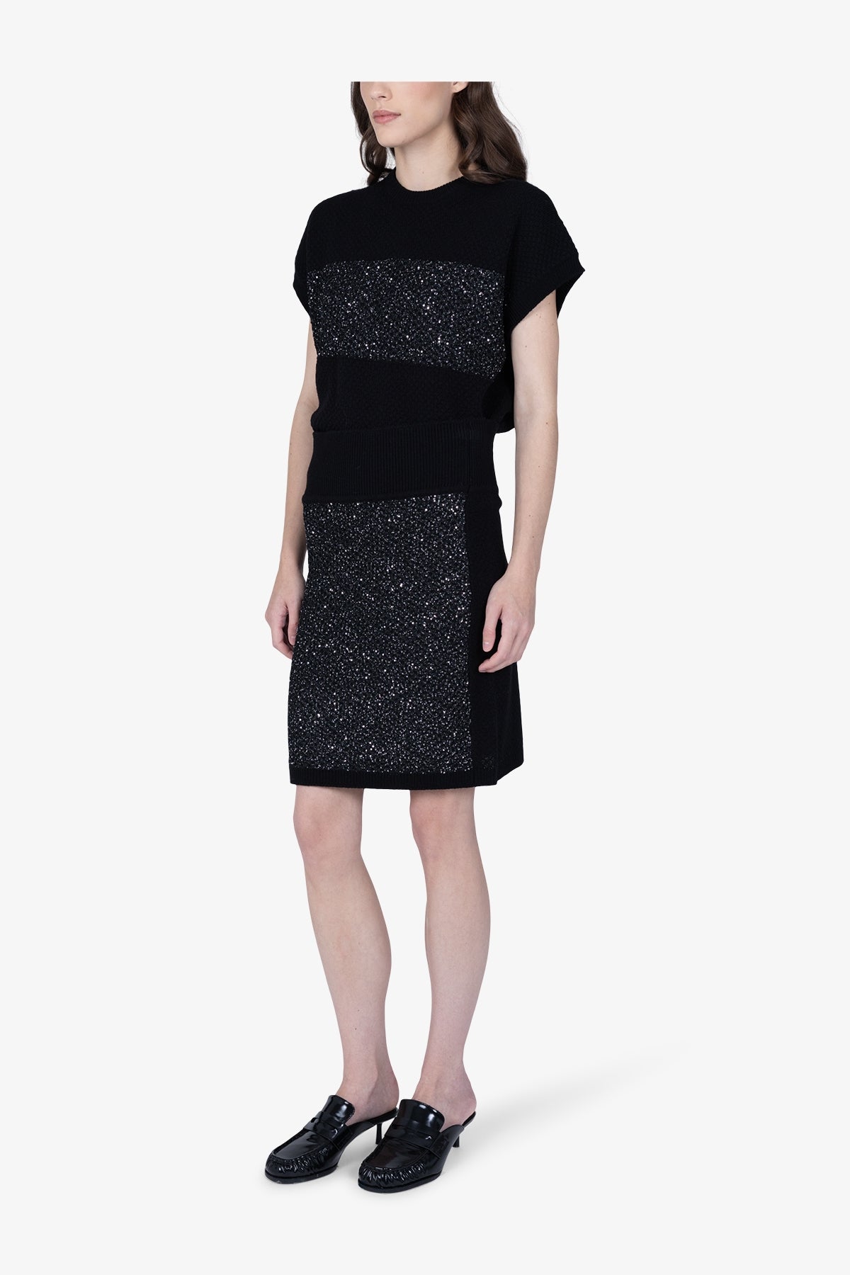 這款優雅的針織裙正面飾有閃亮的亮片刺繡,並配有寬大的針織腰帶。隱藏式柔軟鬆緊帶確保完美貼合身形,穿著舒適。