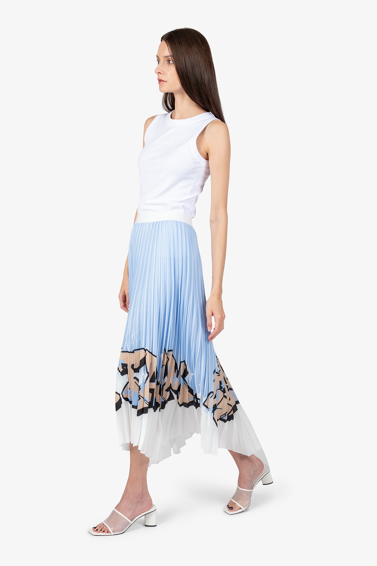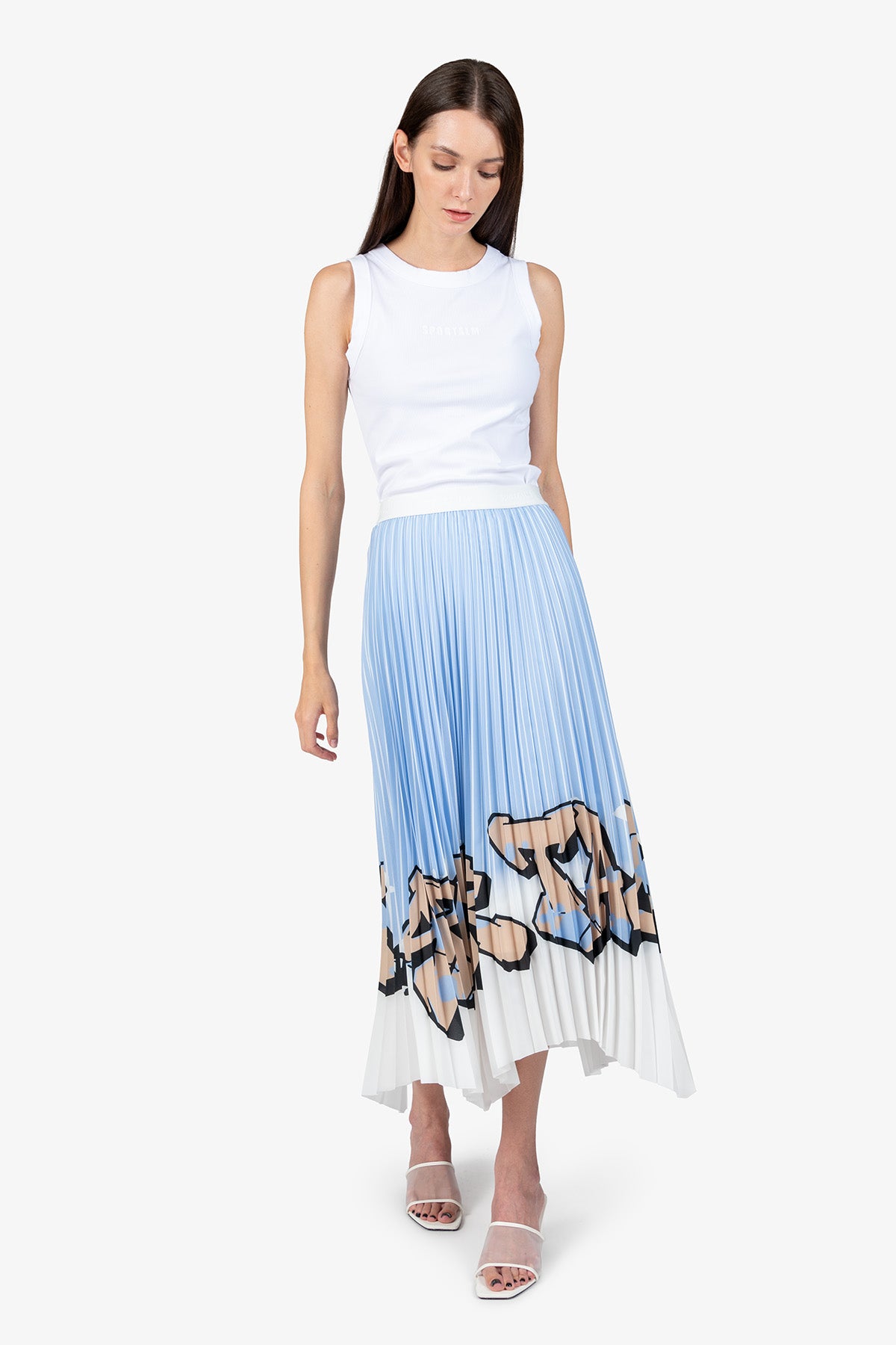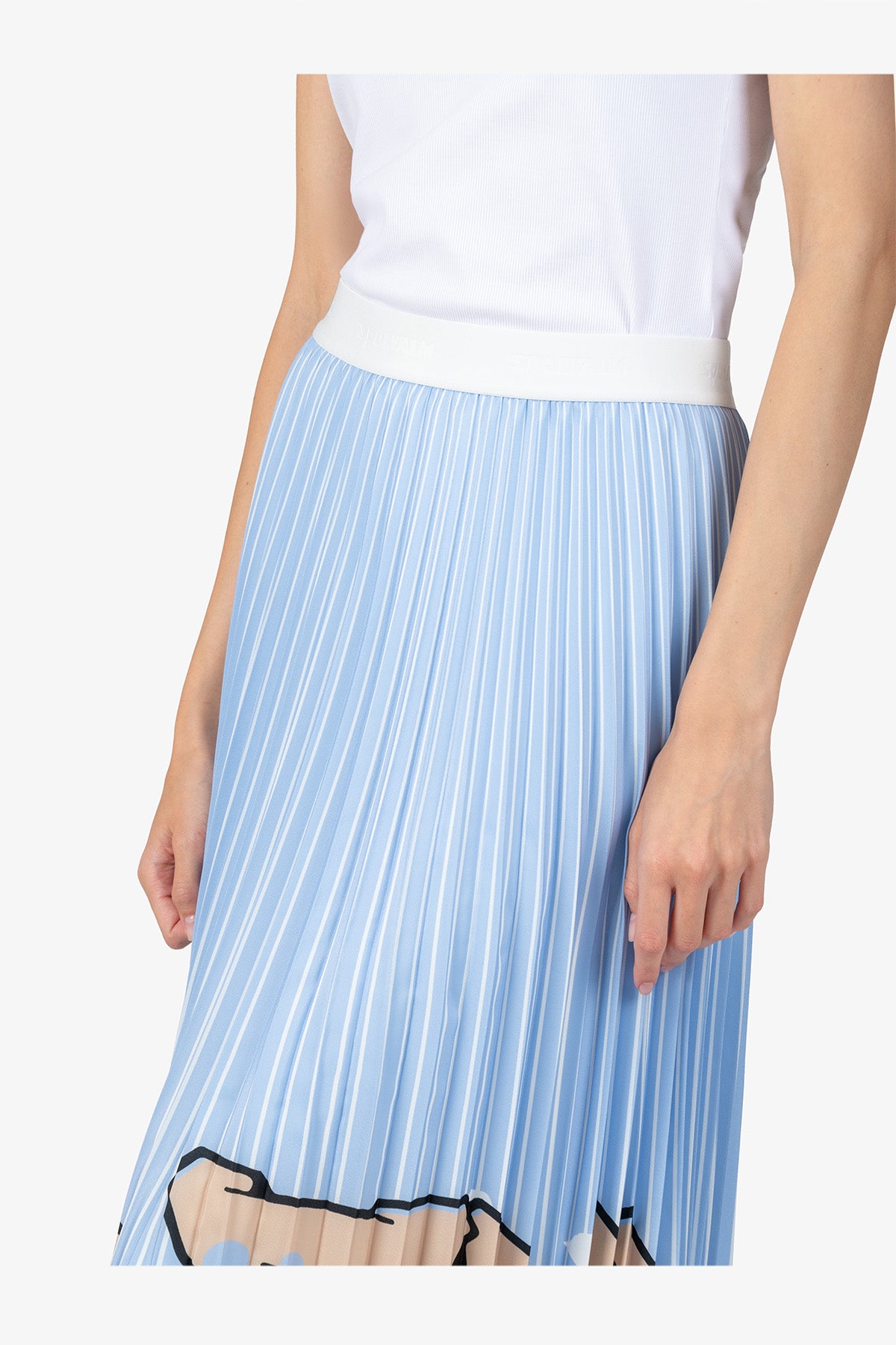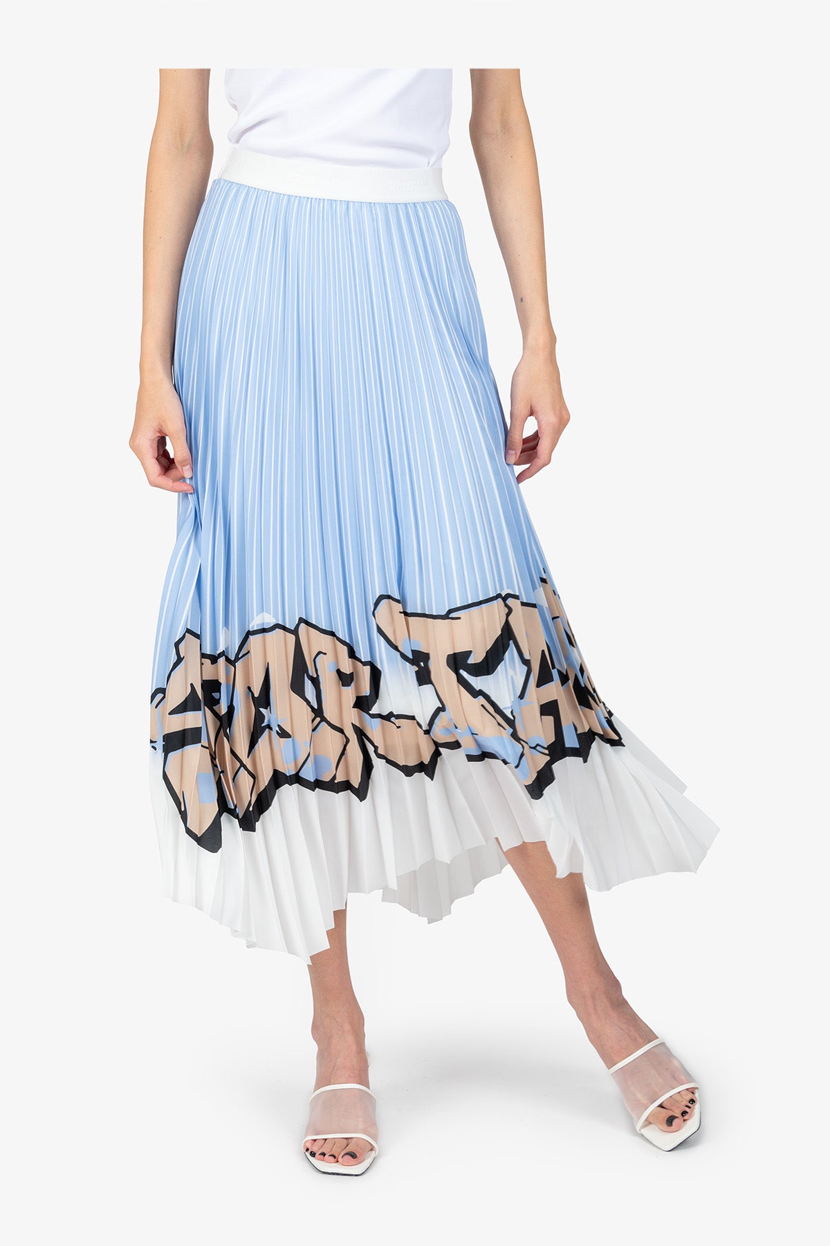 這條漂亮的百褶裙帶有俏皮的下擺,非常引人注目。它結合了優雅的褶皺和現代的剪裁,為您的服裝增添時尚和引人注目的氣息。