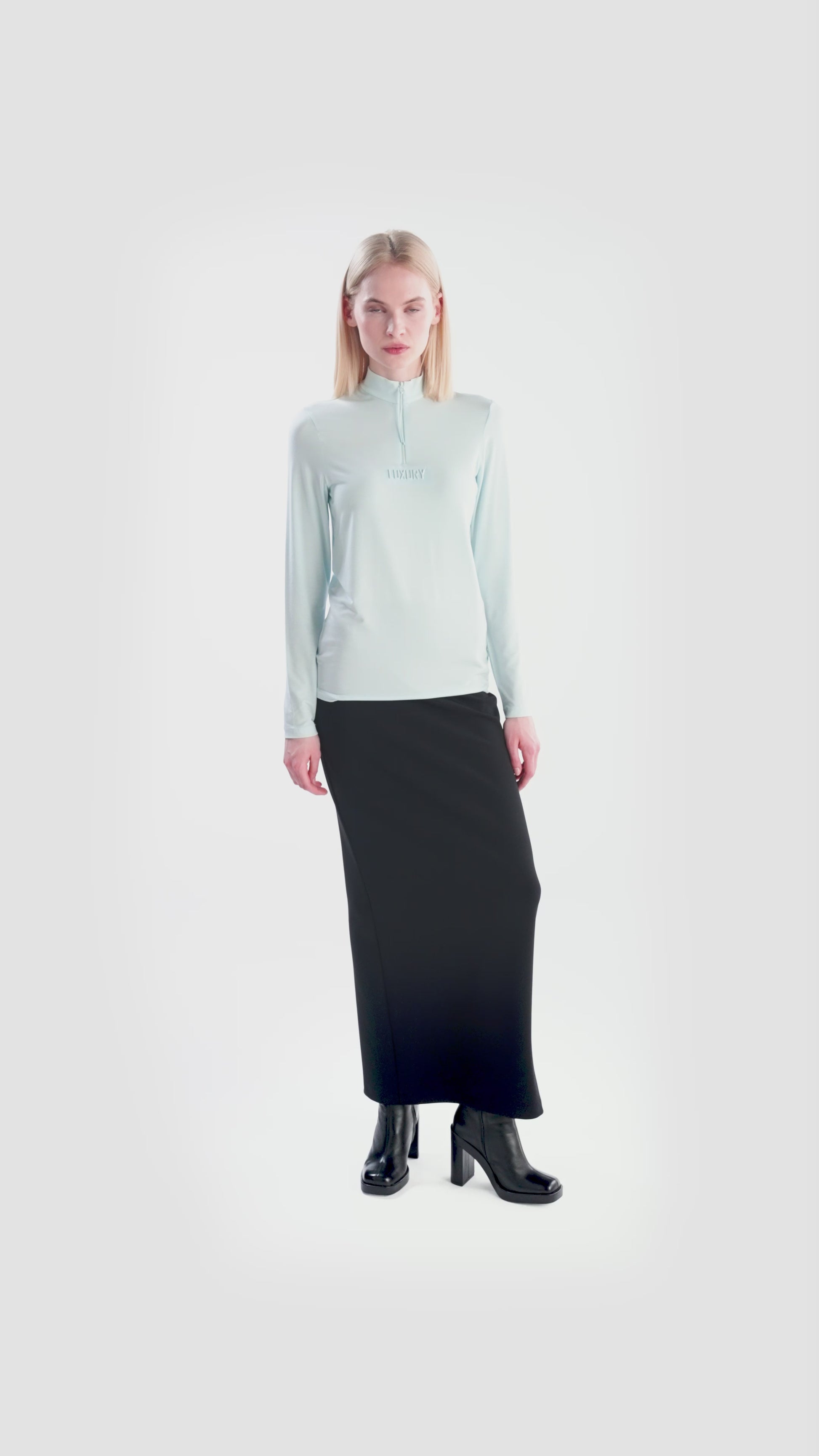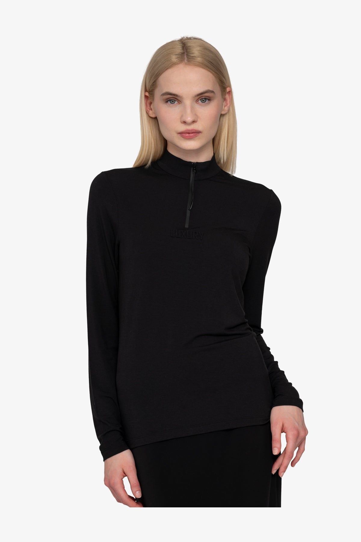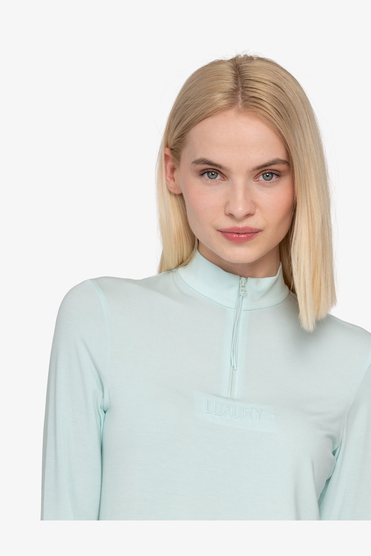 我們的襯衫採用柔軟的莫代爾品質製成,具有優雅的立領,正面中央有短防水拉鍊。拉鍊下方的小壓花圖案為襯衫帶來微妙、時尚的感覺。