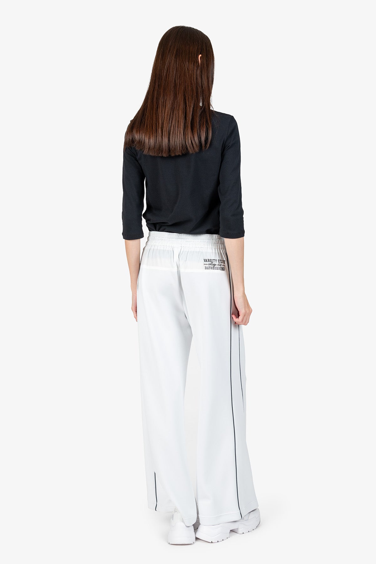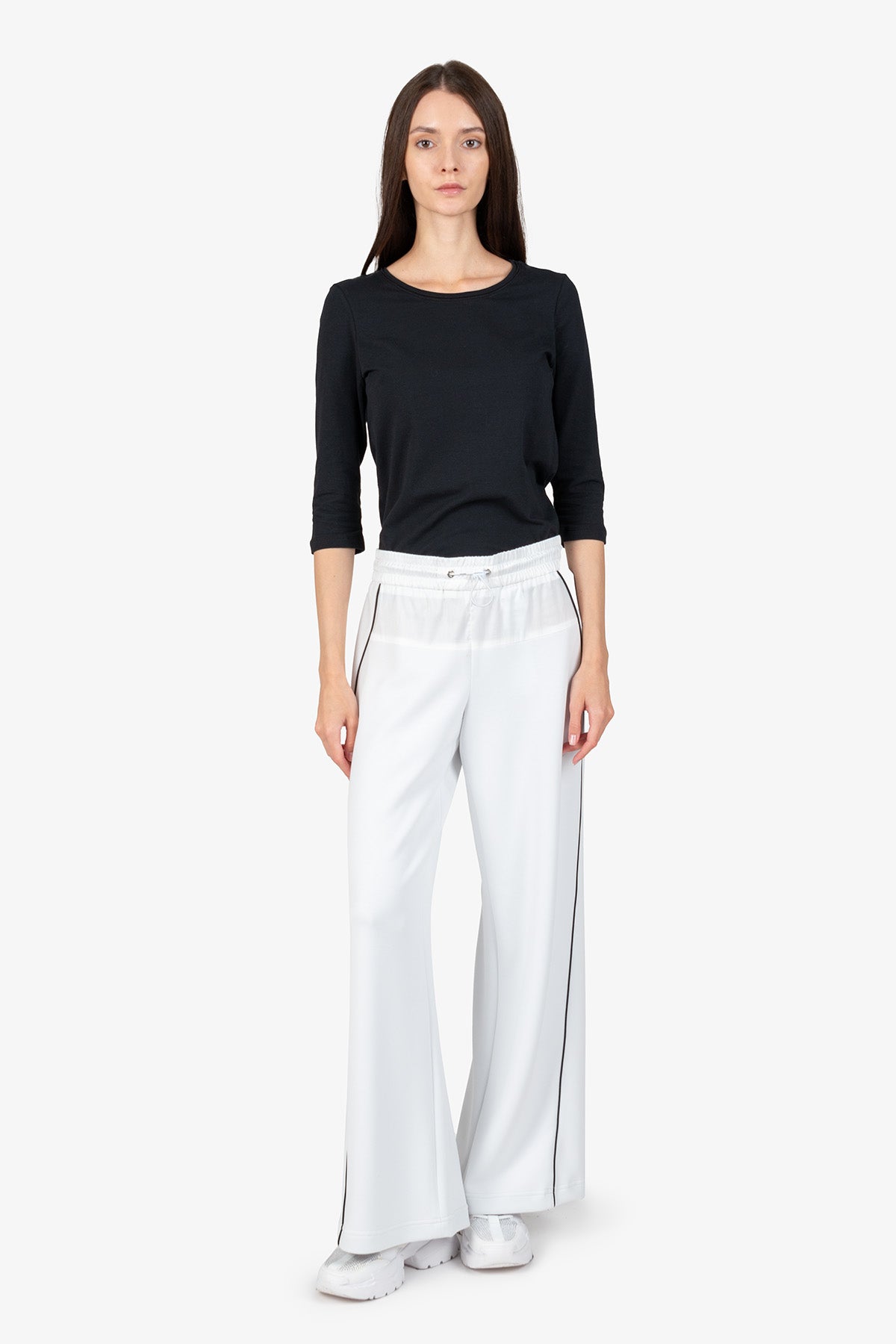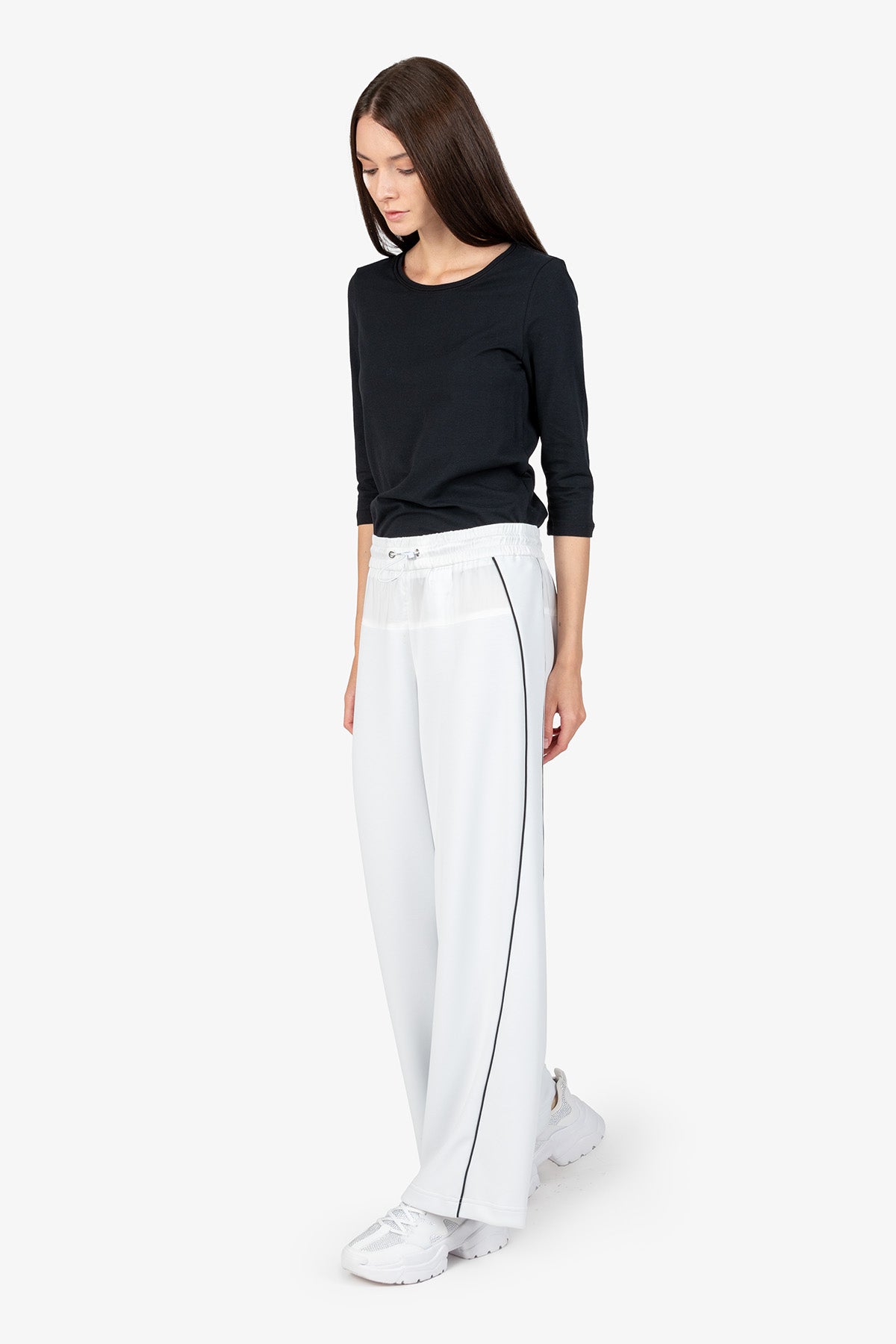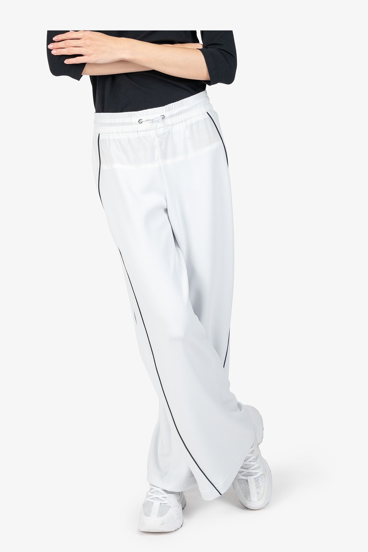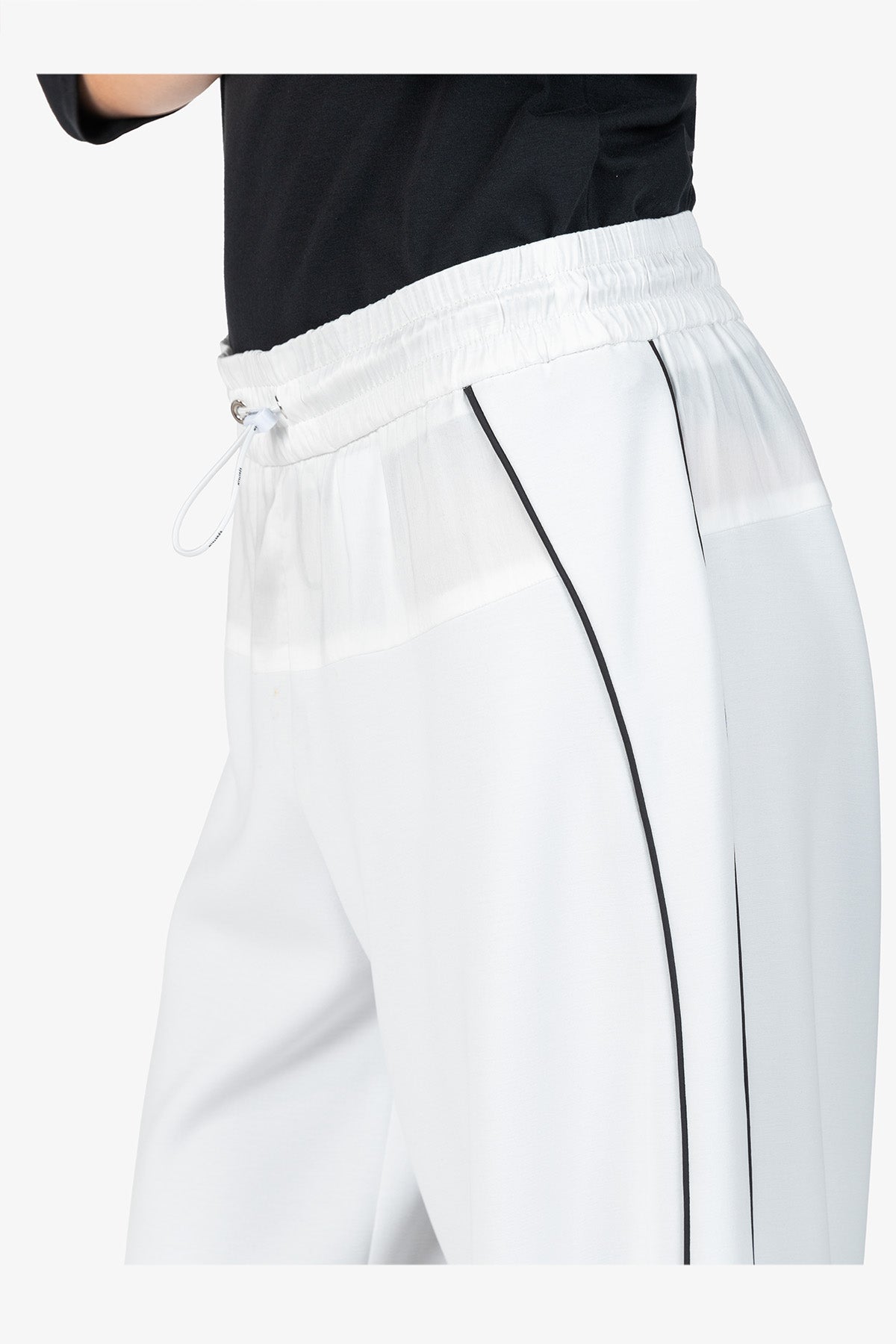 抽繩腰撞色鑲邊闊腿褲