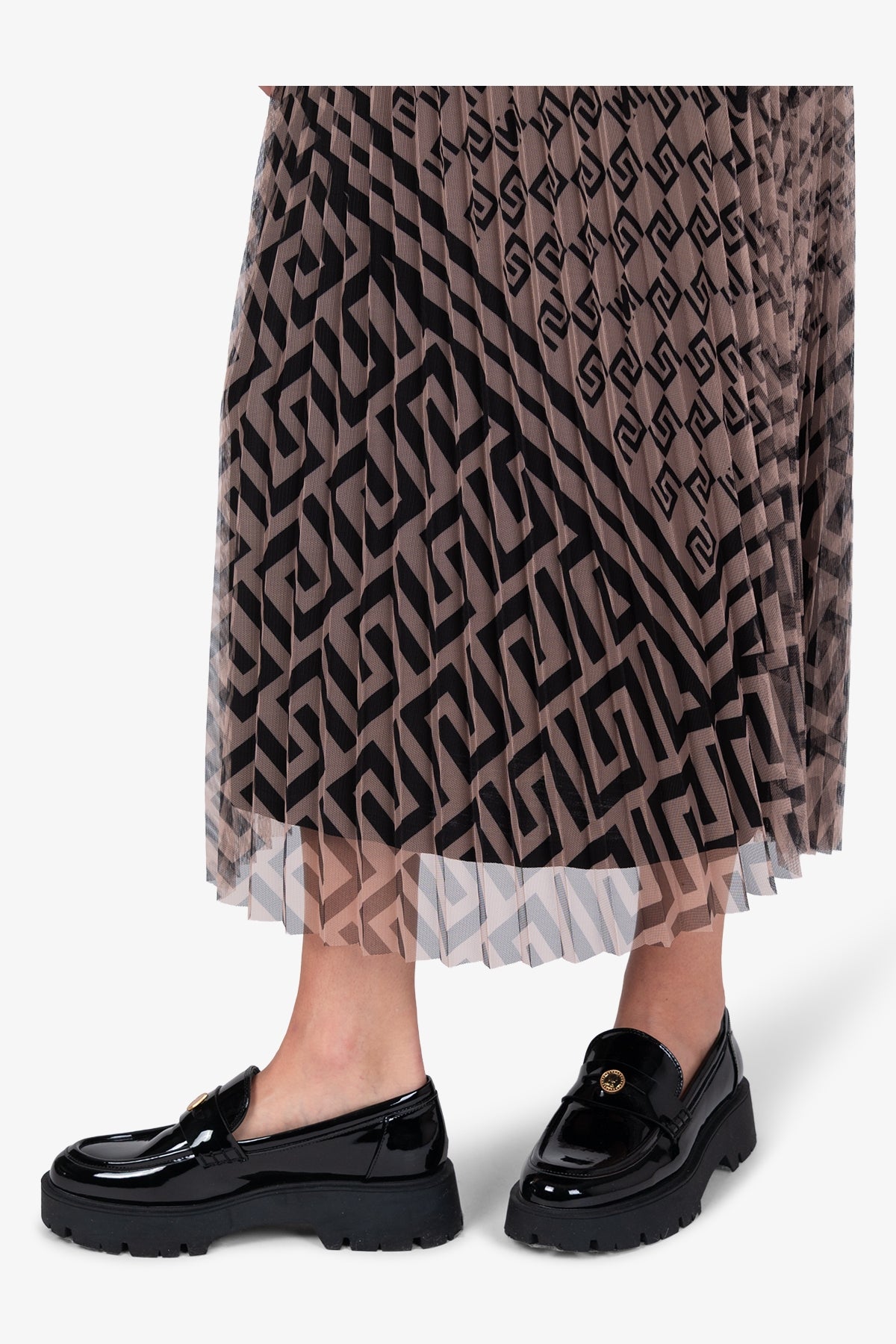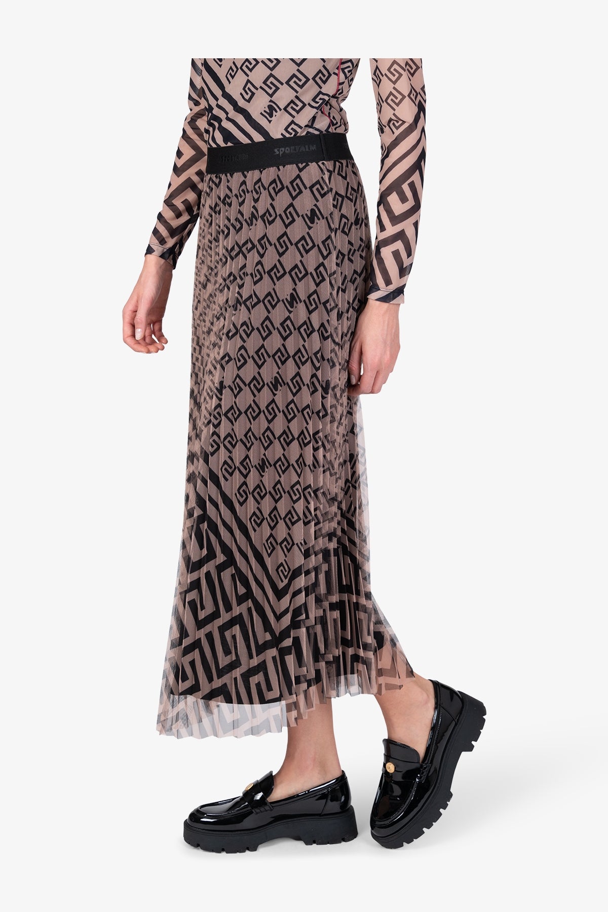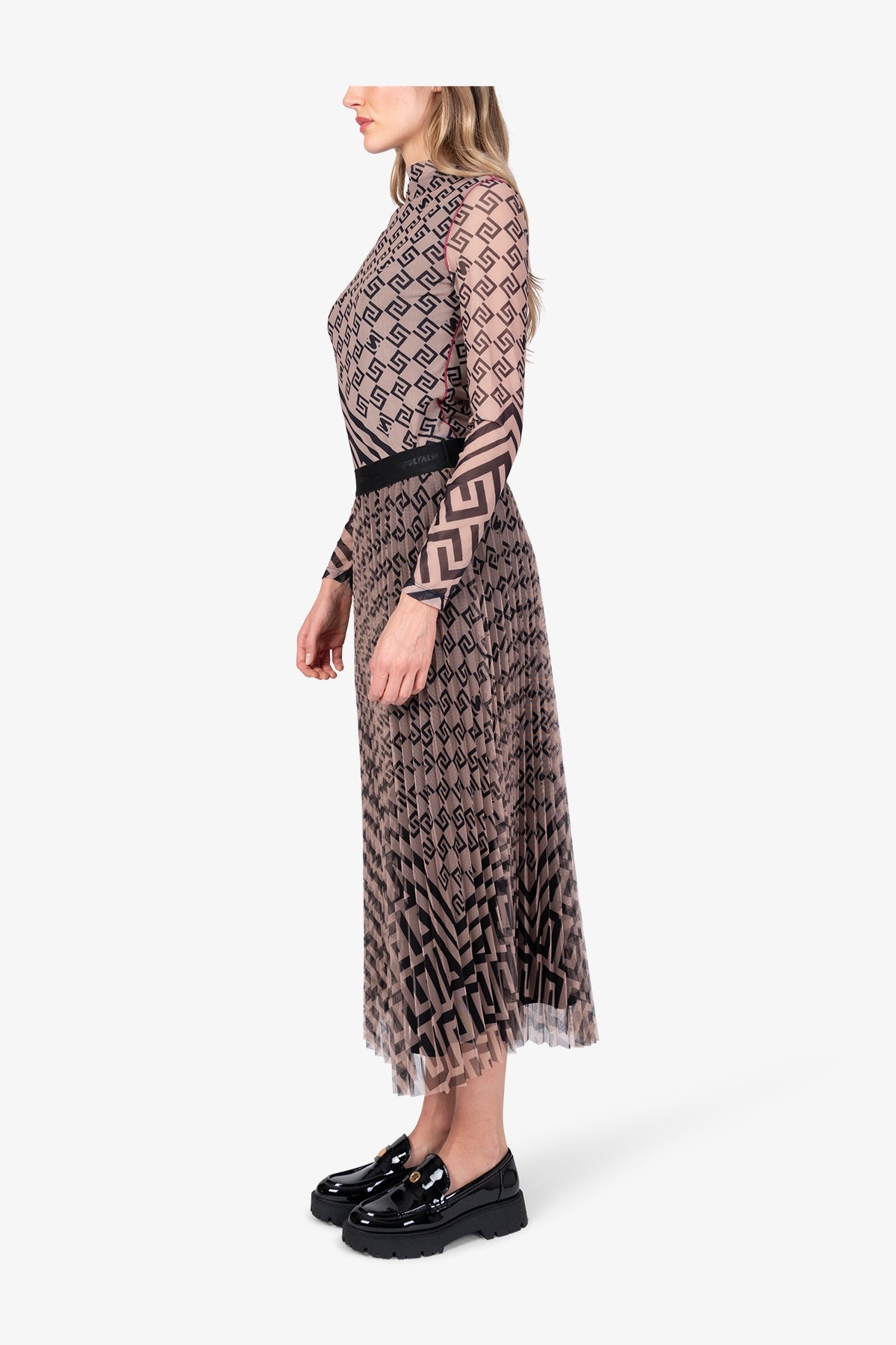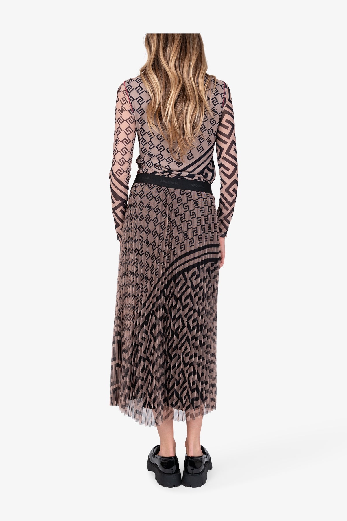 優雅的網眼裙擺飾有不對稱圖案印花,更添現代感。柔軟的腰帶確保穿著舒適,完美貼合。