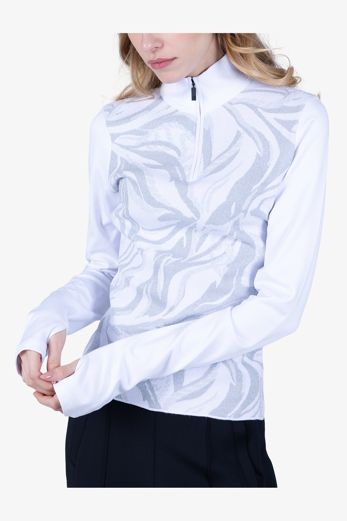 這款引人注目的針織打底衫,正面採用奢華提花針織,賦予其獨特時尚的質感。完美打造現代個性造型。